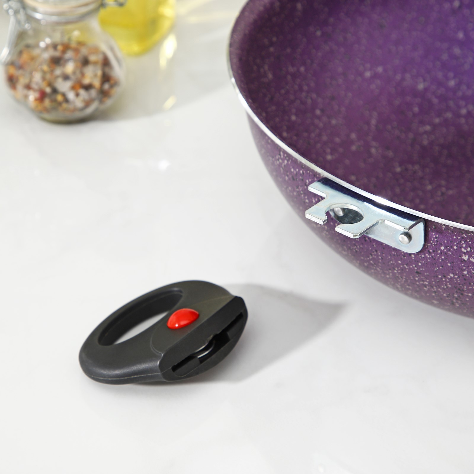 Казан, 4 л, D=28 см, стеклянная крышка, две съёмные ручки, цвет фиолетовый