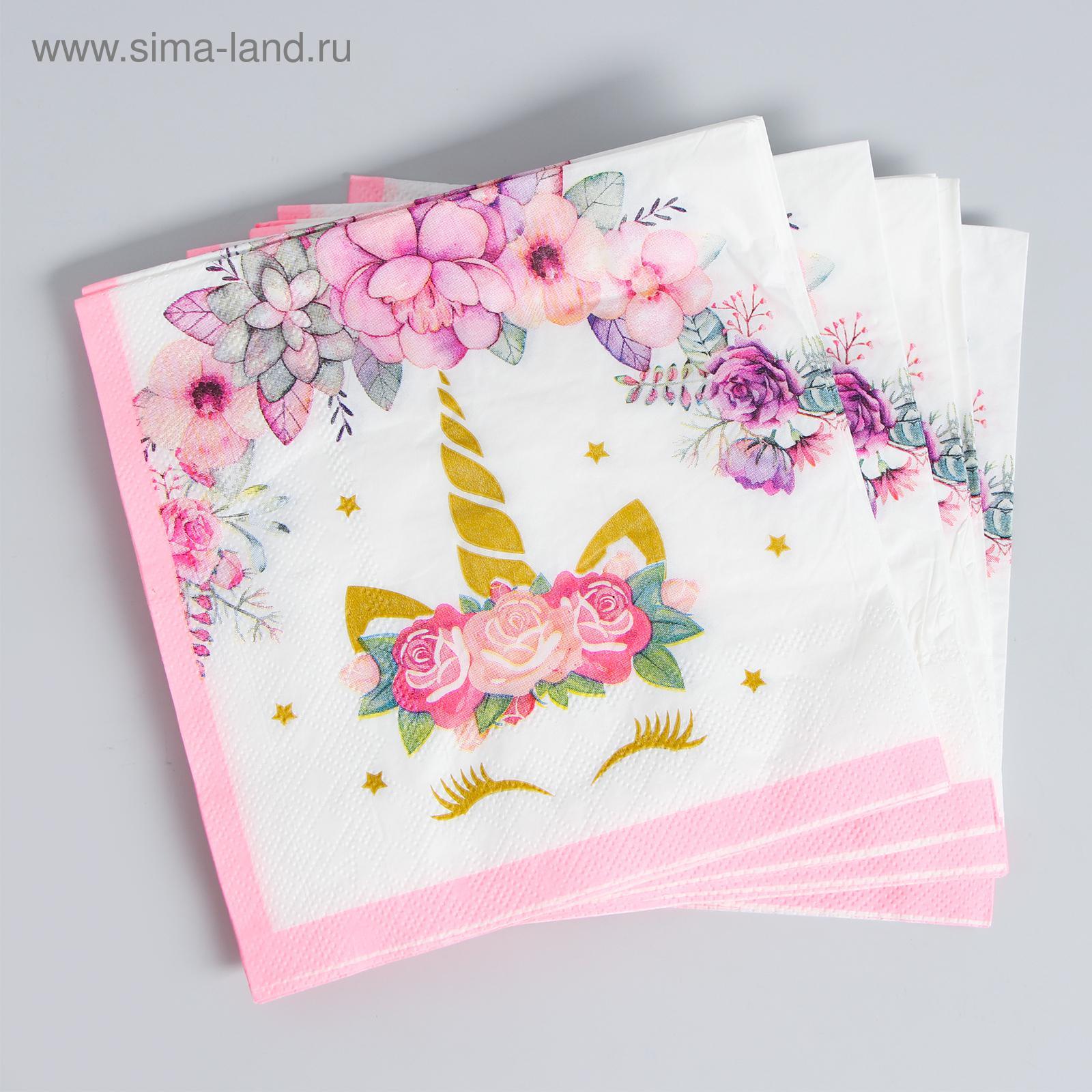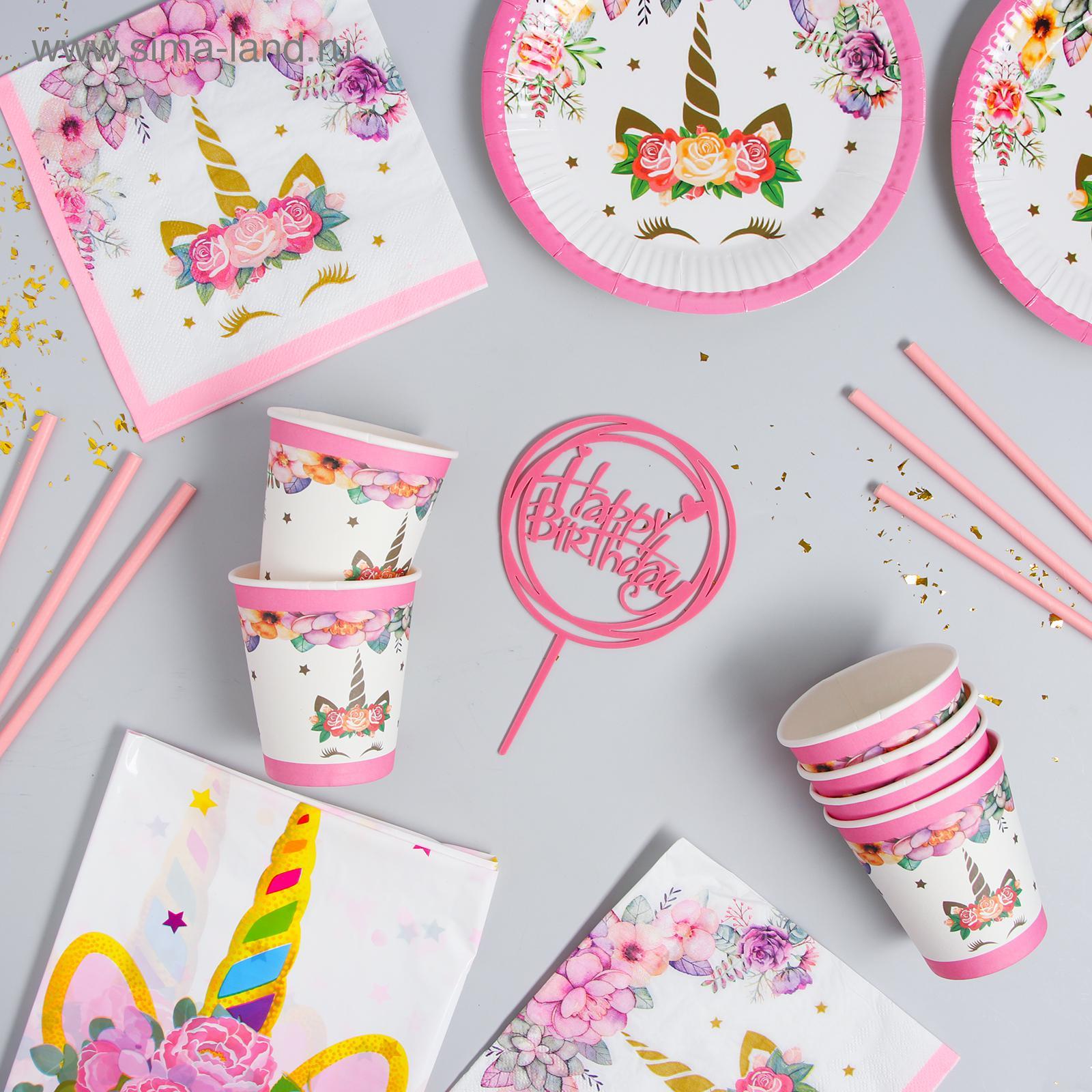 Набор посуды «с днём рождения», единорожка, цвет розовый