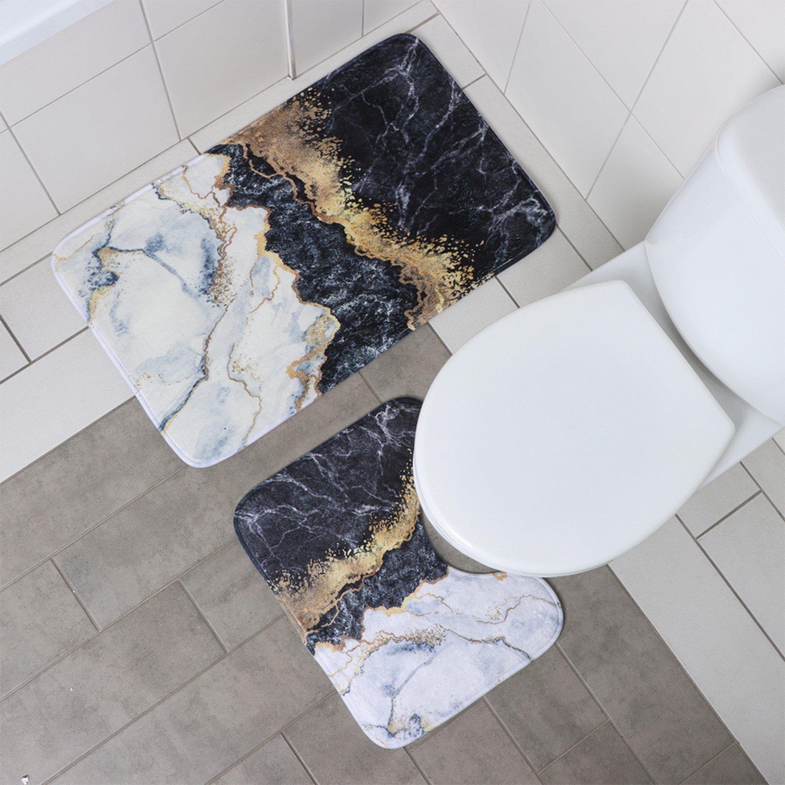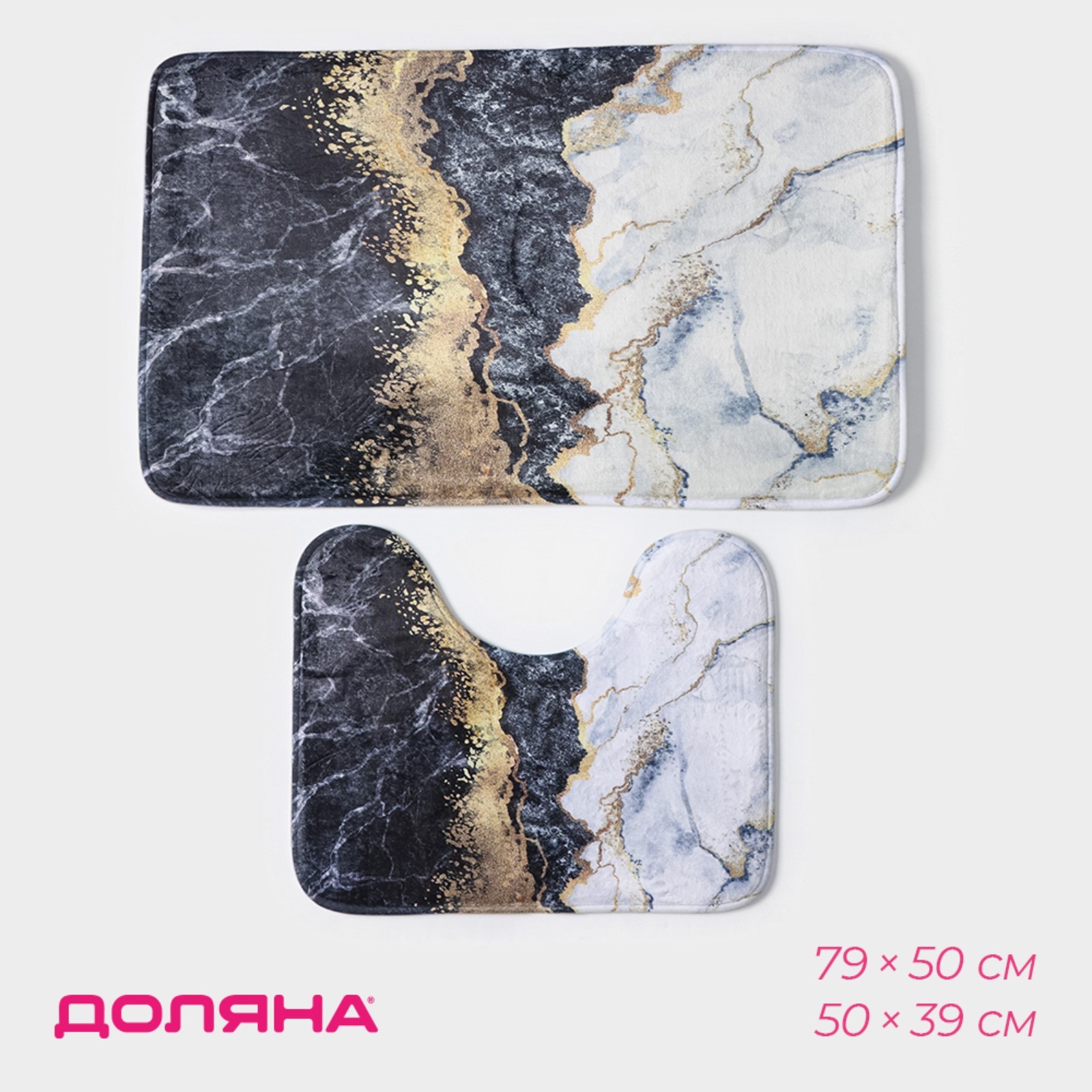 Набор ковриков для ванной и туалета доляна «мрамор», 2 шт, 79x50, 50x39 см, цвет микс