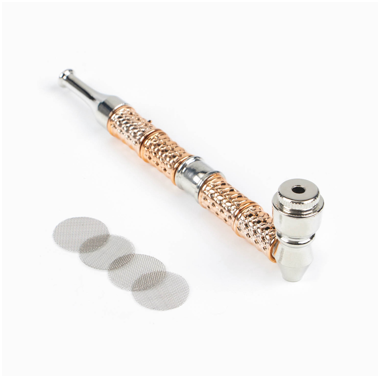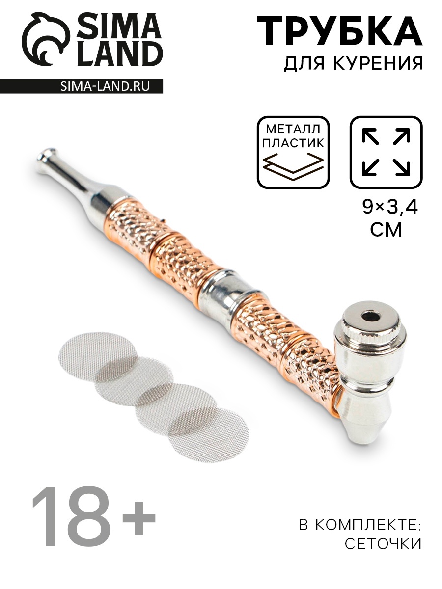 Трубка курительная «лорут», 5 сеточек, 14 3.2 2 см. Трубка для курения Лорут – стильное и функциональное решение для ценителей качественного курения. Отличается высокой износостойкостью благодаря использованию металла, что делает трубку надежным спутником на долгие годы. В комплект входят 5 сменных сеточек, обеспечивающих равномерное распределение дыма и защиту от попадания мелких частиц табака. Компактные размеры (14 х 3.2 х 2 см) делают трубку удобной для хранения и переноски. Особенностью трубки является закручивающийся наконечник, который предотвращает выпадение табака и защищает от случайного попадания его в горло. Это повышает комфорт и безопасность процесса курения. Насадка трубки легко разбирается для чистки и обслуживания – это упрощает процесс ухода за аксессуаром и продлевает его срок службы. Цвет:Золотистый|Длина, см:14|Материал:Металл|Страна:Китай  развернуть описание ▼