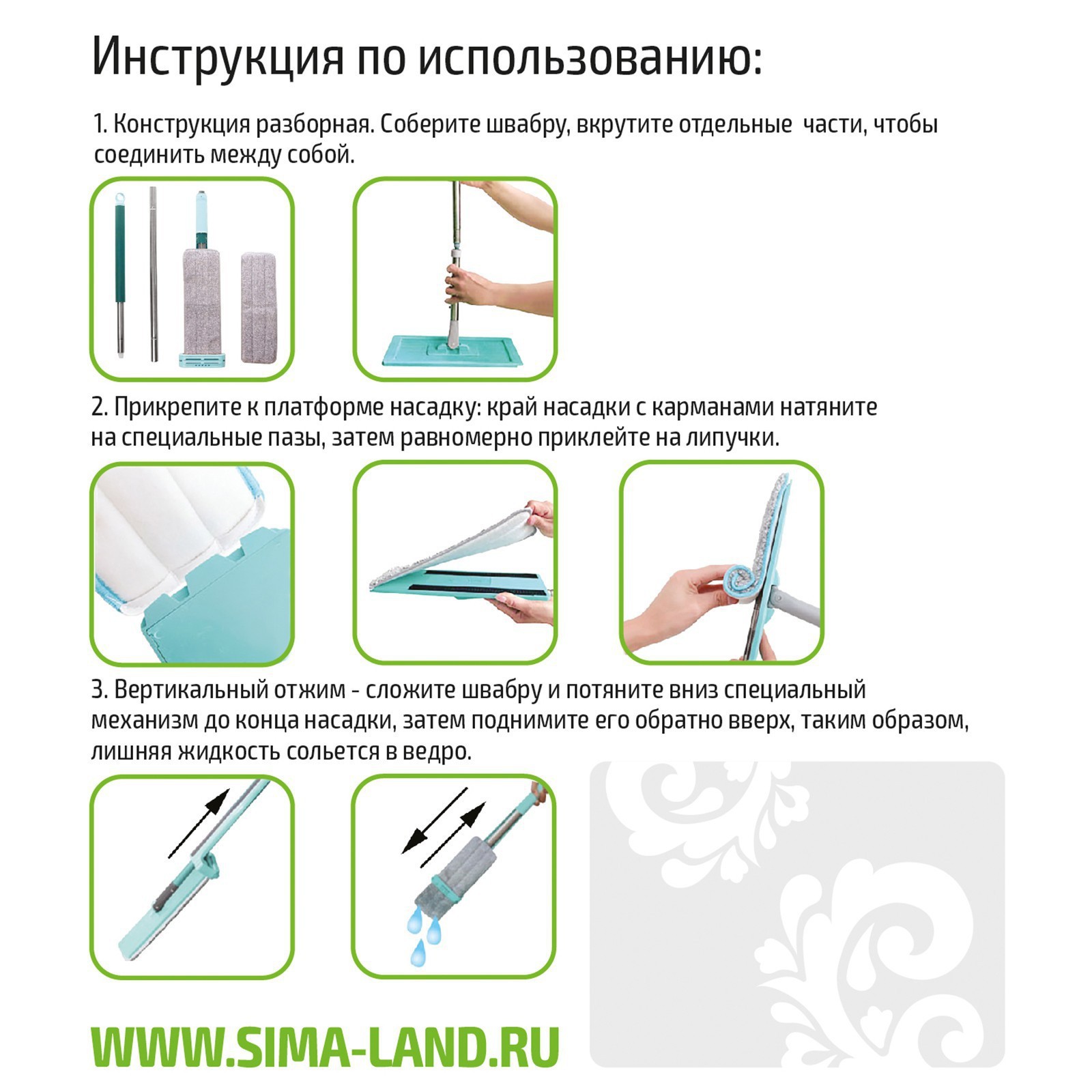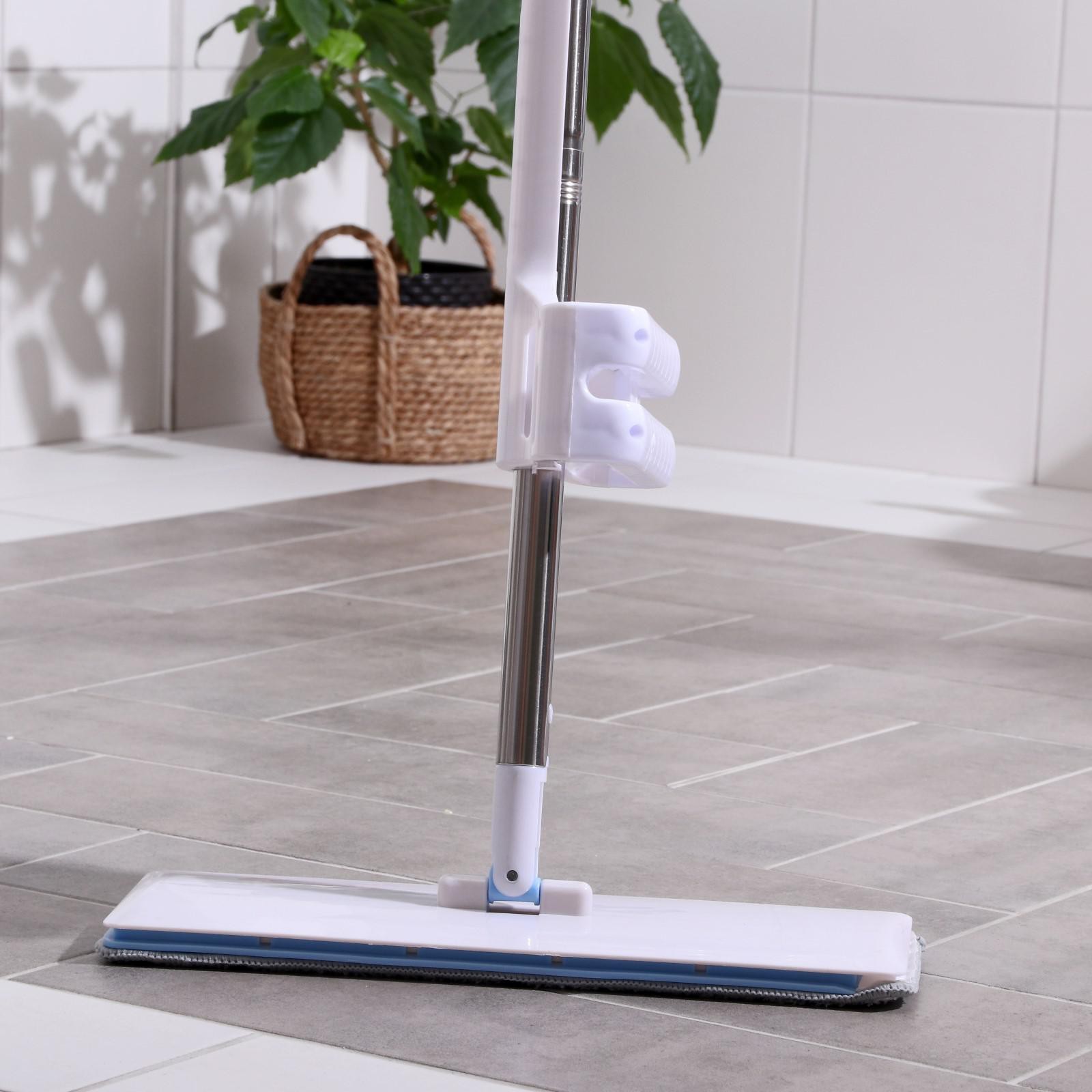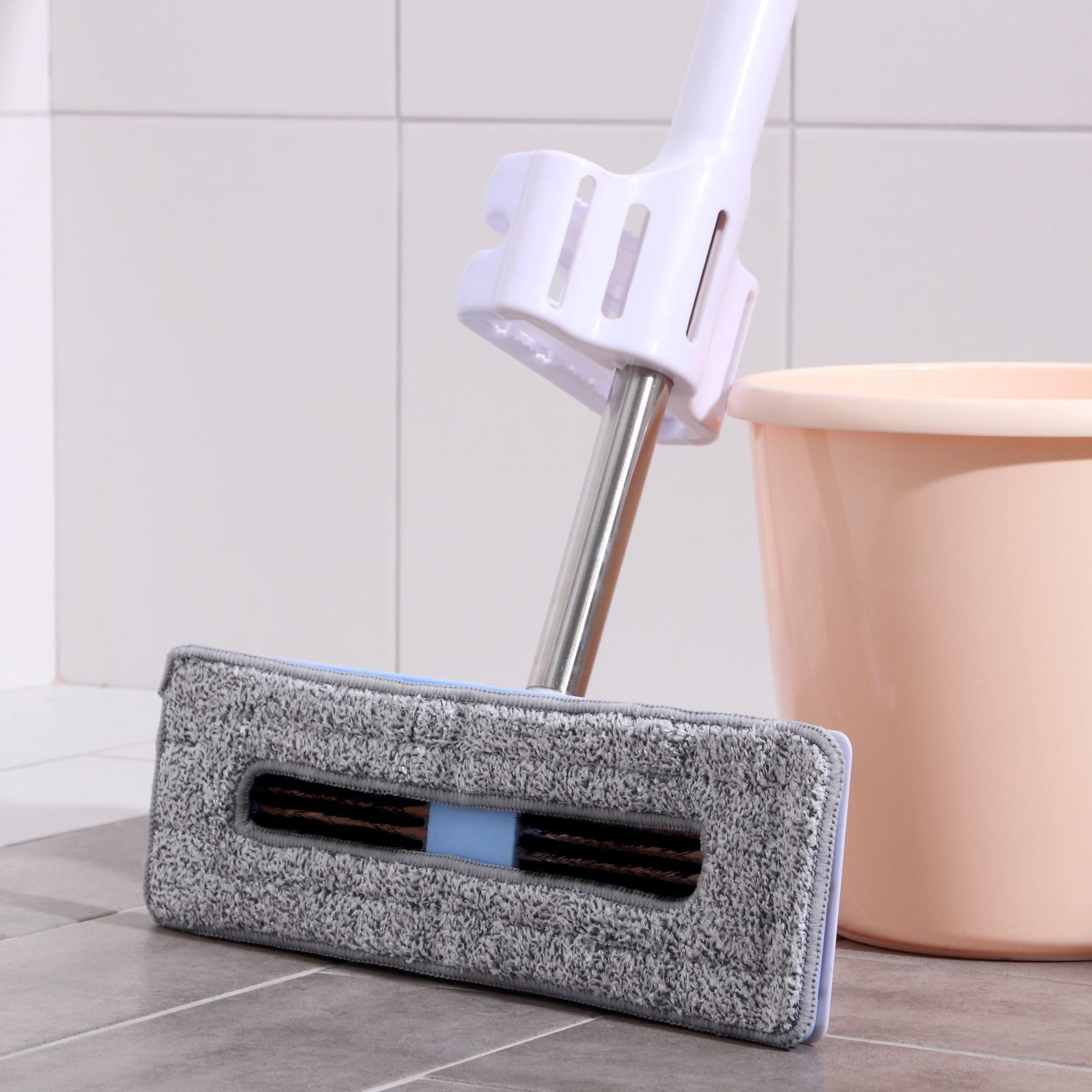 Швабра с отжимом и щёткой, 2 насадки из микрофибры 38x12 см, стальная ручка 136 см