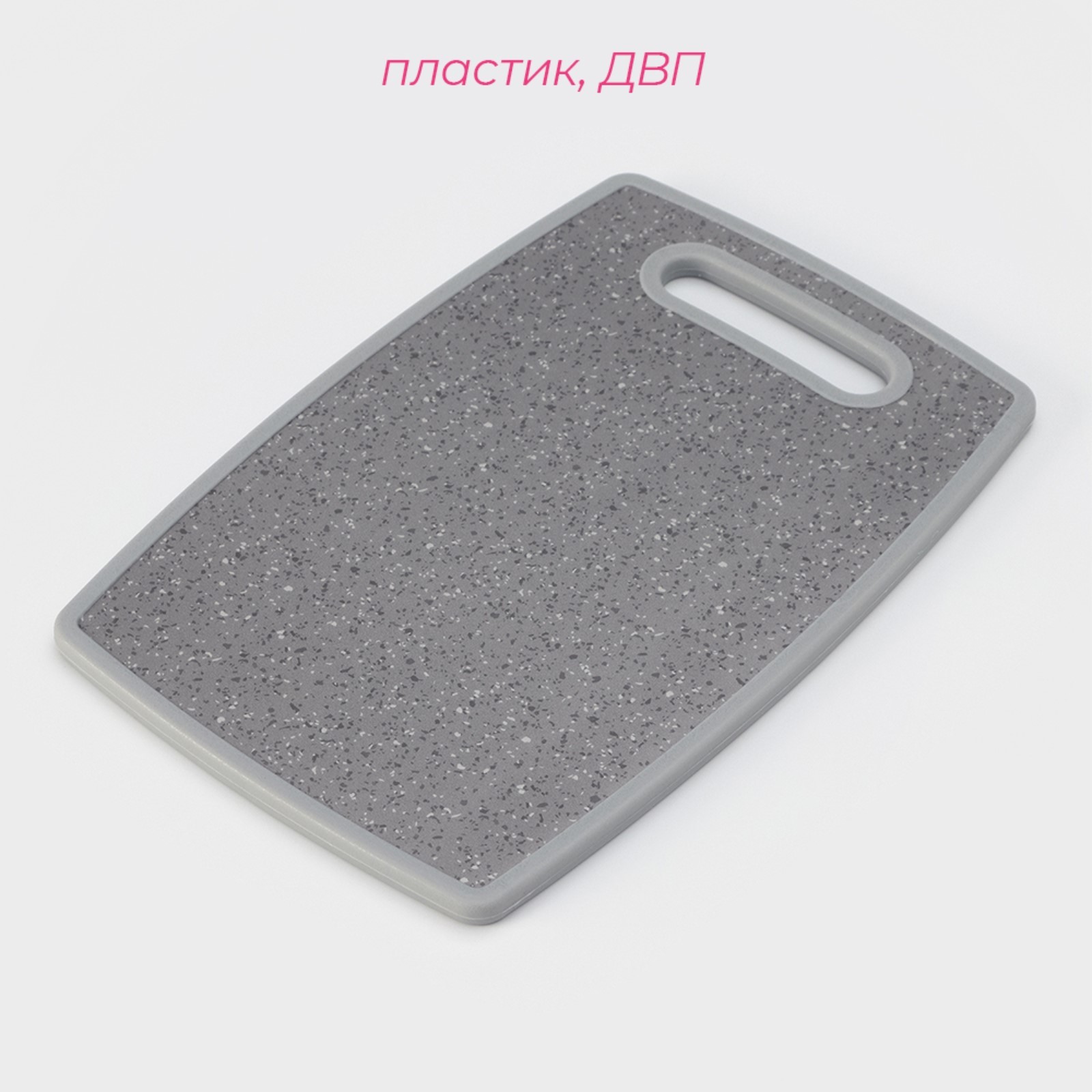 Доска разделочная пластиковая прямоугольная доляна «гранит», 30x20 см. В приготовлении блюд разделочная доска играет не меньшую роль, чем сковорода, нож или плита. Качественная разделочная доска поможет получить от процесса приготовления пищи максимум пользы. Преимущества: Имеет оптимальный размер, многофункционально и при необходимости может заменить подставку для горячих сковород. Подойдет для разделки рыбы, мяса курицы или говядины, шашлыка, овощей, хлеба, теста, фруктов, продуктов, нарезок сыра и колбасы, картофеля, картошки. Материал легко очищается от грязи и жира, более экологичен, чем деревянное покрытие, которое впитывает запахи и влагу. Кроме того, разделочные доски можно использовать в качестве оригинального элемента сервировки стола - подать сыр к вину, фрукты, овощи, мясные закуски. Цвет: Разноцветный Форма: Прямоугольная Длина, см: 30 Ширина, см: 20 Материал: Пластик Тип доски: Стандартная Тип нанесения рисунка: Ламинация Можно мыть в посудомоечной машине: Нет Особенности: Подвесная  развернуть описание ▼