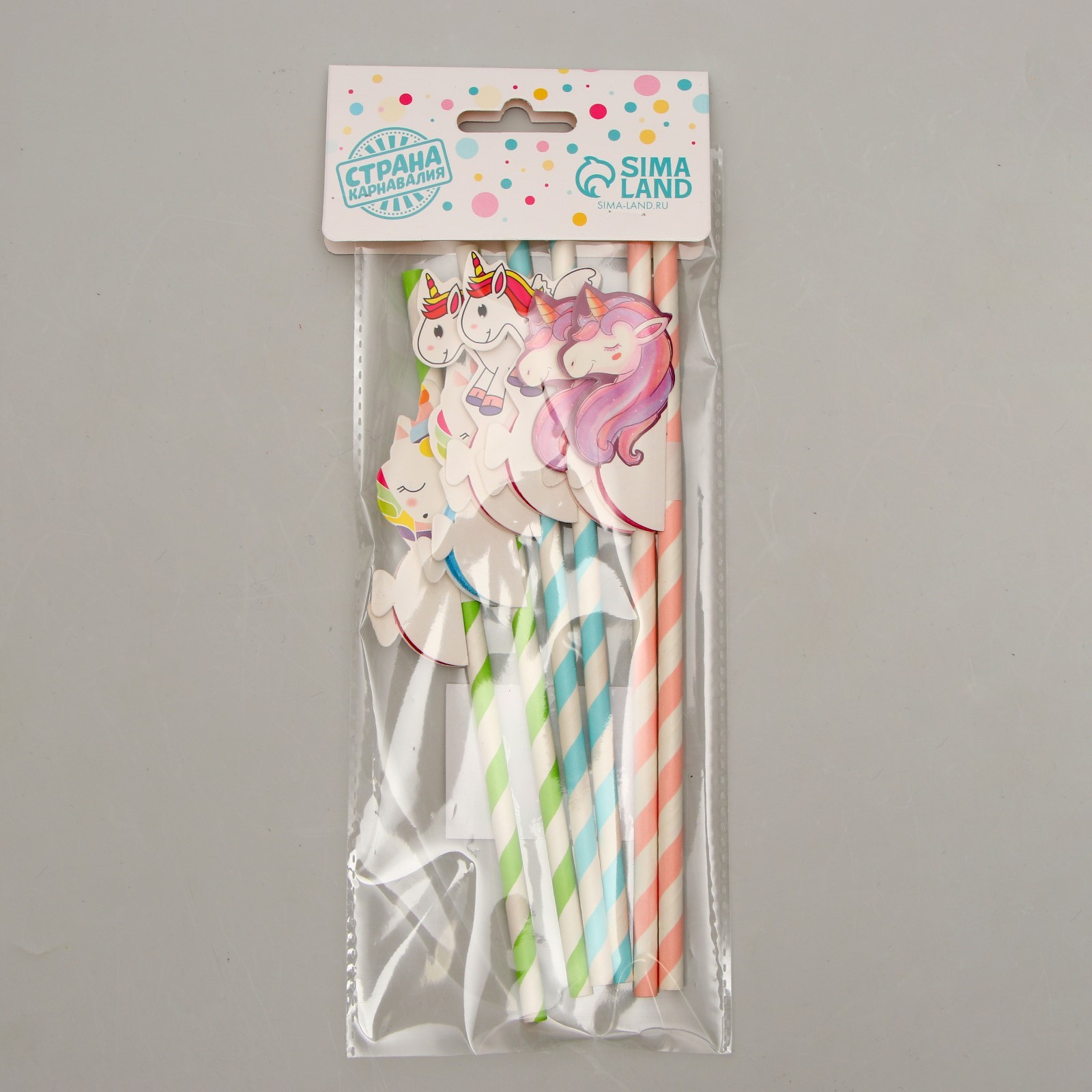 Трубочки для коктейля «единорог», набор 6 шт., микс