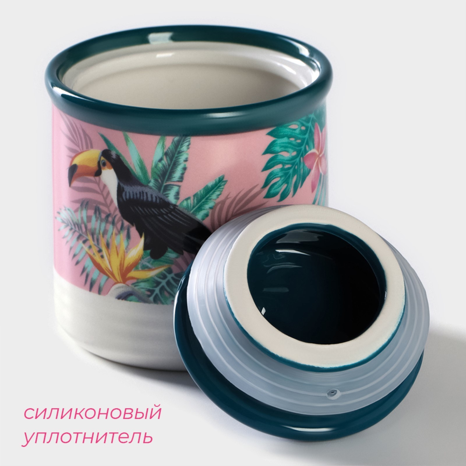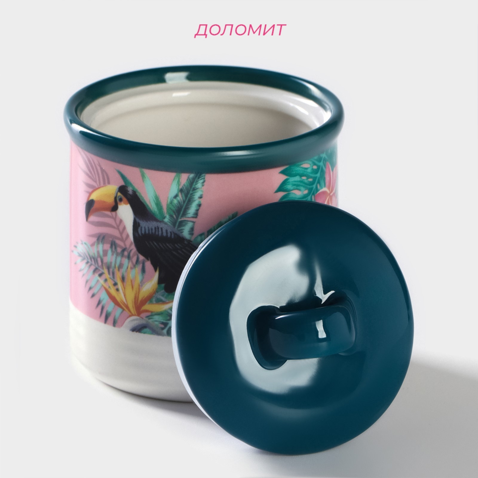 Сахарница доляна «тропики», 150 мл, d=7 см. Сахарница Доляна «Тропики» изготовлена из качественного доломита. Благодаря оригинальному дизайну изделие гармонично дополнит сервировку стола, а также прекрасно подойдёт в качестве подарка. Посуда выполнена в приятных тонах, что позволит вписать её практически в любой интерьер. Доломитовая сахарница универсальная и подходит не только для сахара, но и для мёда, конфет, изюма, орехов и многого другого. Не рекомендуется мыть посуду в посудомоечной машине и использовать в СВЧ-печи. В качестве ухода использовать мягкие губки и неабразивные чистящие средства. Цвет: Разноцветный Форма: Цилиндрическая В наборе, шт.: 1 Объём, мл: 150 Тематика: Цветочно-растительная Тематика: Птицы Материал: Керамика (Доломит) Герметичная крышка: Да Можно мыть в посудомоечной машине: Нет Можно использовать в СВЧ-печи: Нет Текстура: Гладкая Особенности: Без особенностей Матовая поверхность: Нет Запрет реализации по сегментам: 00000000485  развернуть описание ▼