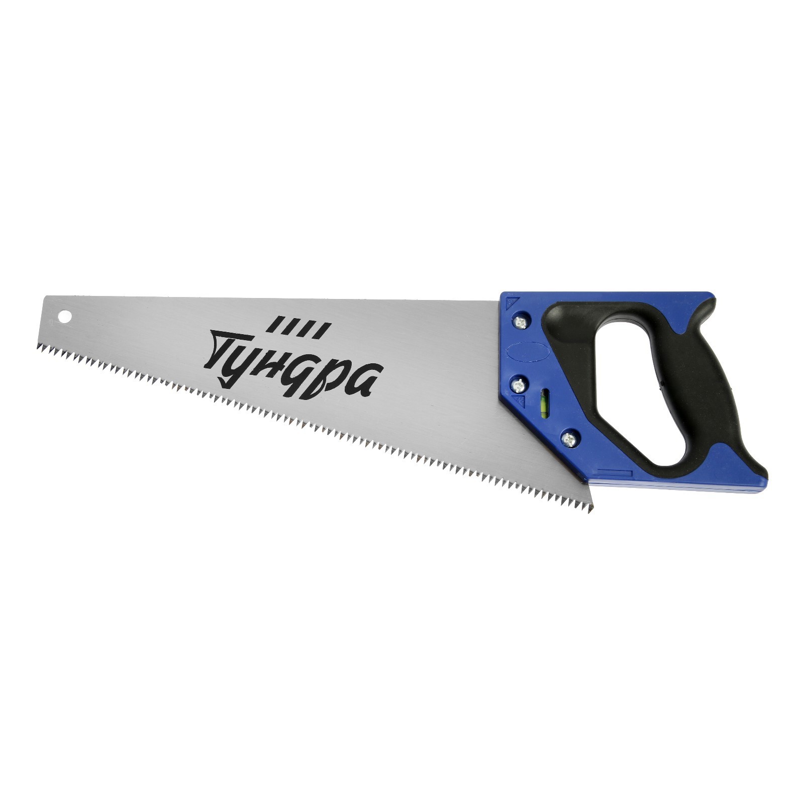 Ножовка по дереву тундра, 2к рукоятка, 2d заточка, каленый зуб, 7-8 tpi, 350 мм. Ножовка по дереву ТУНДРА предназначена для пиления заготовок из древесины. Полотно выполнено из высококачественной стали марки 65. Двухкомпонентная рукоятка за счет своей профилированности удобно лежит в руке при работе. Зубья разведены, что обеспечивает гладкость реза. Полотно инструмента имеет каленый зуб с двухсторонней заточкой. Длина, мм:350|Применение:Дерево|TPI:7 - 8|Материал рукоятки:Двухкомпонентная|Страна:Китай  развернуть описание ▼