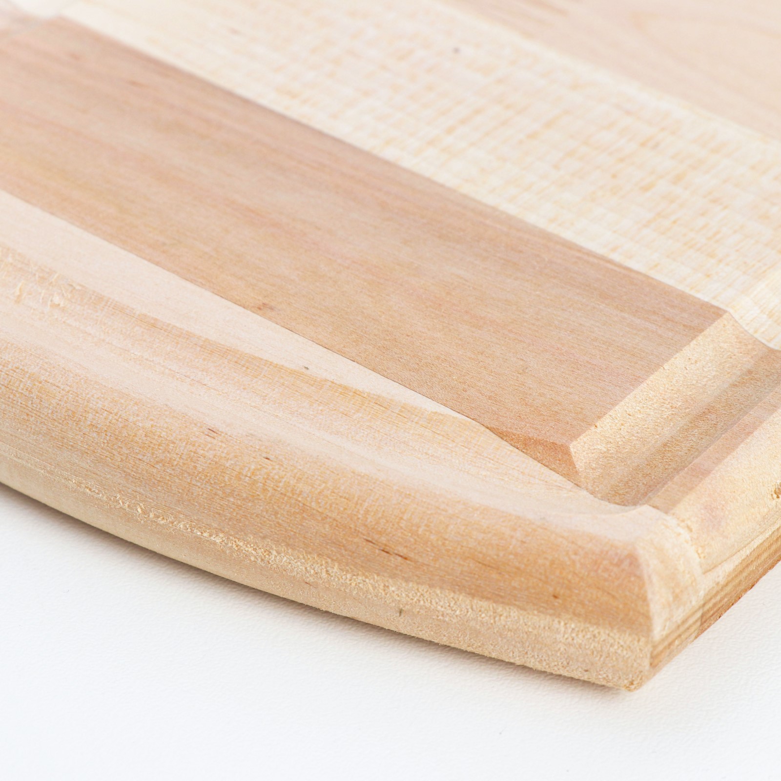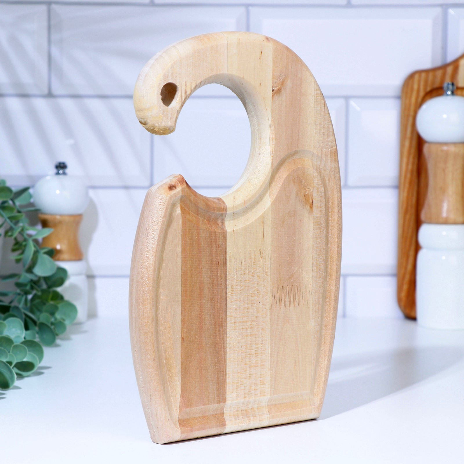 Доска разделочная и сервировочная "под бокал" с желобом для стока, массив, 25x16,5x1,8 см. Деревянная разделочная доска — это классика, актуальная во все времена. Она не боится воды и имеет длительный срок службы. Подходит для мяса и овощей: продукты на ней не скользят, что значительно облегчает нарезку и обеспечивает безопасность повару. Также изделие почти не тупит ножи. Особенности: легко моется и быстро сушится;удобно хранить, можно подвесить на крючок;безопасный природный материал;невысокая цена. Уход за деревянной посудой: 1. Перед первым использованием ополосните деревянное изделие в тёплой воде без добавления моющих средств. Протрите предмет впитывающей тканью. Оставьте его на 1–2 часа, чтобы испарилась вся влага. 2. Не оставляйте изделие надолго в воде, так как дерево впитывает влагу и по мере высыхания может растрескаться. 3. Храните посуду в месте, куда не попадают солнечные лучи и влага. 4. Мойте посуду только вручную, мягкой губкой с добавлением небольшого количества моющего средства. 5. Не оставляете деревянную посуду грязной или мокрой надолго. 6. После мытья тщательно протрите изделие и высушите в вертикальном положении. Цвет: Бежевый Форма: Прямоугольная Длина, см: 25 Ширина, см: 16.5 Вид дерева: Берёза Материал: Дерево Тип доски: Стандартная Тип нанесения рисунка: Без нанесения Можно мыть в посудомоечной машине: Нет Особенности: Подвесная Форма: Прямоугольник  развернуть описание ▼