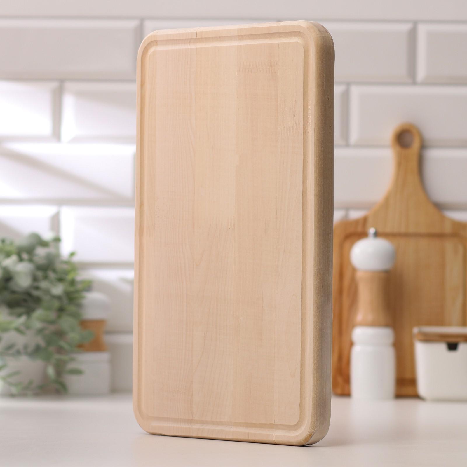 Доска разделочная и сервировочная "прямоугольник", с желобом, массив, 40x25x2,5 см. Деревянная разделочная доска — это классика, актуальная во все времена. Она не боится воды и имеет длительный срок службы. Подходит для мяса и овощей: продукты на ней не скользят, что значительно облегчает нарезку и обеспечивает безопасность повару. Также изделие почти не тупит ножи. Особенности: легко моется и быстро сушится;удобно хранить, можно подвесить на крючок;безопасный природный материал;невысокая цена. Уход за деревянной посудой: 1. Перед первым использованием ополосните деревянное изделие в тёплой воде без добавления моющих средств. Протрите предмет впитывающей тканью. Оставьте его на 1–2 часа, чтобы испарилась вся влага. 2. Не оставляйте изделие надолго в воде, так как дерево впитывает влагу и по мере высыхания может растрескаться. 3. Храните посуду в месте, куда не попадают солнечные лучи и влага. 4. Мойте посуду только вручную, мягкой губкой с добавлением небольшого количества моющего средства. 5. Не оставляете деревянную посуду грязной или мокрой надолго. 6. После мытья тщательно протрите изделие и высушите в вертикальном положении. Цвет: Бежевый Форма: Прямоугольная Длина, см: 40 Ширина, см: 25 Вид дерева: Берёза Материал: Дерево Тип доски: С лотком Тип нанесения рисунка: Без нанесения Температурное ограничение: Нет Можно мыть в посудомоечной машине: Нет Особенности: Без особенностей Форма: Прямоугольник  развернуть описание ▼