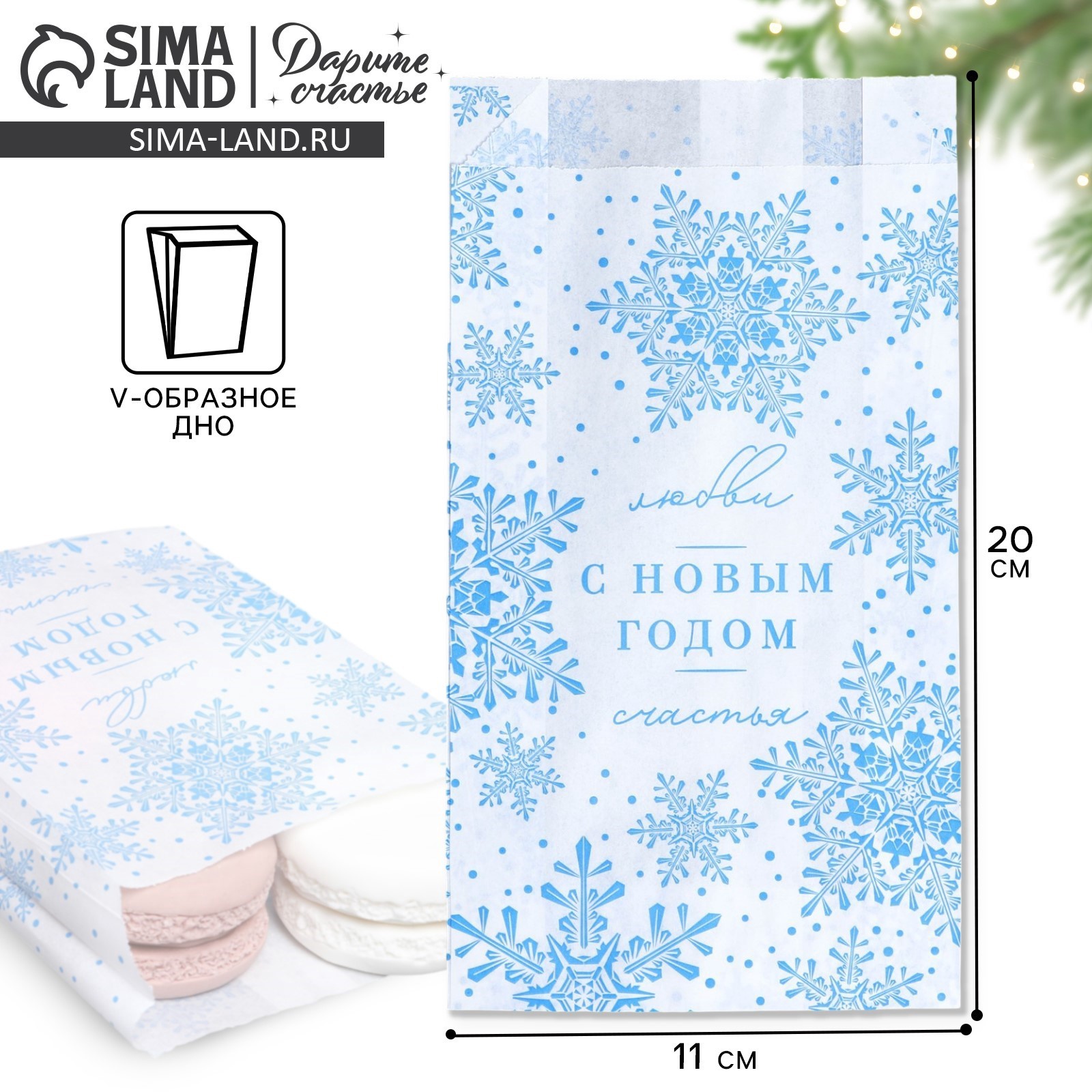 Пакет бумажный фасовочный, крафт, v-образное дно «с новым годом!», 20 х 11 х 4 см. Набор:Нет|Вид упаковки:Универсальная|Цвет:Белый|Цвет:Голубой|Для кого:Унисекс|Форма:Прямоугольная|Плотность, г/м :40|Длина, см:11|Ширина, см:4|Высота, см:20|Рекомендуемая нагрузка, кг:0.1|Тематика:Новогодняя|Рисунок:Да|Символ года:Нет|Тематика праздника:Новый год|Материал:Бумага|Отделка пакета:Крафт|Расширение:Боковая складка|Вид ручки:Без ручки|Форма пакета:Вертикальный|Особенности:Без особенностей|Для детей до 3 лет:Нет|Страна:Россия  развернуть описание ▼