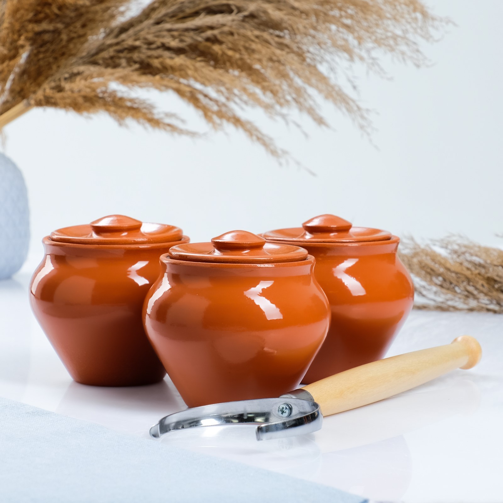 Набор "вятская керамика трио" 0,5лх3шт + ухват, терракота.
