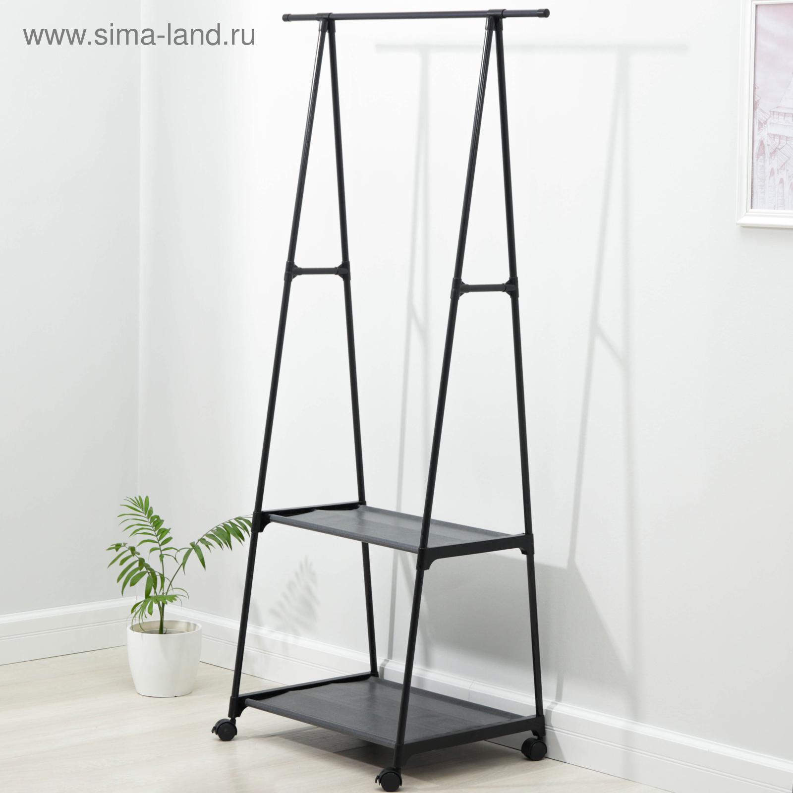 Стойка для одежды с 2-я полочками, 55x42x160 см, цвет чёрный
