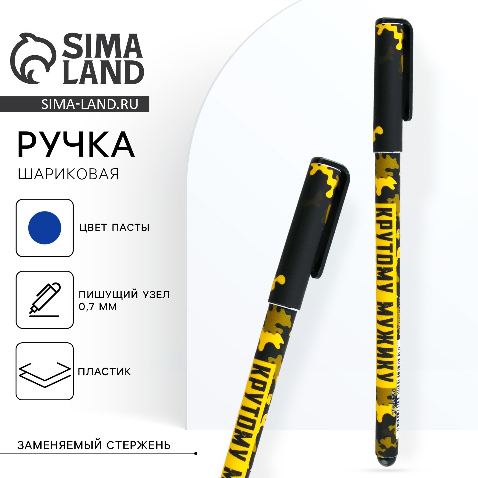 Ручка шариковая, синяя паста 0.7 мм с колпачком пластик софт-тач «крутому мужику». Ручка отличное дополнение к подарку. Яркий дизайн несомненно привлечет внимание и будет выделяться среди других предметов, а удобная форма корпуса позволит использовать ее с комфортом. Стержень заменяемый: да;Материал: пластик.Диаметр пишущего узла, мм:0.7|Набор:Нет|Цвет стержня:Синий|Европодвес:Нет|Вид упаковки:Тубус|Тематика праздника:23 Февраля|Материал:Пластик|Материал упаковки:Пластик|Составляющие набора:Ручка|Штрихкод на единице товара:Нет|Наличие грипа:Да|Страна:Китай  развернуть описание ▼