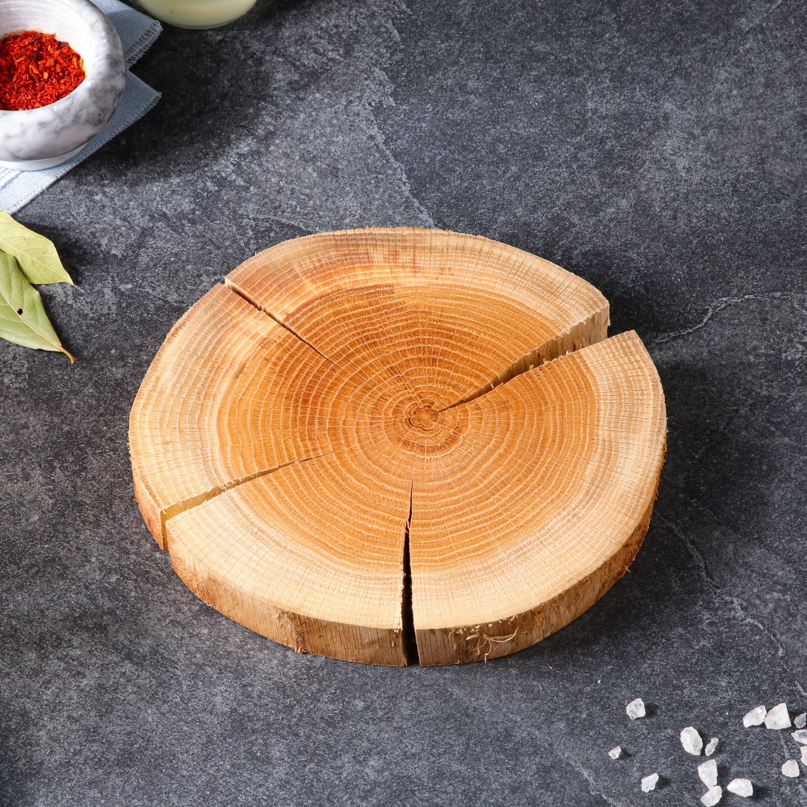 Спил-доска торцевой "дубовый", 20-25 х 3 см. Цвет: Коричневый Форма: Круглая parts count: 0 Материал: Дерево Температурное ограничение: Нет Можно мыть в посудомоечной машине: Нет Форма: Круг, шар, цилиндр  развернуть описание ▼