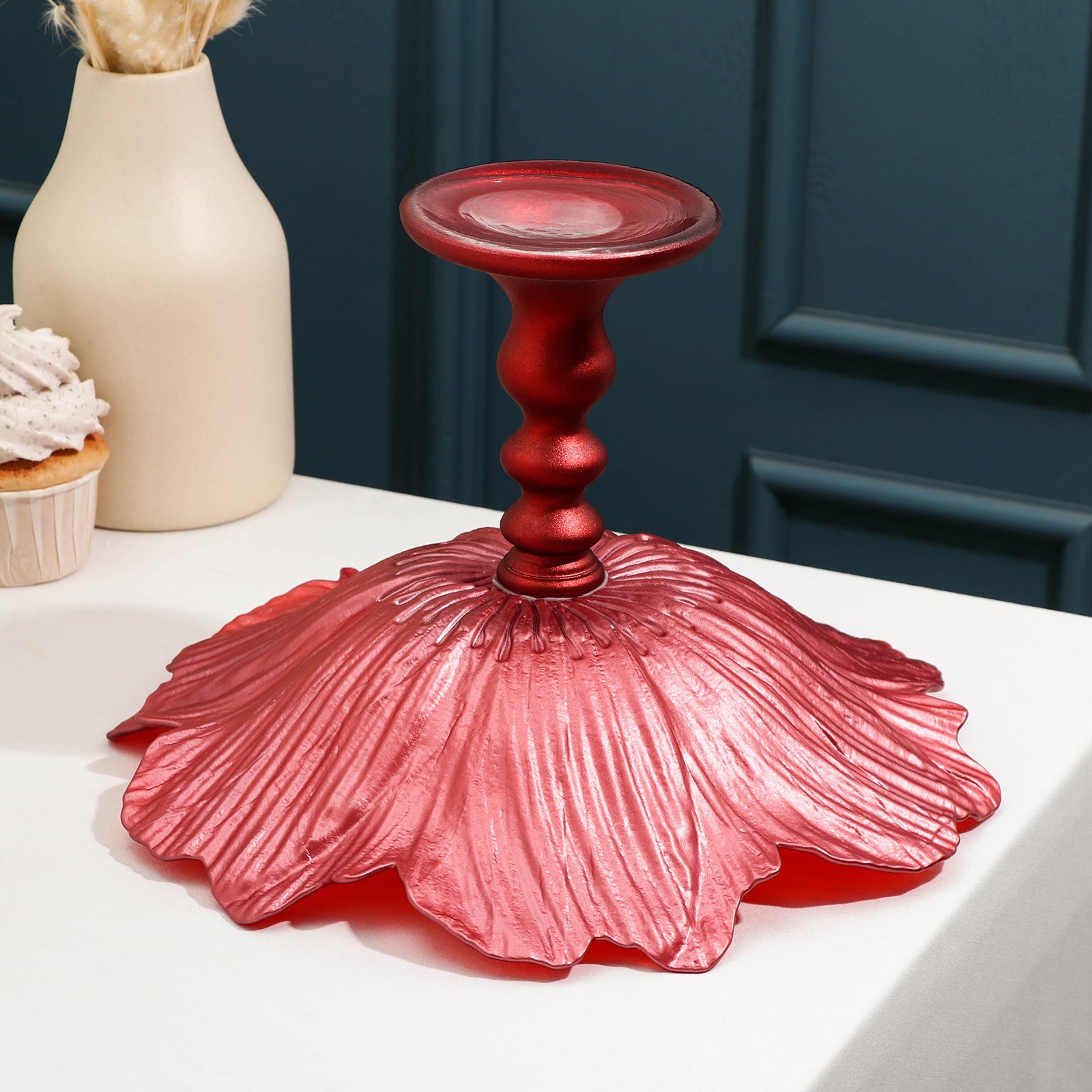 Блюдо сервировочное на ножке «маки», D=30 см, цвет красный