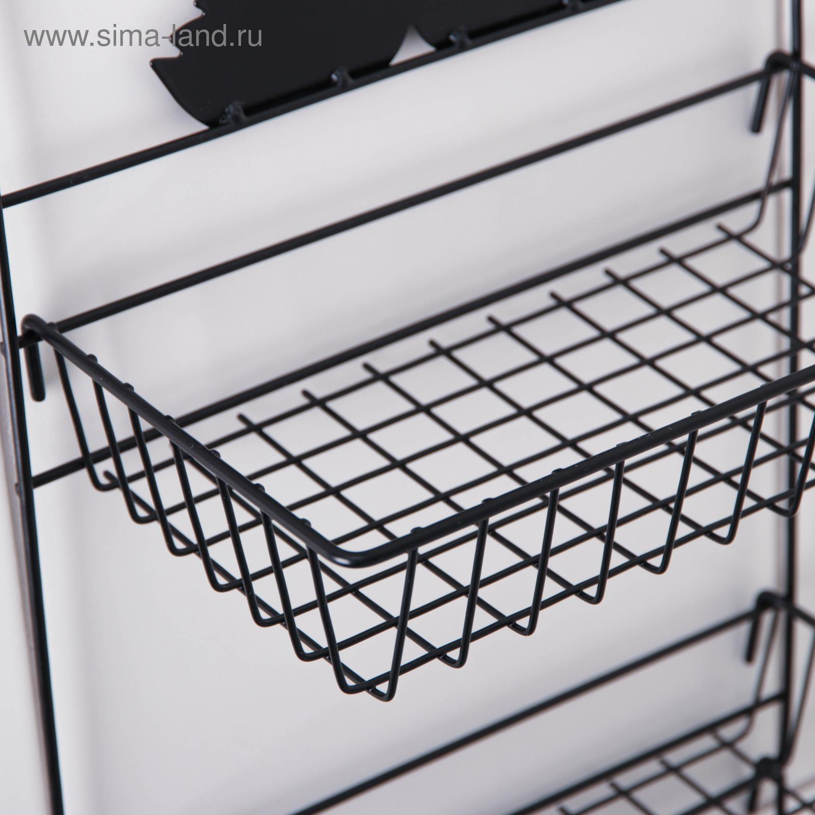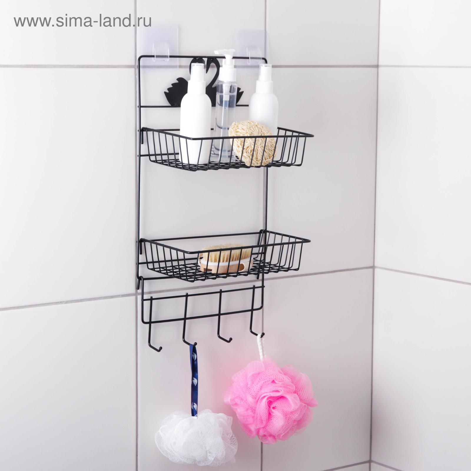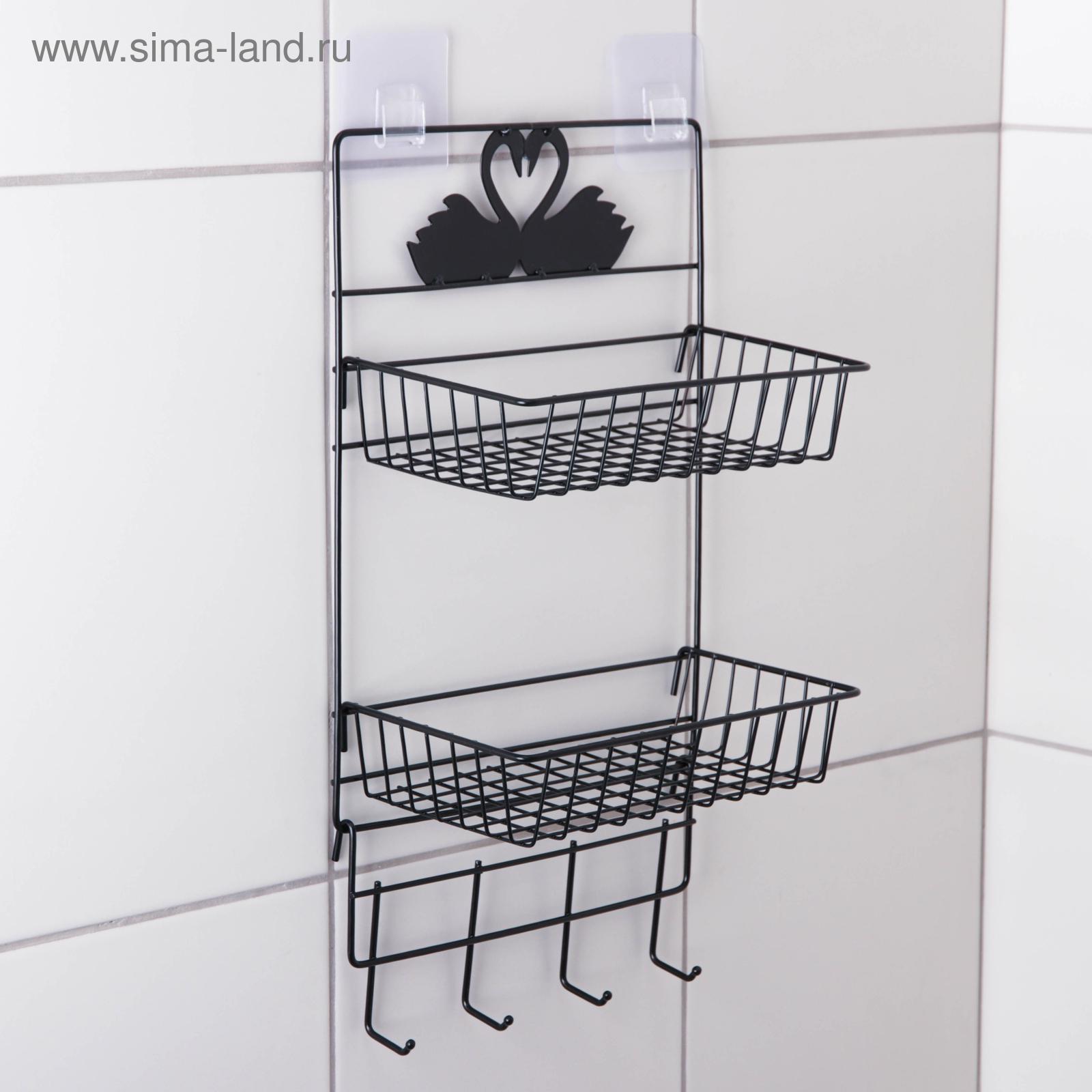 Полка 2-х ярусная доляна, 4 крючка, 45,5x25x13 см, цвет чёрный