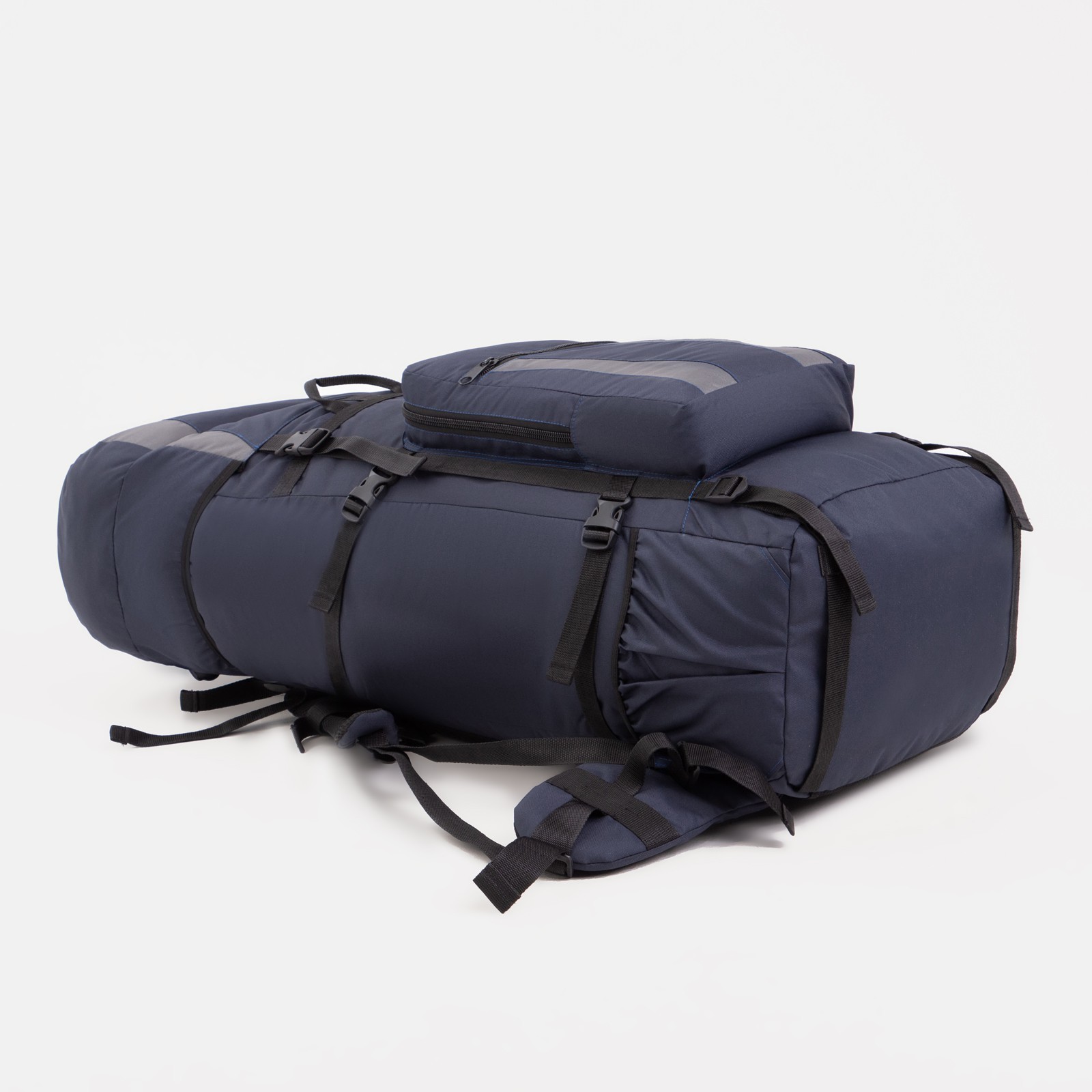 Рюкзак туристический, Taif, 90 л, отдел на шнурке, наружный карман, 2 боковые сетки, цвет синий/серый