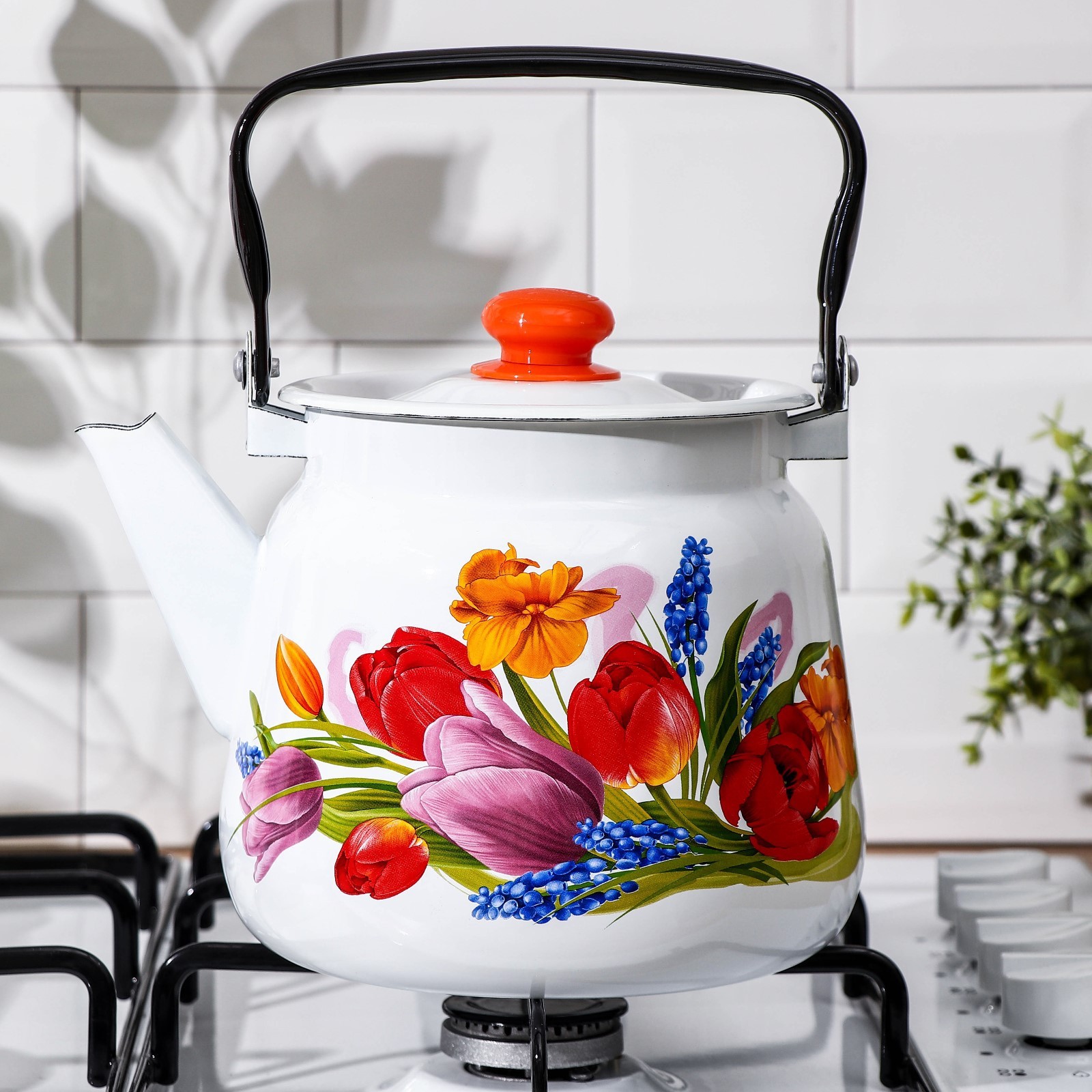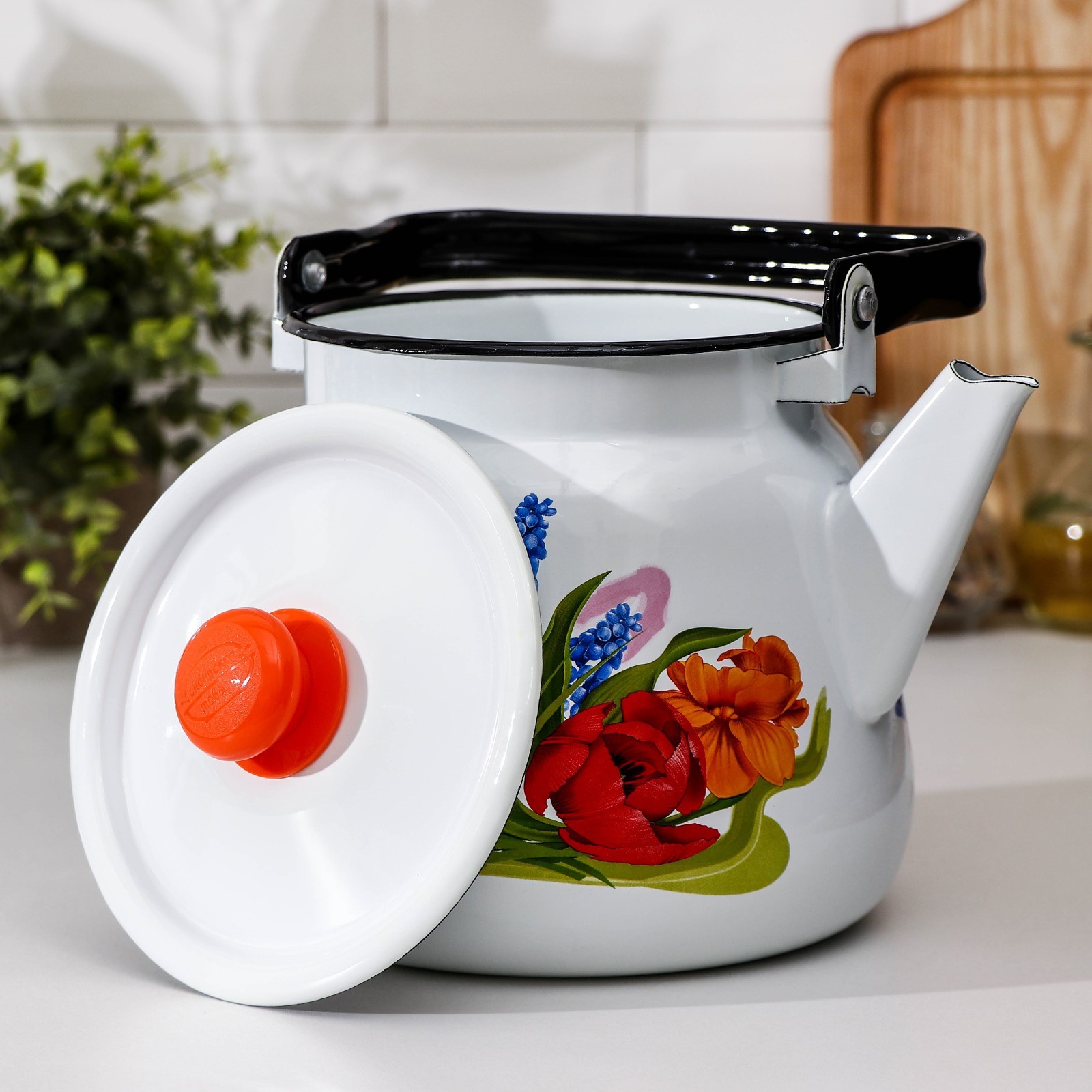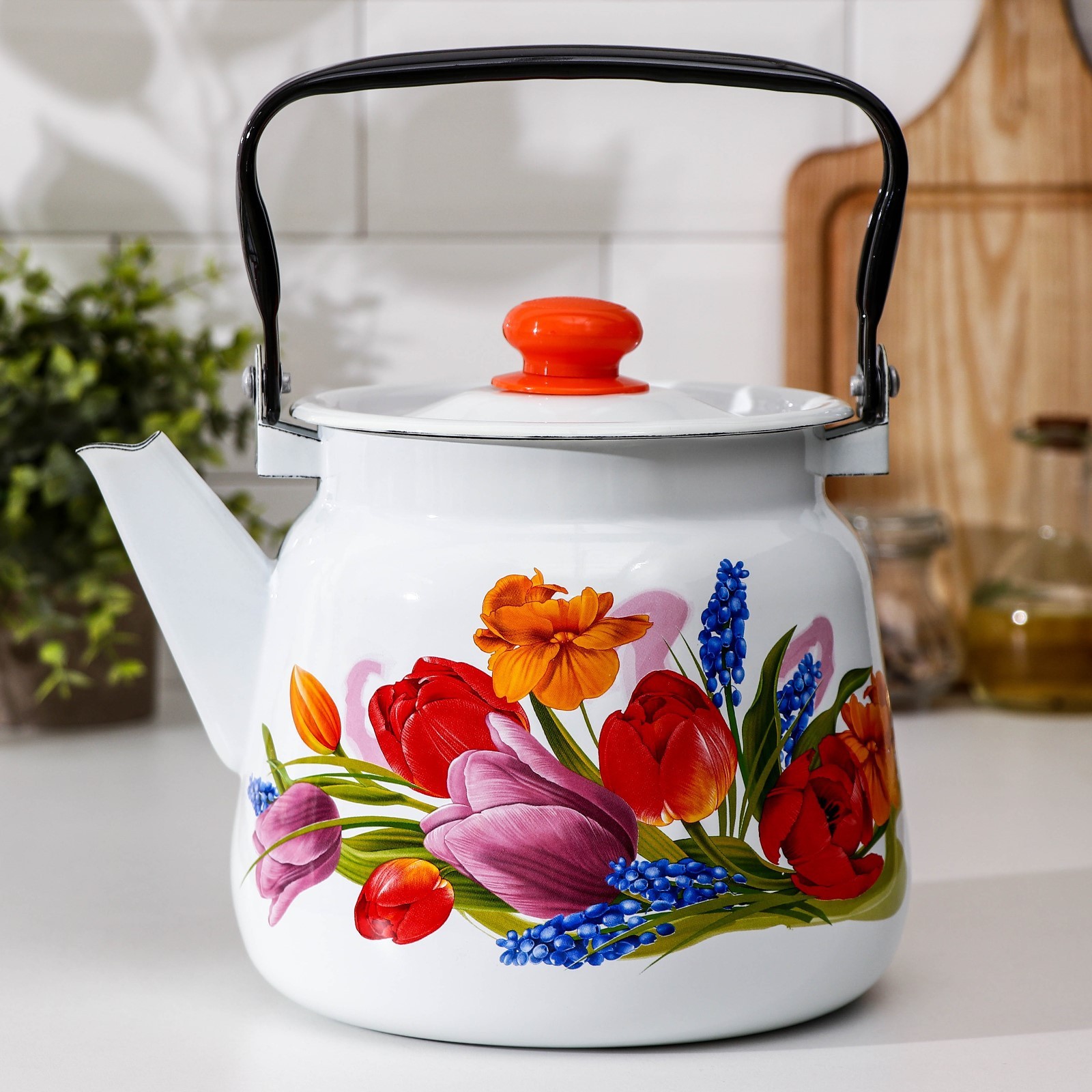 Чайник «тюльпан май», 3,5 л, с кнопкой, индукция, цвет белый
