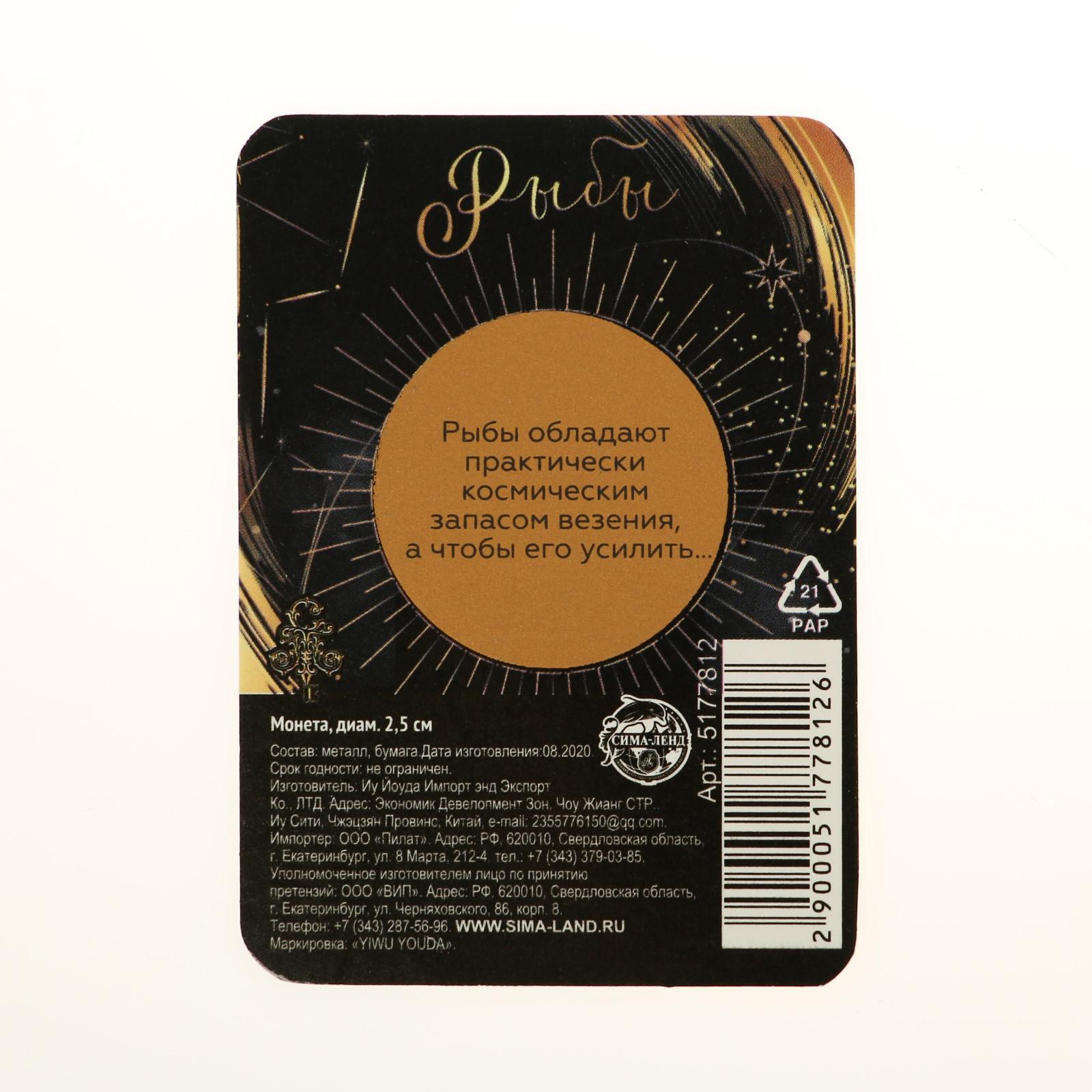 Монета сувенир знак зодиака «рыбы», d=2,5 см.. Сувенирная монета со знаком гороскопа — это изысканный и символичный подарок, отражающий индивидуальность и характер владельца. Выполнена из качественного металла, украшена детализированным изображением знака зодиака. Такая монета станет не только приятным сувениром, напоминанием о важном событии или человеке, но и оригинальным талисманом, приносящим удачу и гармонию согласно астрологическим особенностям. Идеально подходит для коллекционеров и тех, кто ценит индивидуальность и символизм. Набор:Нет|Вид упаковки:Подложка|Тематика праздника:Универсальная тематика|Материал:Металл|Знак зодиака:Рыбы|Тематика:Гороскоп|Вид гороскопа:Зодиакальный|Страна:Китай  развернуть описание ▼