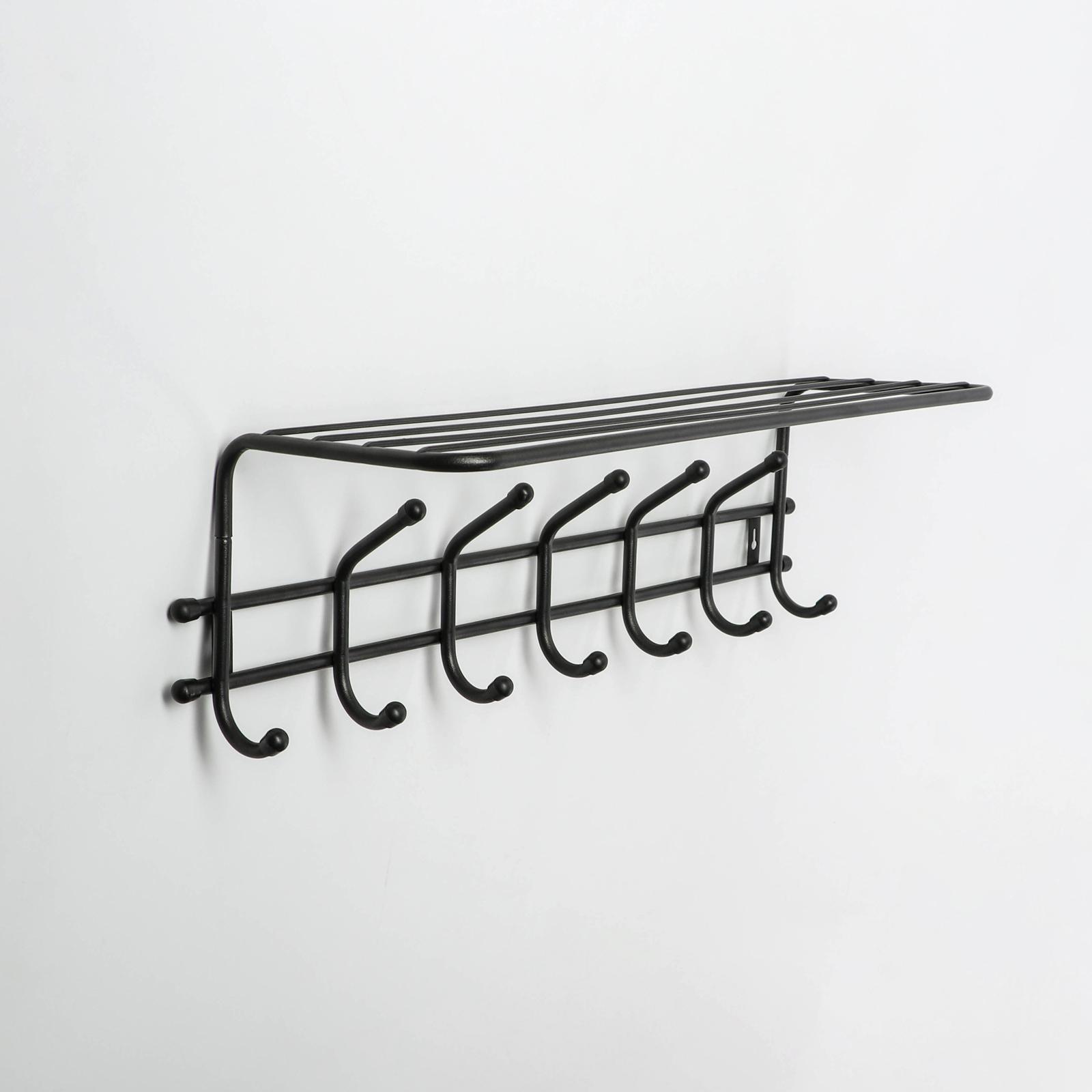 Вешалка настенная с полкой «комфорт 7», 7 крючков, 61x20x8 см, цвет чёрный