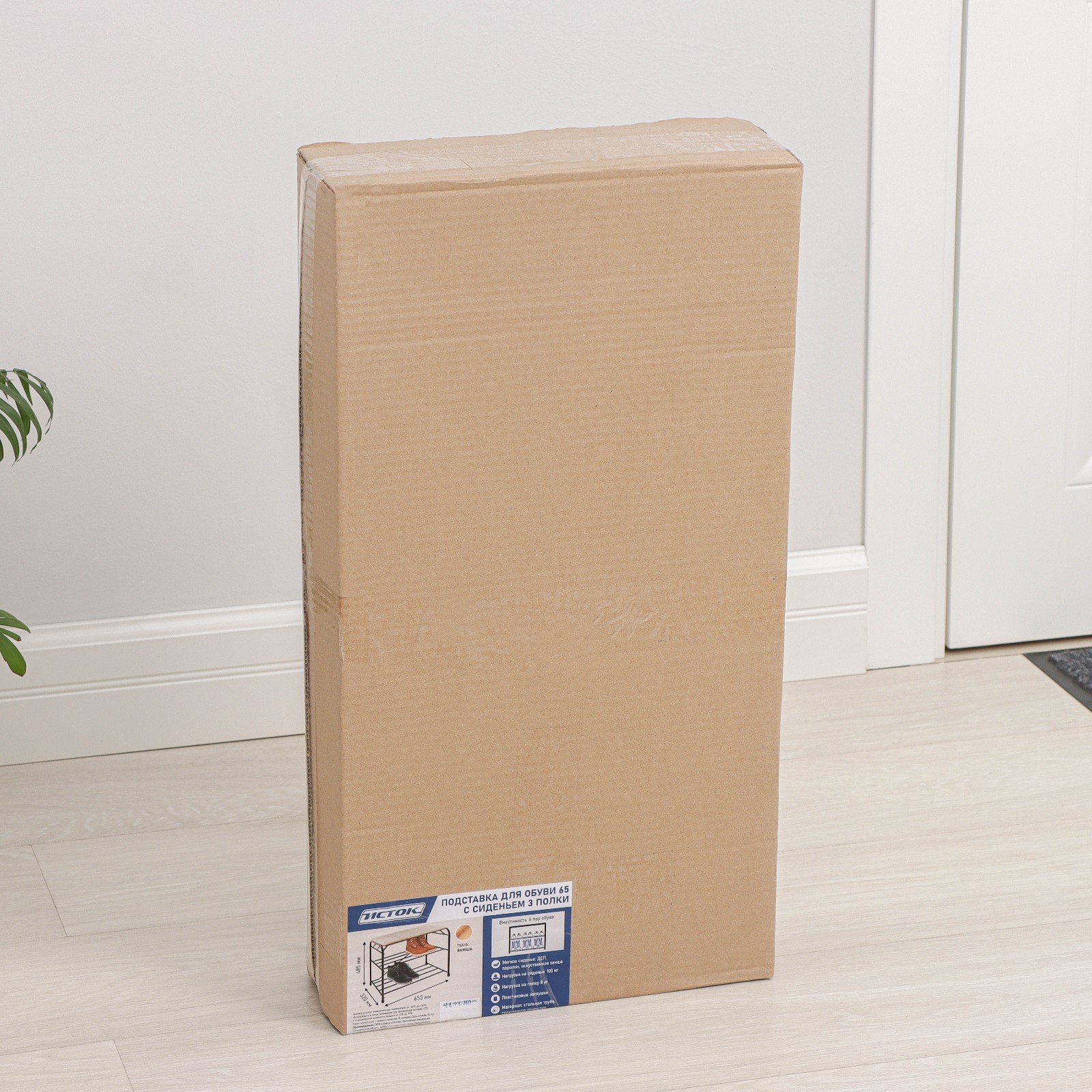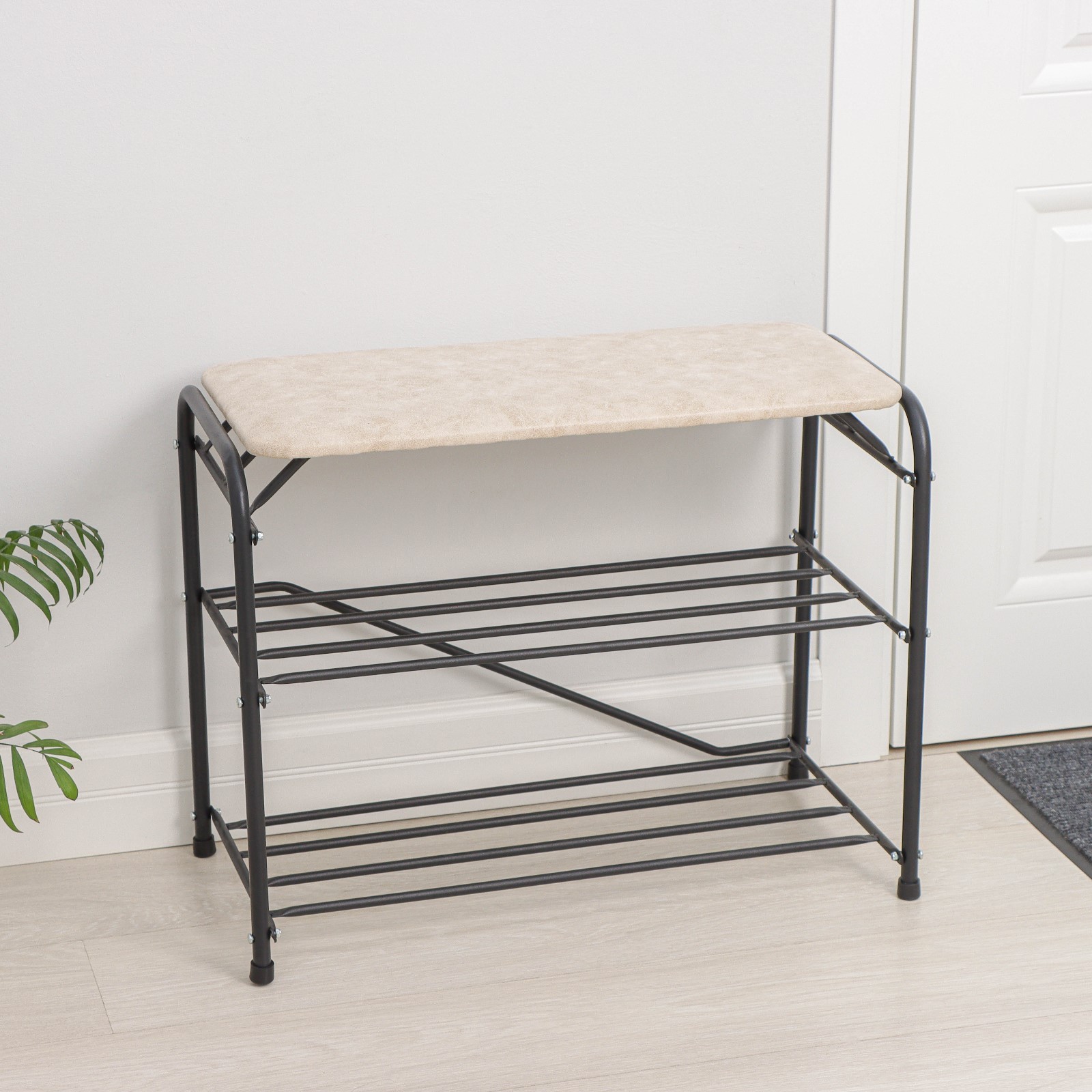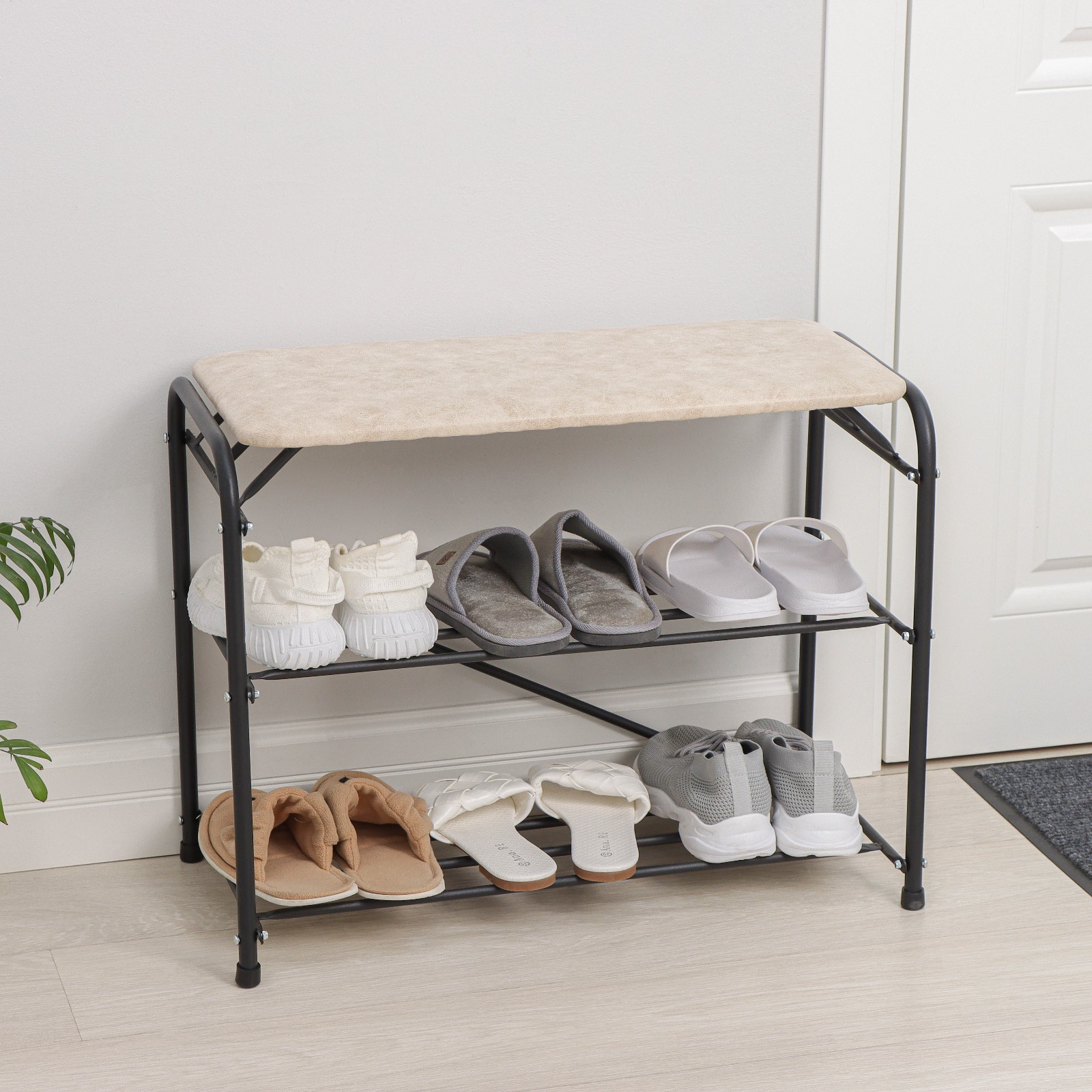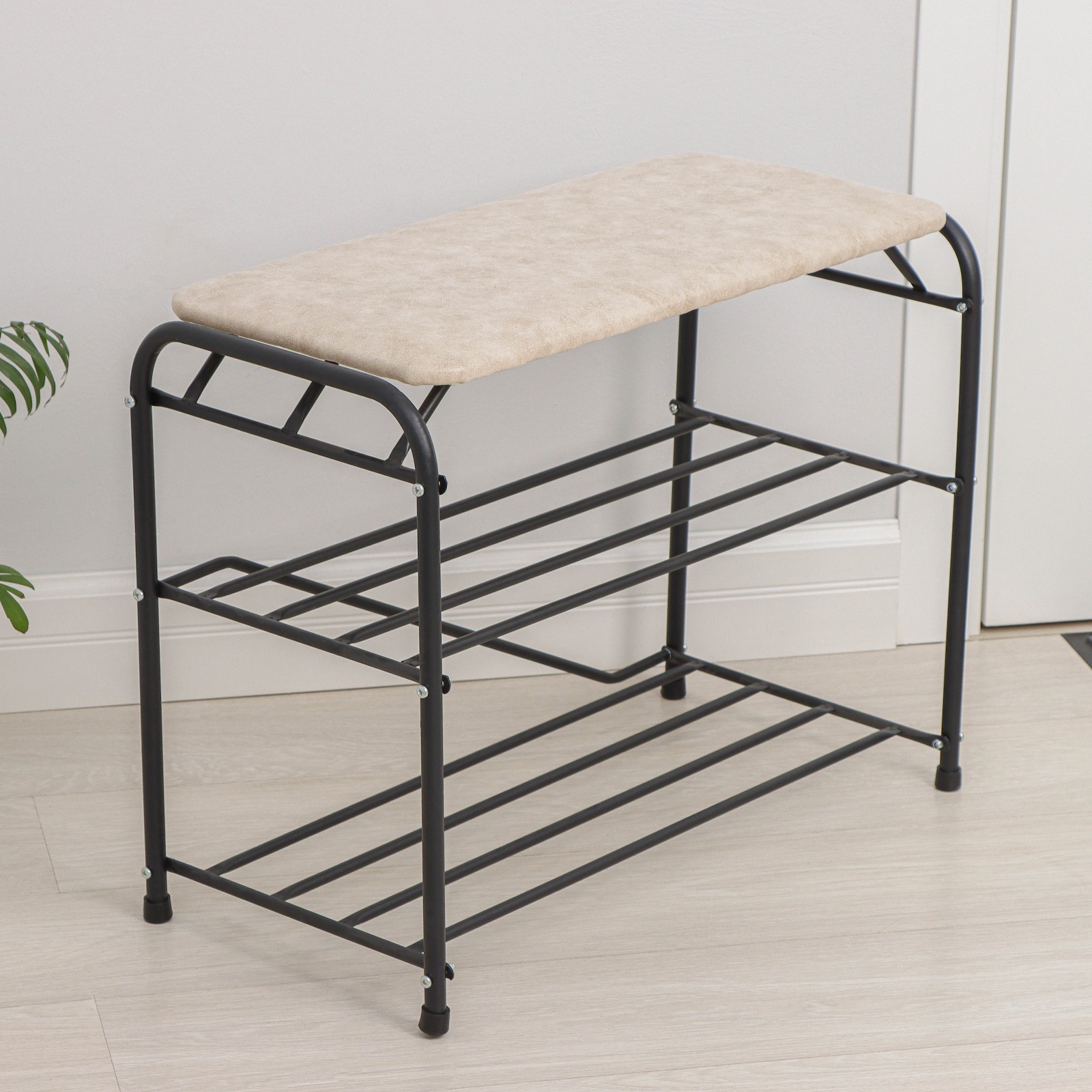 Подставка для обуви с сиденьем, 3 яруса, 65x32x48,5 см, замша, цвет чёрный