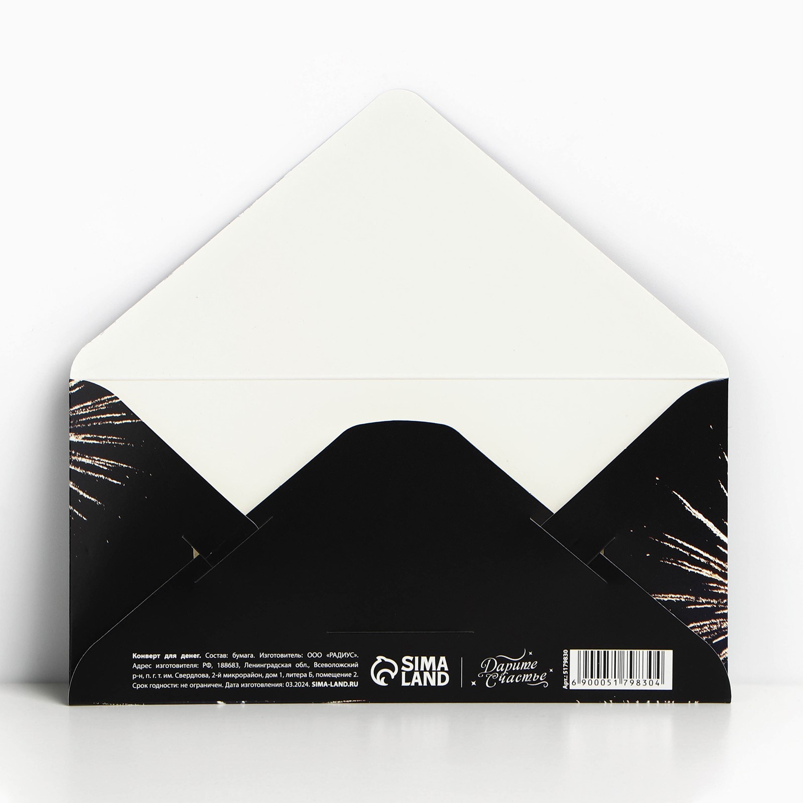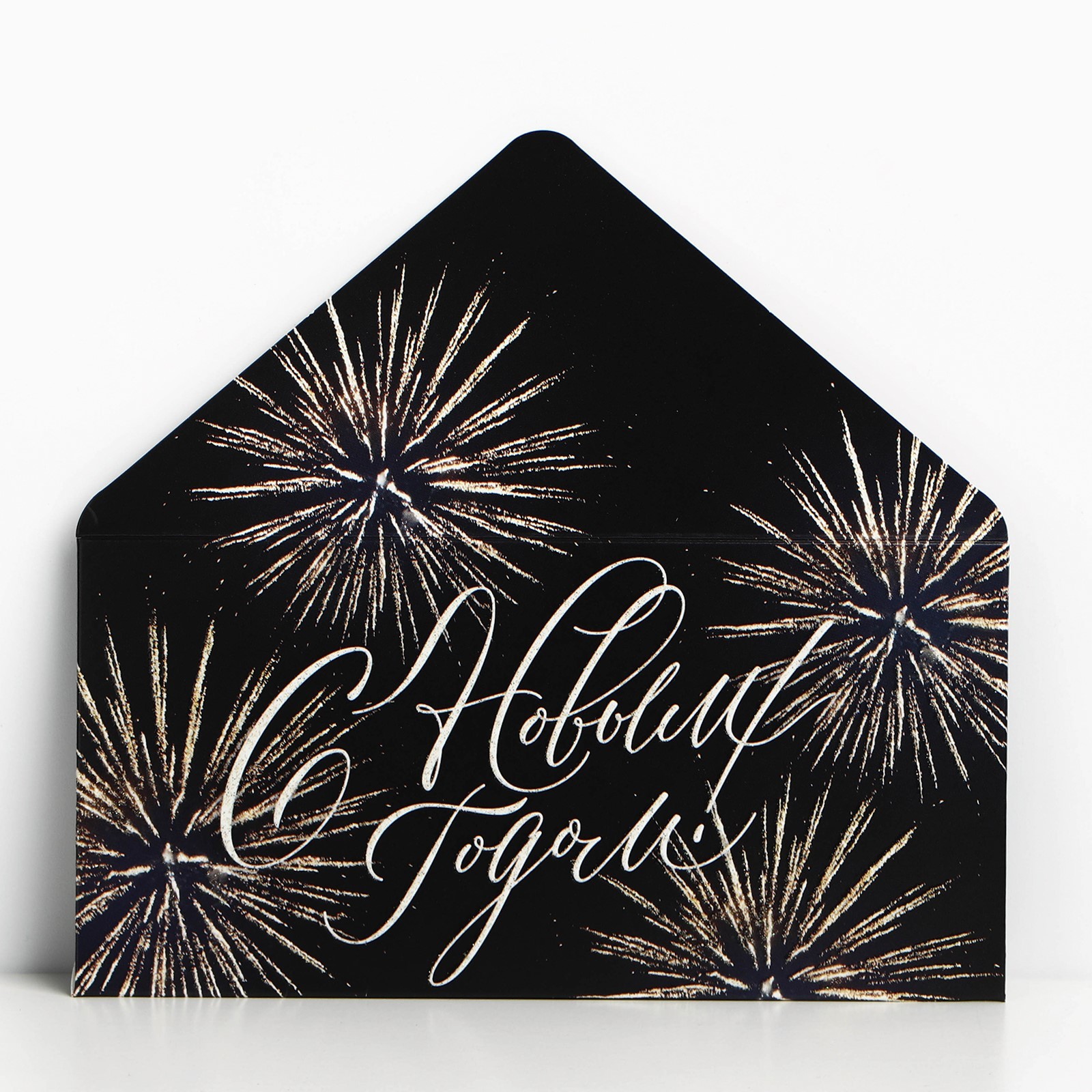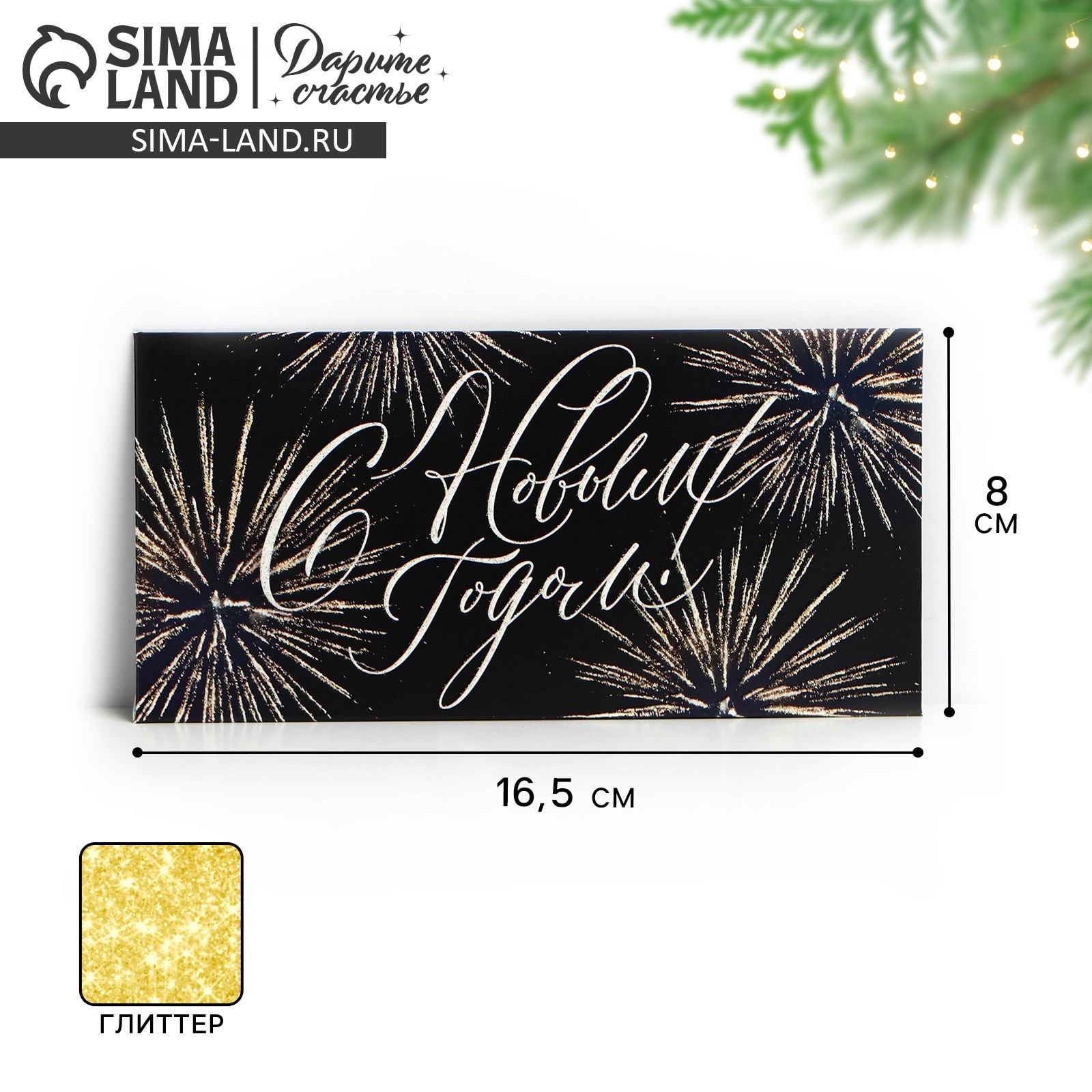 Конверт для денег «с новым годом!» глиттер, 16.5 х 8 см. Цвет:Чёрный|Для кого:Унисекс|Плотность, г/м :190|Размер, см:8 х 16.5|Отделка:Глиттер|Символ года:Нет|Тематика праздника:Новый год|Адресат:Без адресата|Материал:Картон|Страна:Россия  развернуть описание ▼