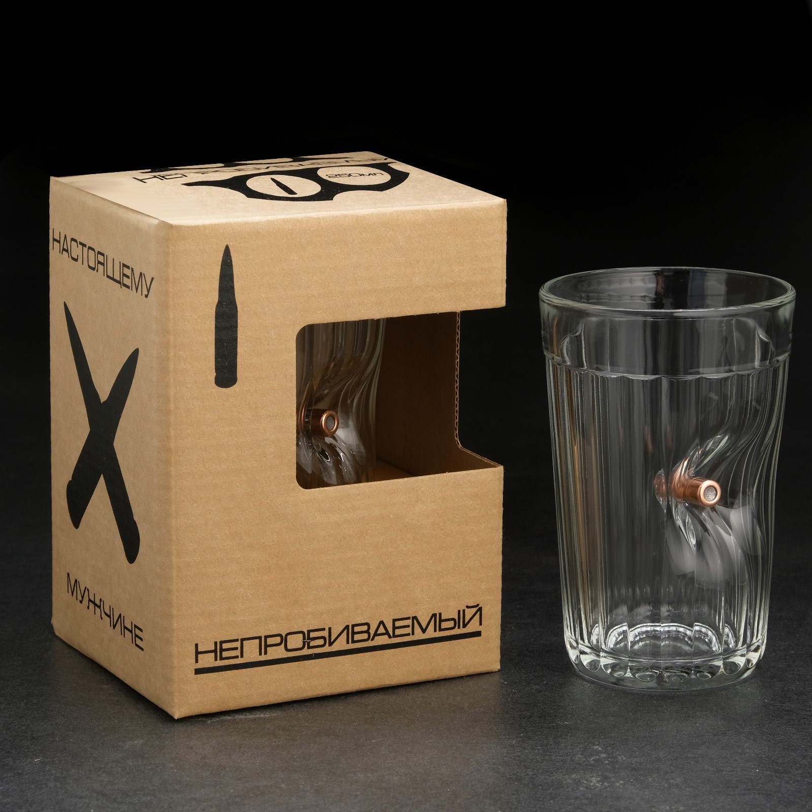Стакан граненый с пулей "непробиваемый. крафт", 250 мл