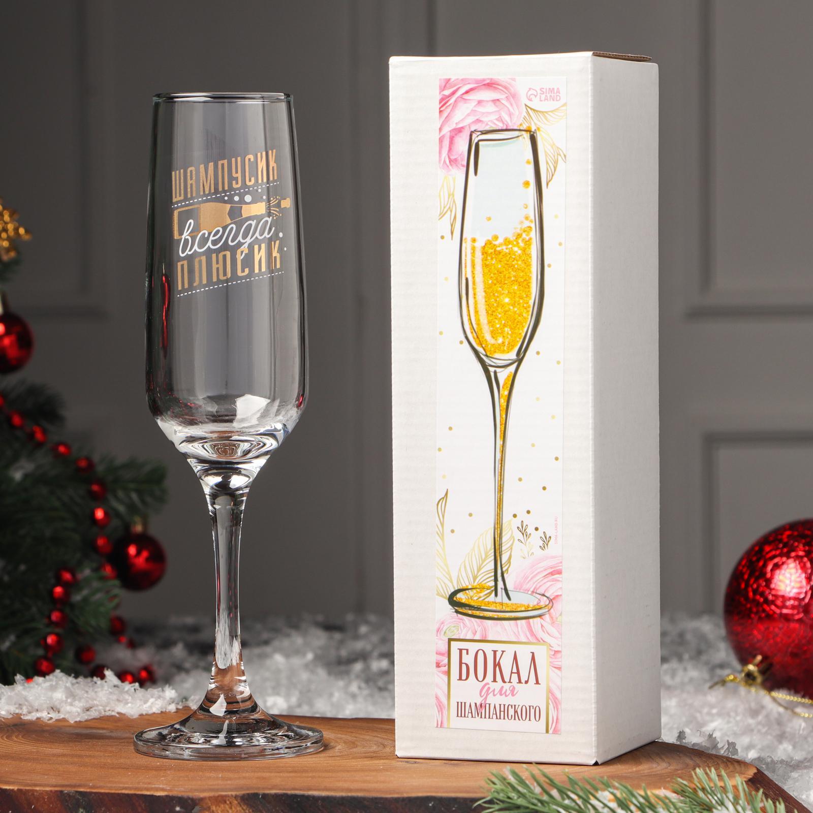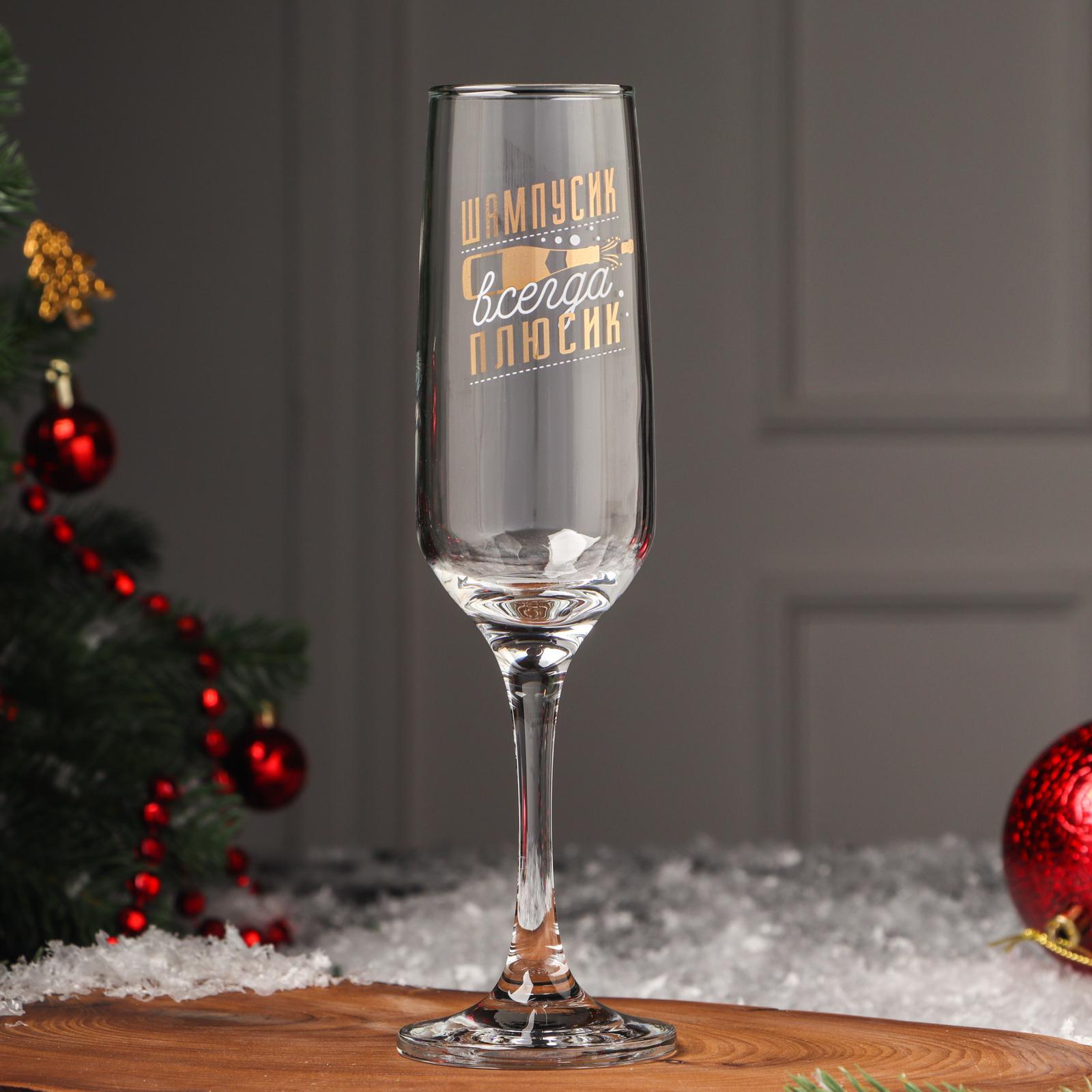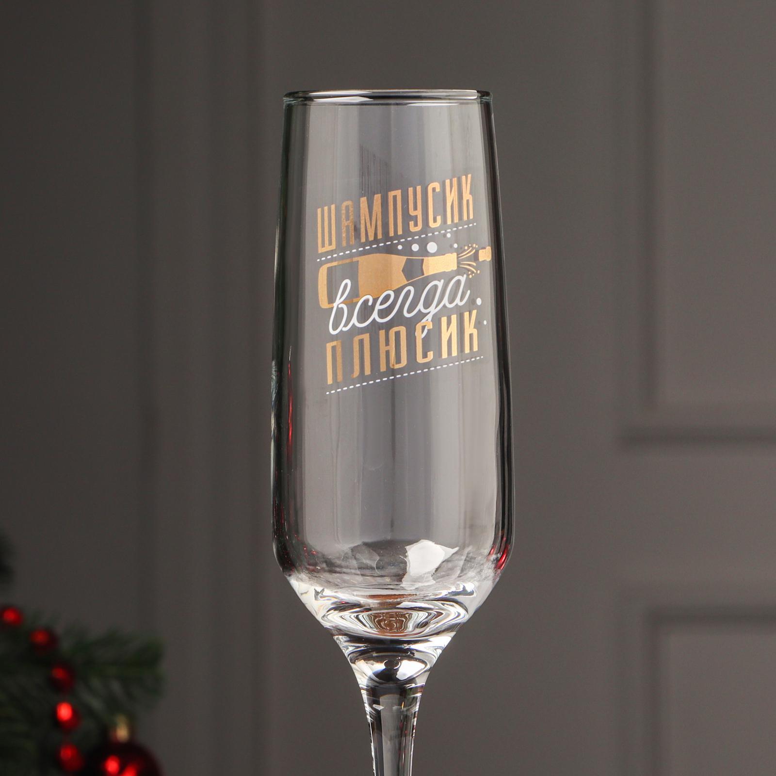 Бокал для шампанского «шампусик-плюсик», 200 мл, деколь