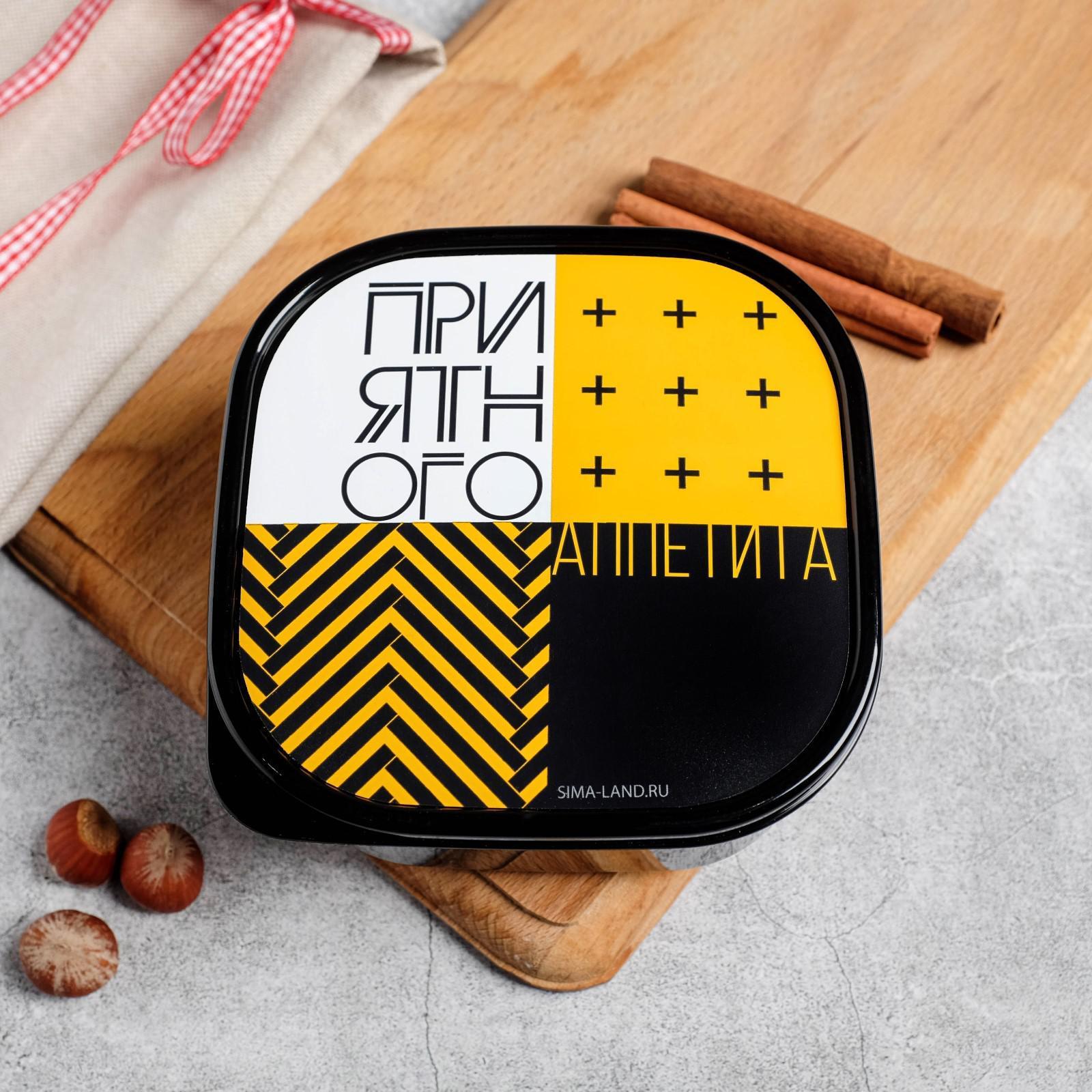 Ланч бокс "приятного",0,7 л. Ланч-бокс от торговой марки FoodVibes - это удобное и практичное решение для переноса и хранения пищи. Изготовленный из полипропилена, материала, известного своей прочностью и долговечностью, этот ланч-бокс гарантирует долгий срок службы. Размеры ланч-бокса составляют 6, 5 см х 12, 5 см х 12, 5 см а его вес - всего 75 г. Квадратная форма и объем в 700 мл обеспечивают достаточно места для хранения различных видов пищи, делая его идеальным для обеда или перекуса. Особенностью этого ланч-бокса является герметичная крышка, которая предотвращает проливание и сохраняет свежесть продуктов. В дополнение к этому, ланч-бокс можно использовать в СВЧ-печи, что делает его удобным для подогрева пищи. FoodVibes - это торговая марка, известная своим качеством и надежностью. Их ланч-бокс - это не только удобный аксессуар для переноса пищи, но и стильный элемент, который подчеркнет вашу индивидуальность. Цвет: Чёрный Форма: Квадратная parts count: 0 Объём, л: 0.7 Время сохранения тепла/холода, ч: 2 Объём, мл: 700 tnved: 3924100000 Материал: Пластик Герметичная крышка: Да Наличие столовых приборов: Нет Температурное ограничение: Нет Можно мыть в посудомоечной машине: Да Можно использовать в СВЧ-печи: Да Форма: Квадрат, куб  развернуть описание ▼
