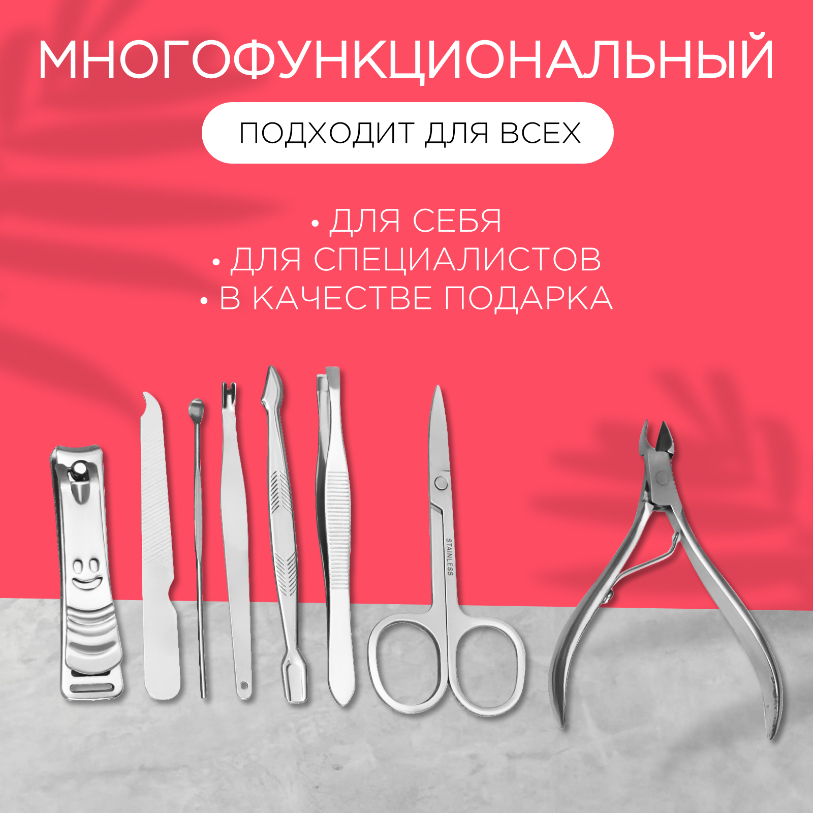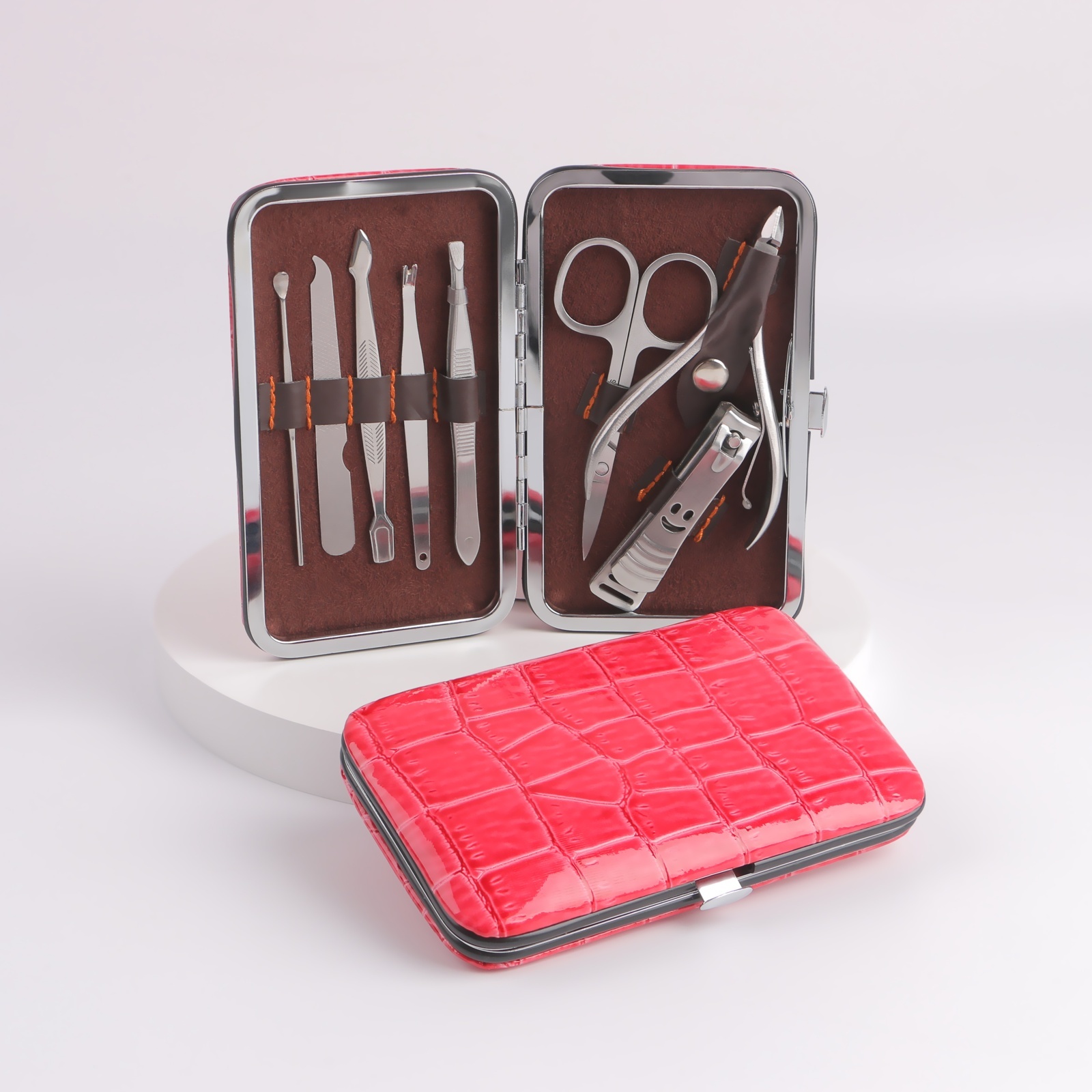 Набор маникюрный «рептилия», 8 предметов, в футляре, цвет красный
