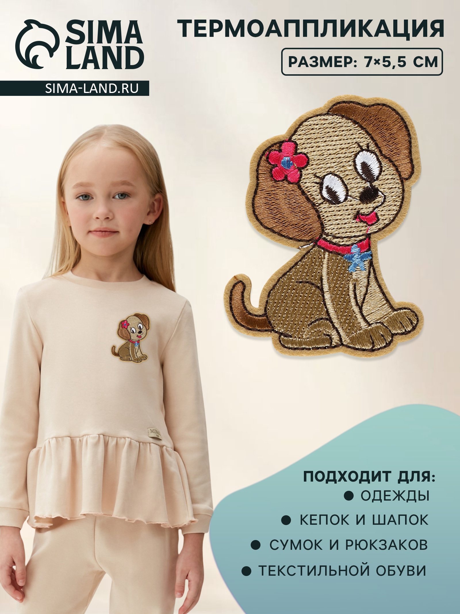 Термоаппликация «собачка», 7 5.5 см, коричневая. Термоаппликация «Собачка» от Арт Узор — милый способ обновить детскую одежду. Коричневые фигурки собачек размером 7 5,5 см легко украсят футболки, платья или сумочки. ПреимуществаУниверсальное применение — подходит для хлопка, джинсовой ткани, синтетикиПростое нанесение — фиксируется утюгом за 2-3 минуты без специальных навыковДолговечность — не отклеивается после многочисленных стирокЯркий дизайн — теплый коричневый цвет хорошо сочетается с разными оттенкамиКачественная печать — четкие контуры и стойкие цветаДля творчества — можно создавать уникальные композиции на одеждеПодарите любимым вещам вторую жизнь с очаровательными собачками! Эти термоаппликации — простой способ сделать детский гардероб веселее. Быстро, удобно и красиво — выбирайте проверенное решение от Арт Узор. Набор:Нет|Цвет:Коричневый|Для кого:Для девочки|Длина, см:5.5|Ширина, см:7|Фасовка, шт.:10|Тематика:Детская|Материал:Нетканый материал|Материал:Полиэстер|Двусторонний:Нет|Вид наклейки:Термонаклейка|Вид:Текстильные |Особенности :Без особенностей|Страна:Китай  развернуть описание ▼