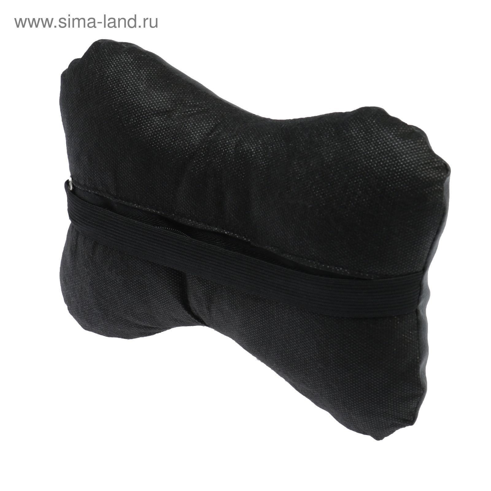 Подушка автомобильная косточка, на подголовник, экокожа, чёрный, 16х24 см
