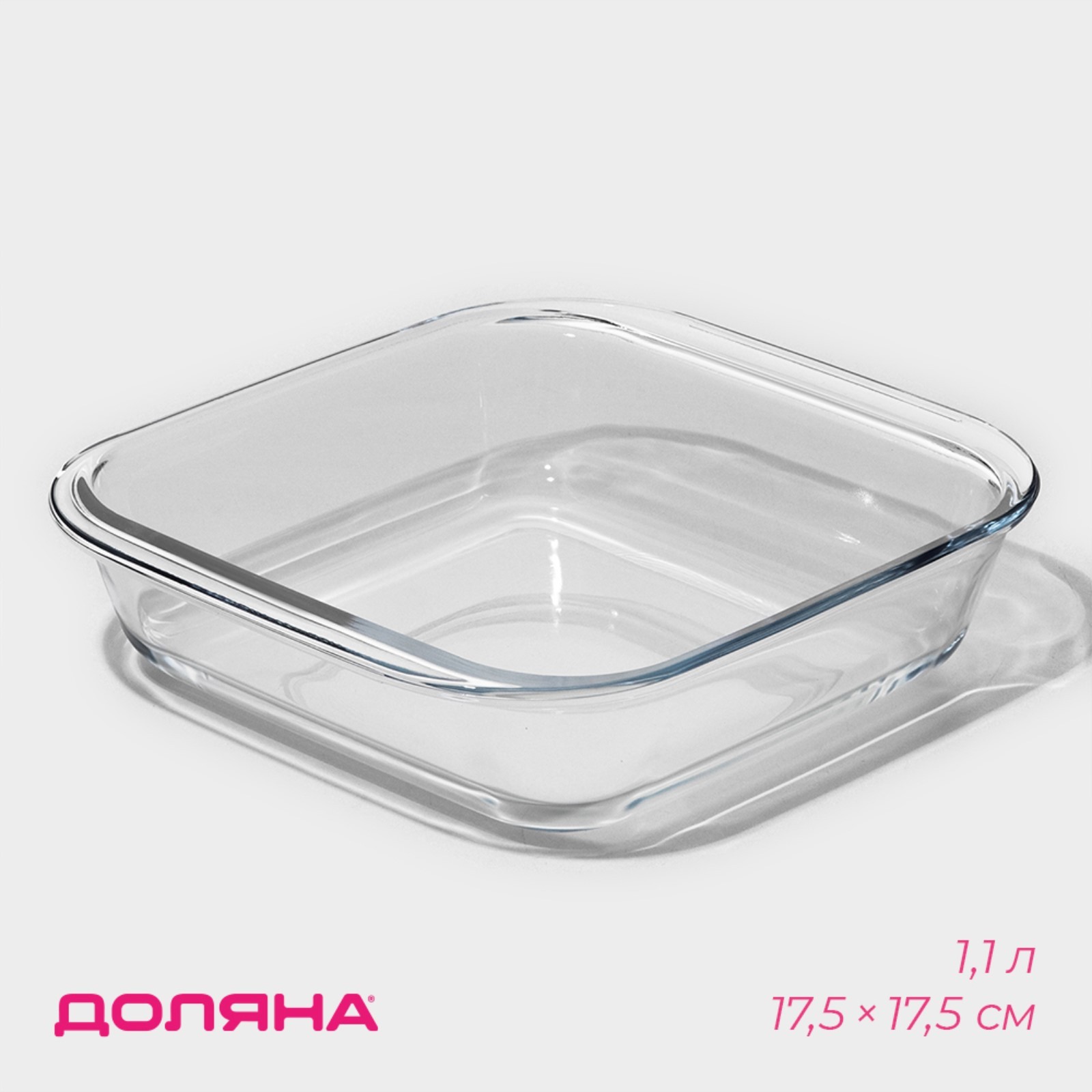 Форма из жаропрочного стекла для запекания квадратная доляна «лазанья», 1,1 л, верх 17,5x17,5 см, низ 14,5x14,5 см