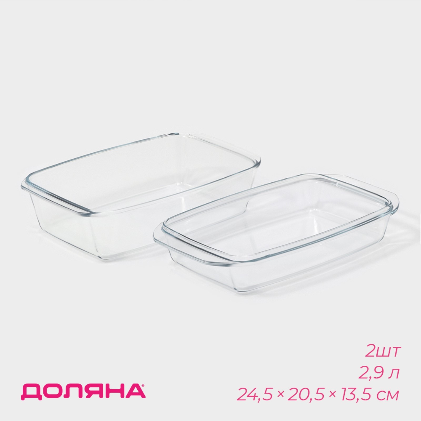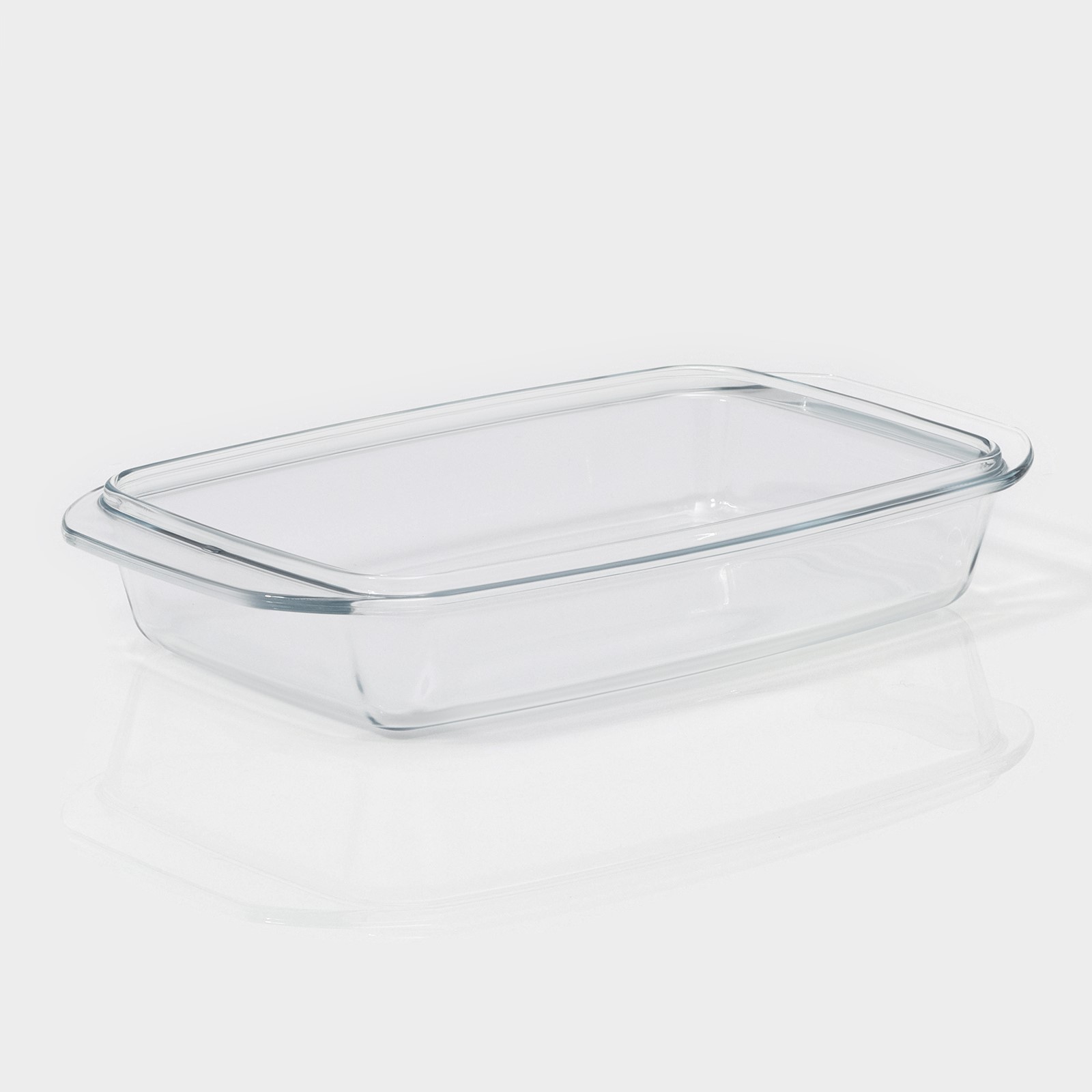 Кастрюля из жаропрочного стекла для запекания доляна «утятница», 2,9 л, 24,5x20,5x13,5 см, с крышкой