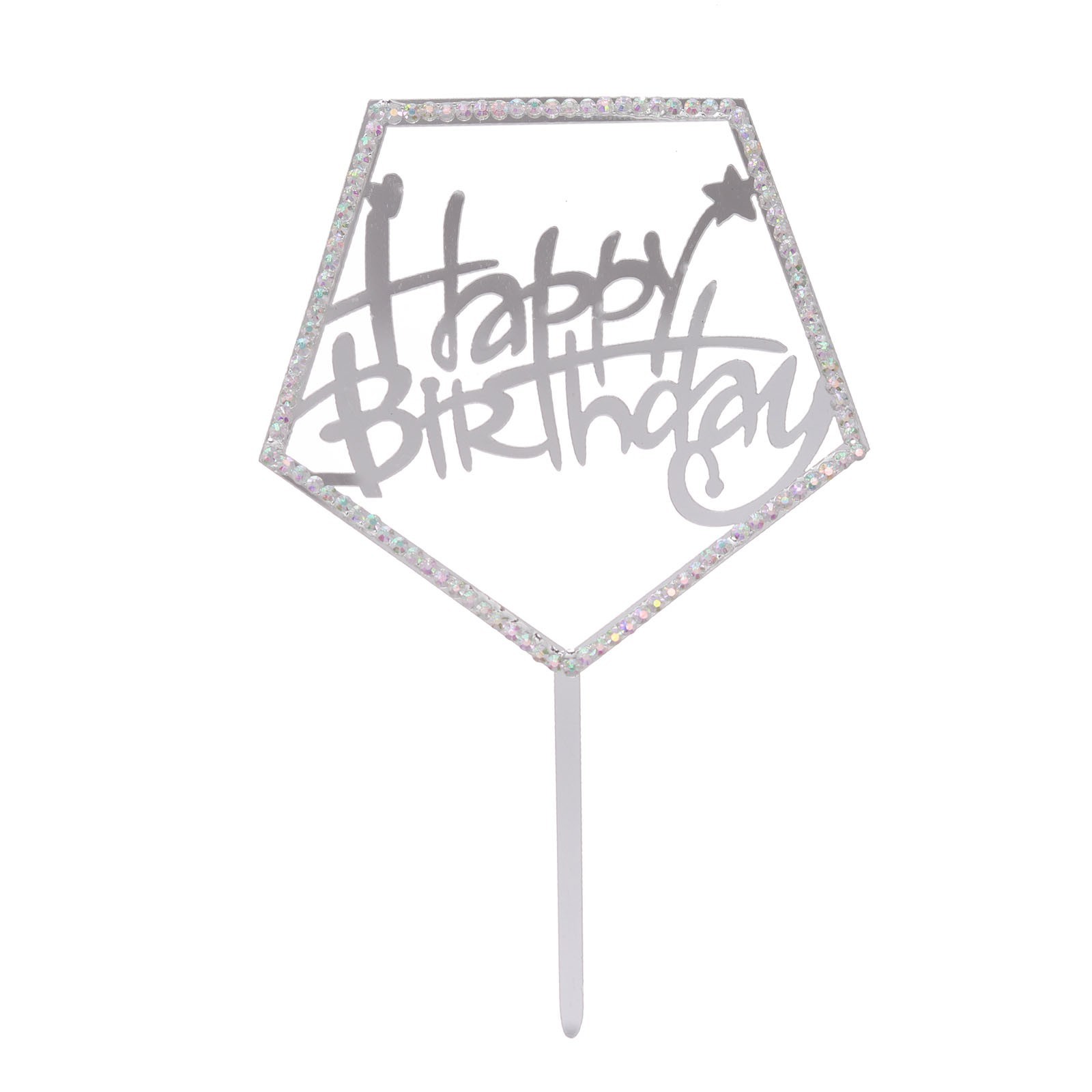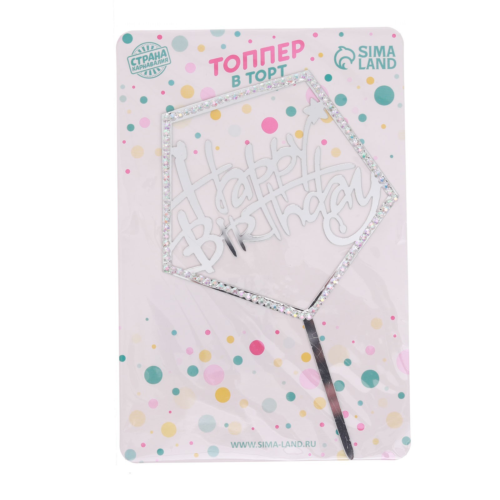 Топпер «с днём рождения», со стразами, цвет серебряный