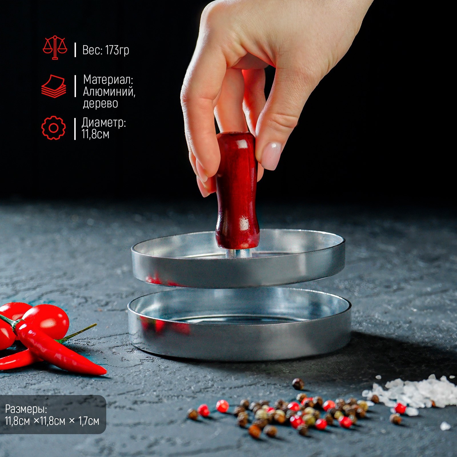 Пресс для бургера доляна «умелец», D=11,9 см, алюминий