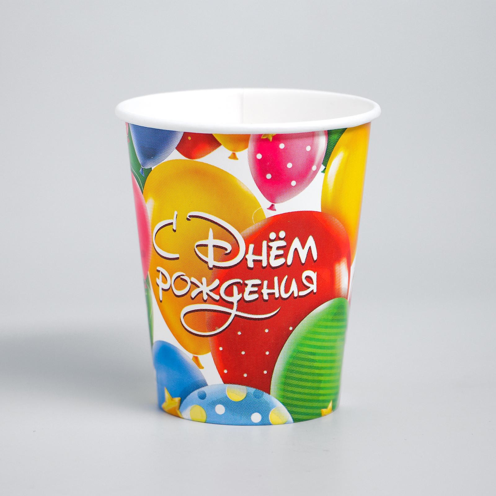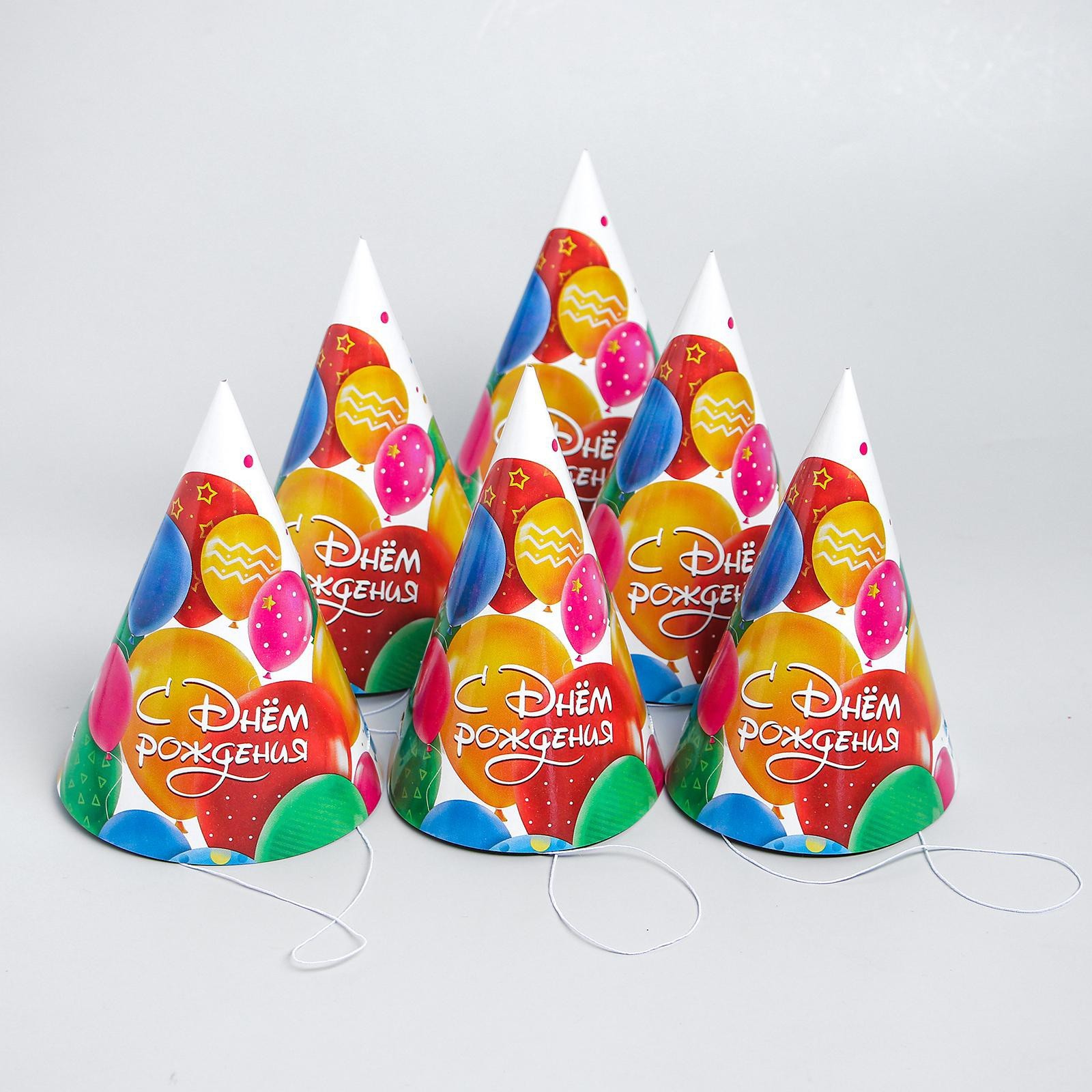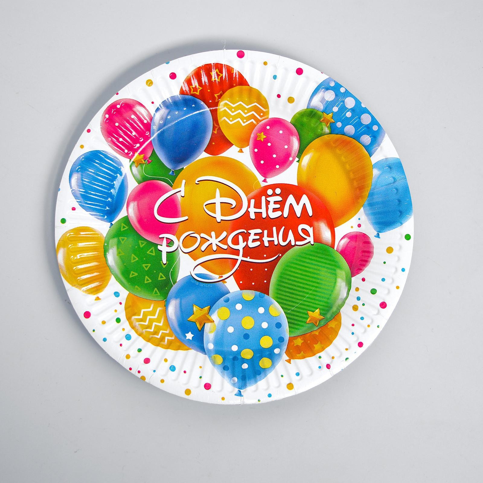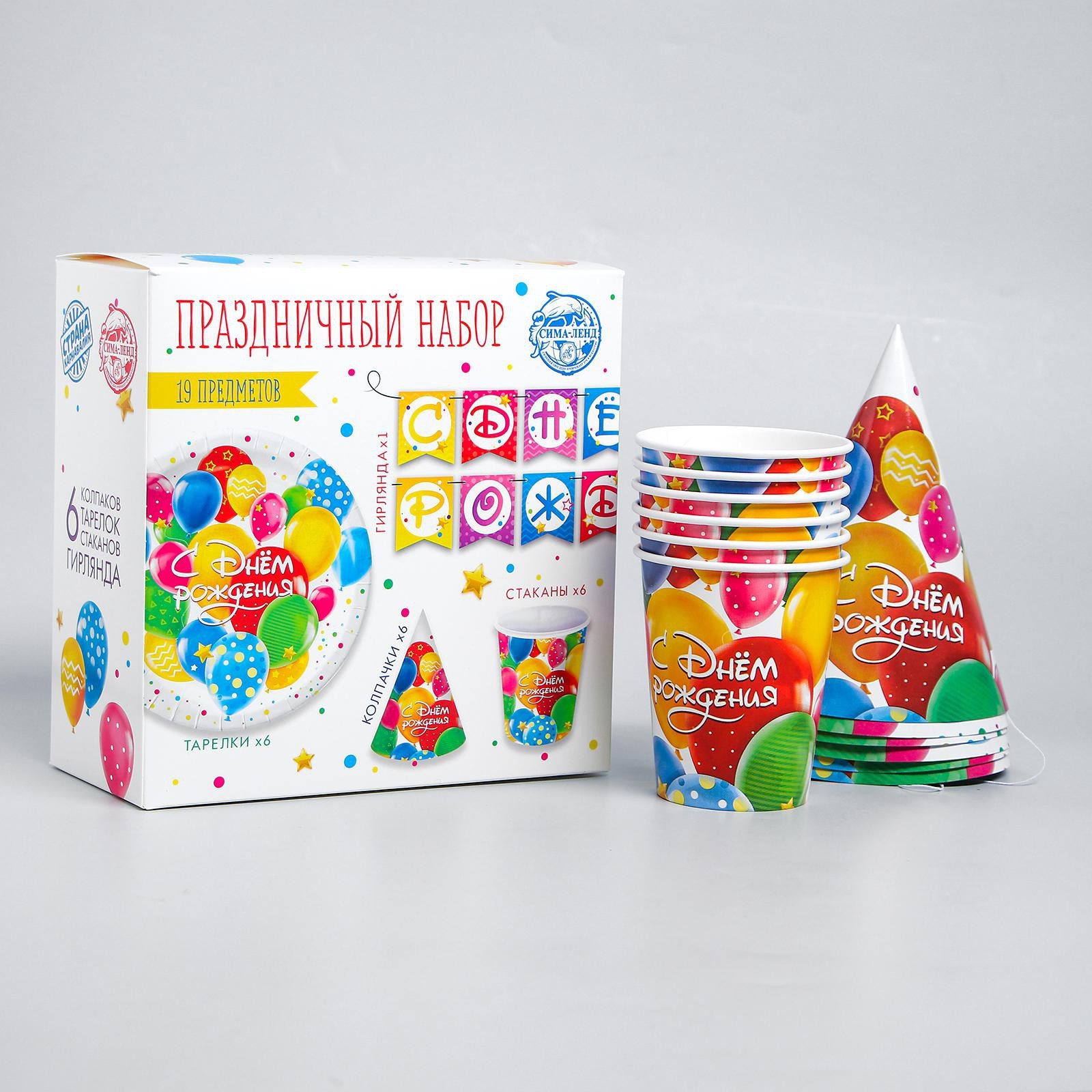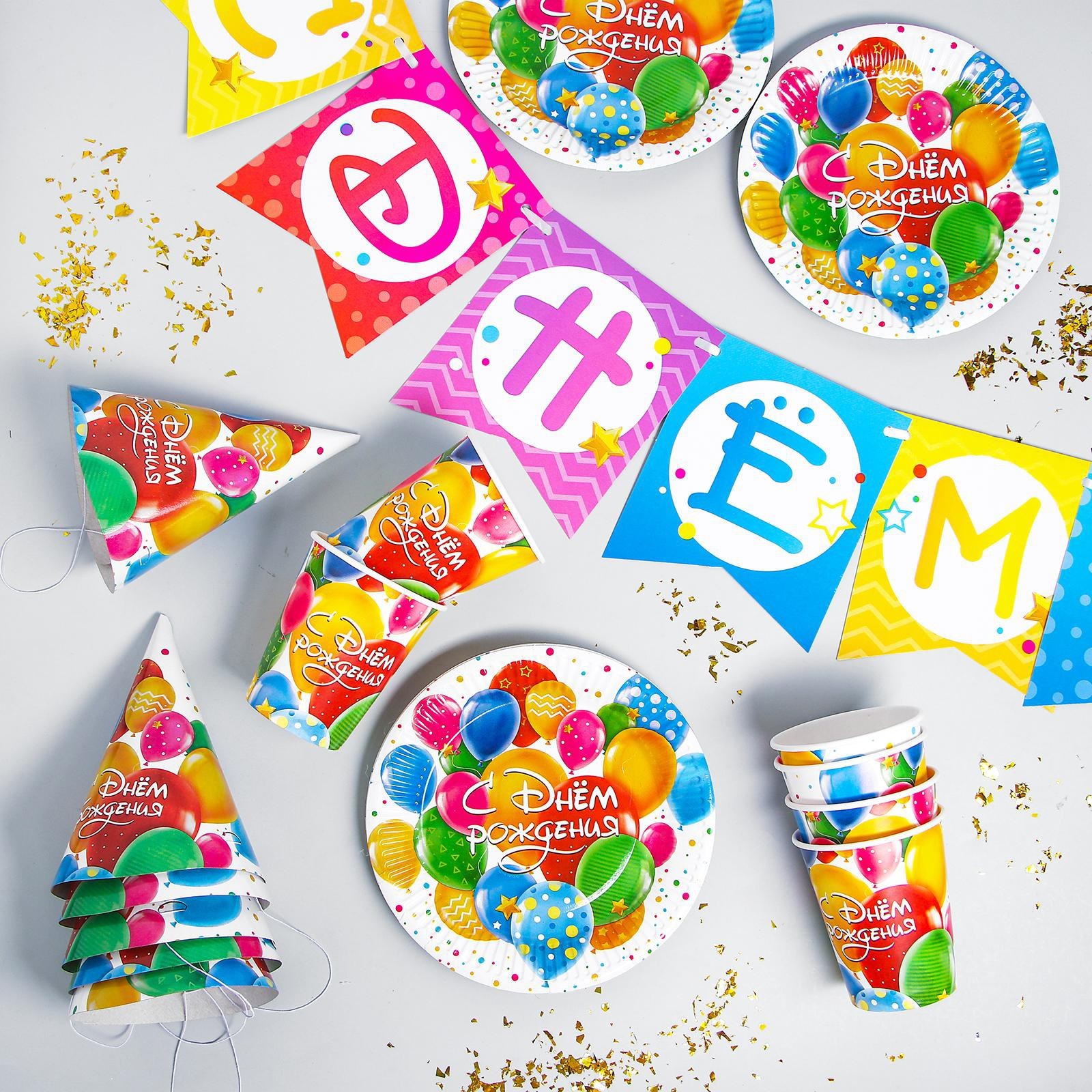 Набор бумажной посуды одноразовый с днём рождения», шары, 6 тарелок, 6 стаканов, 6 колпаков, 1 гирлянда