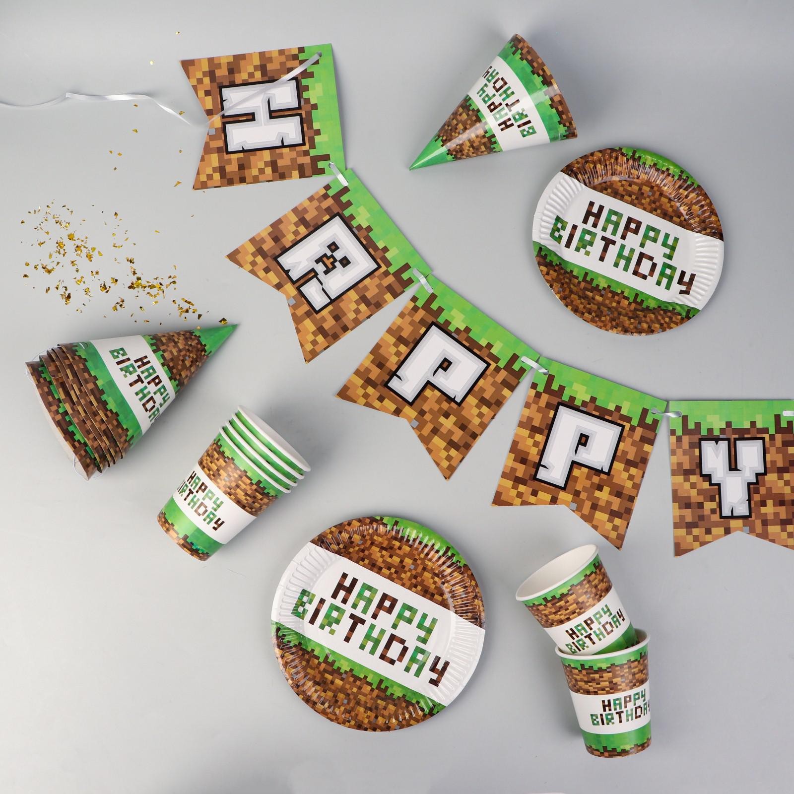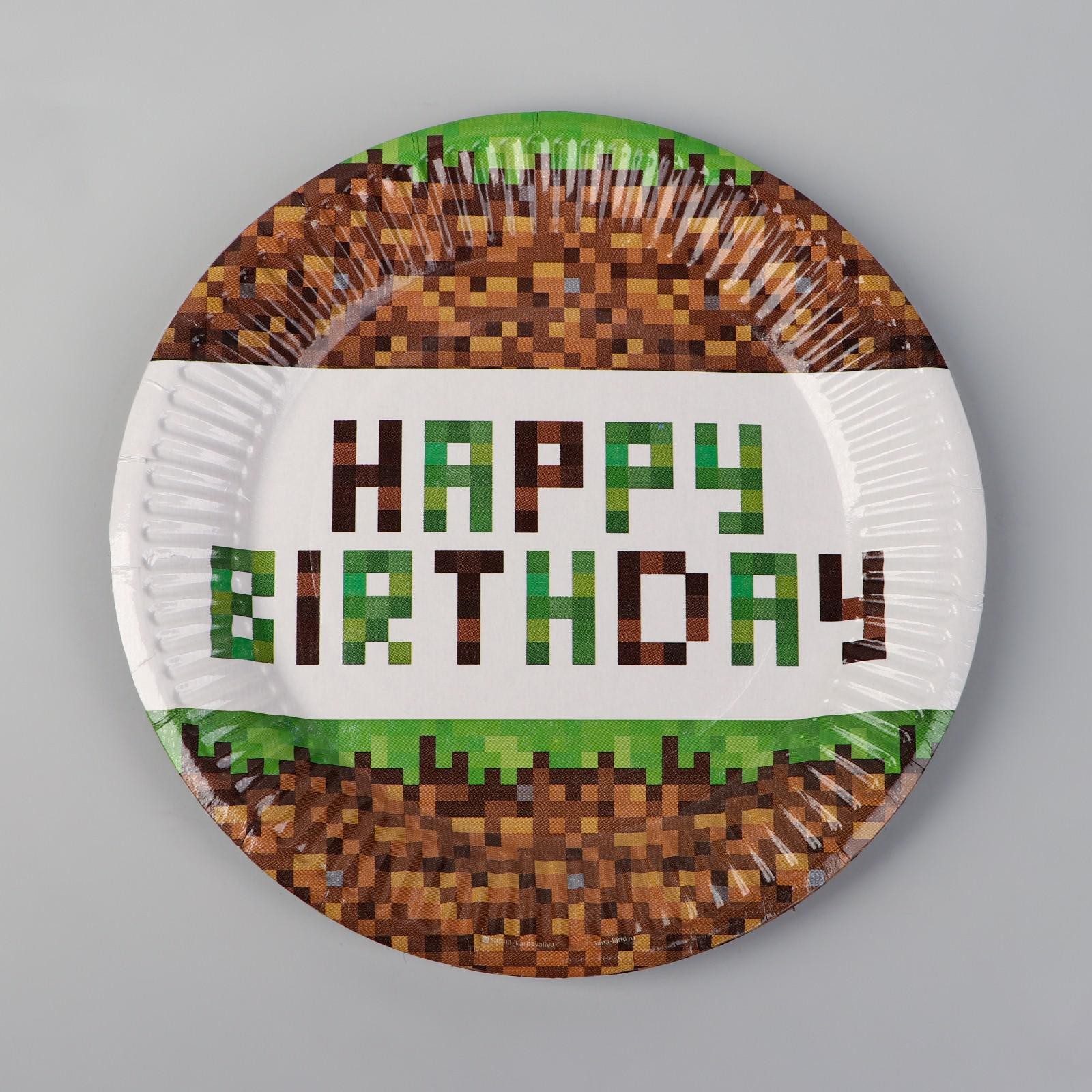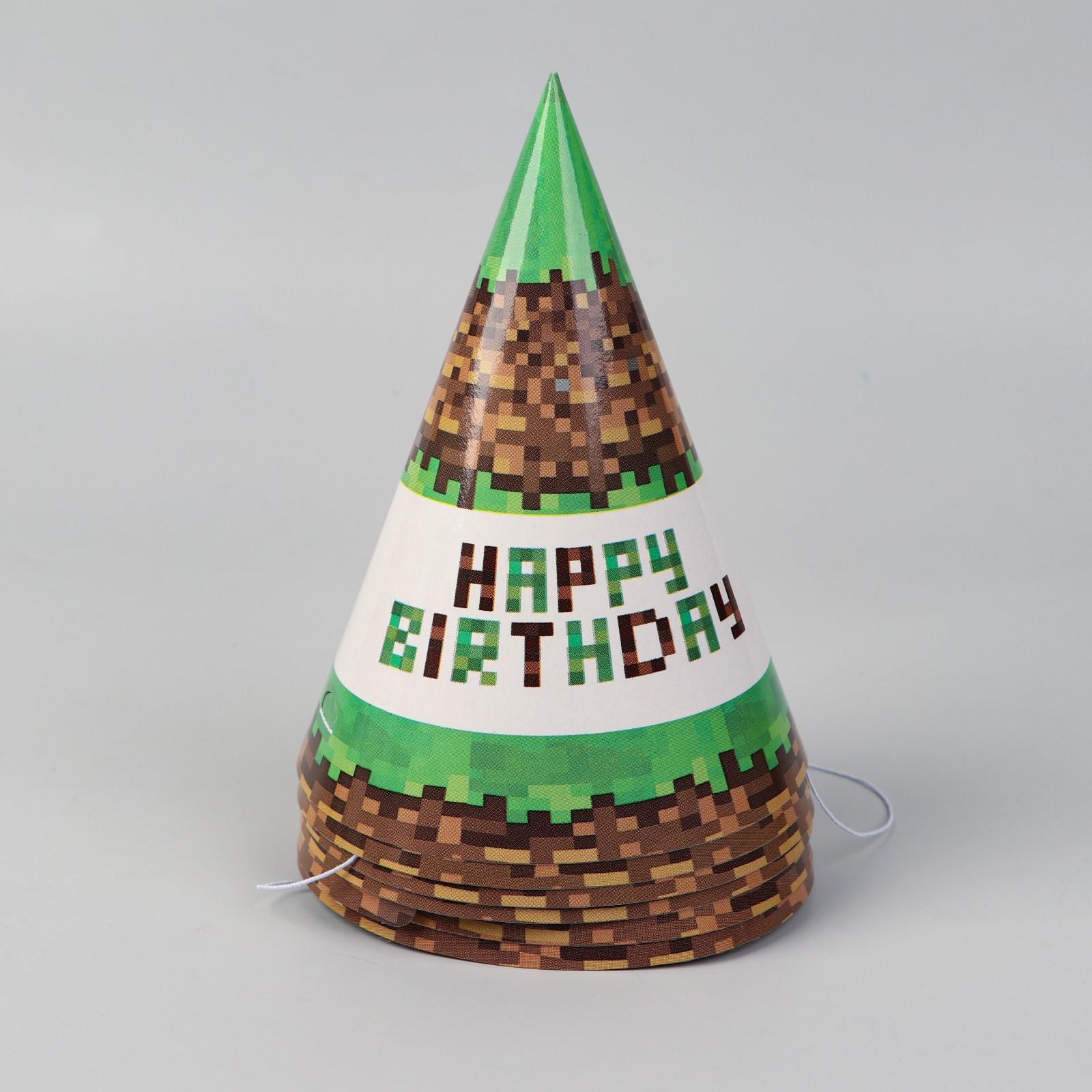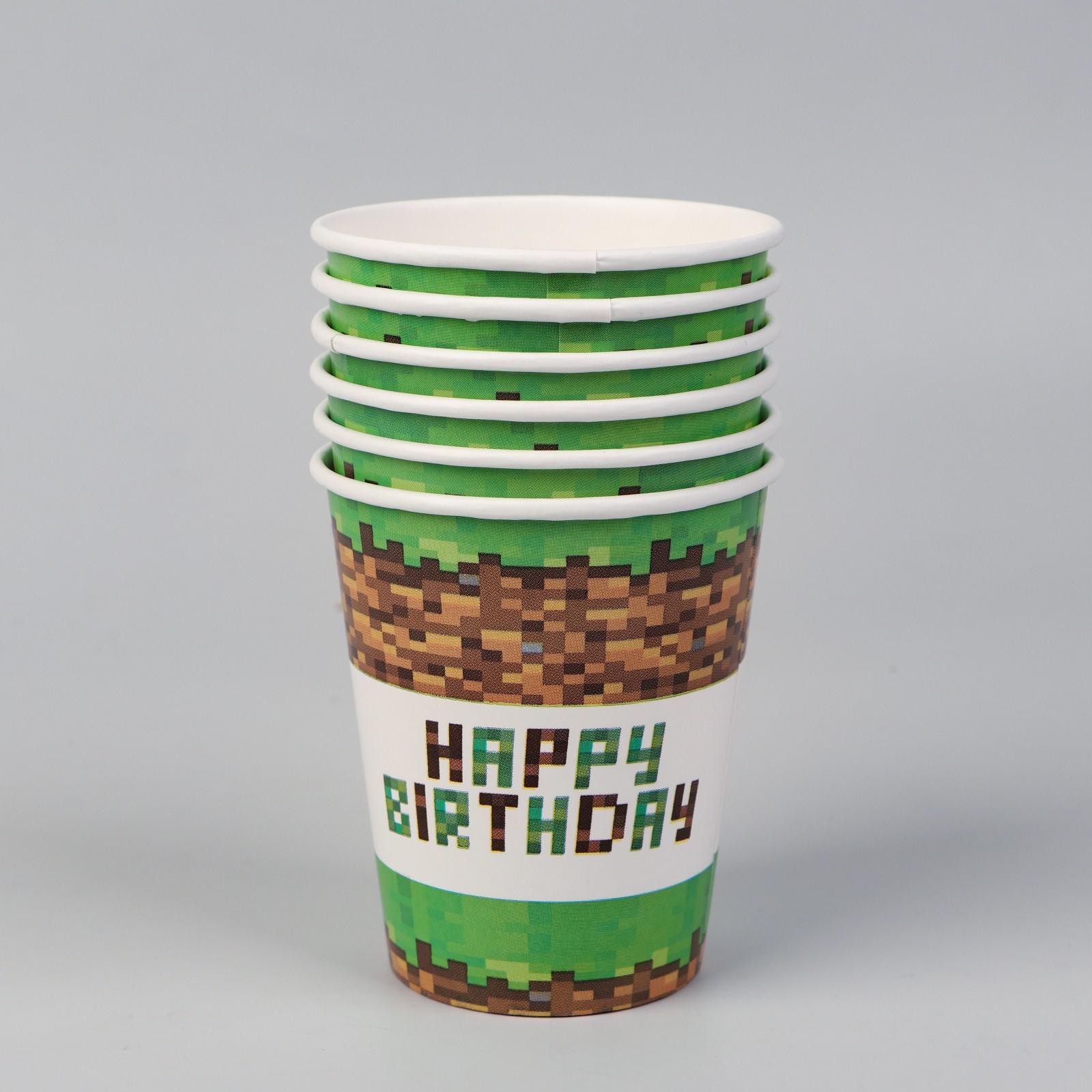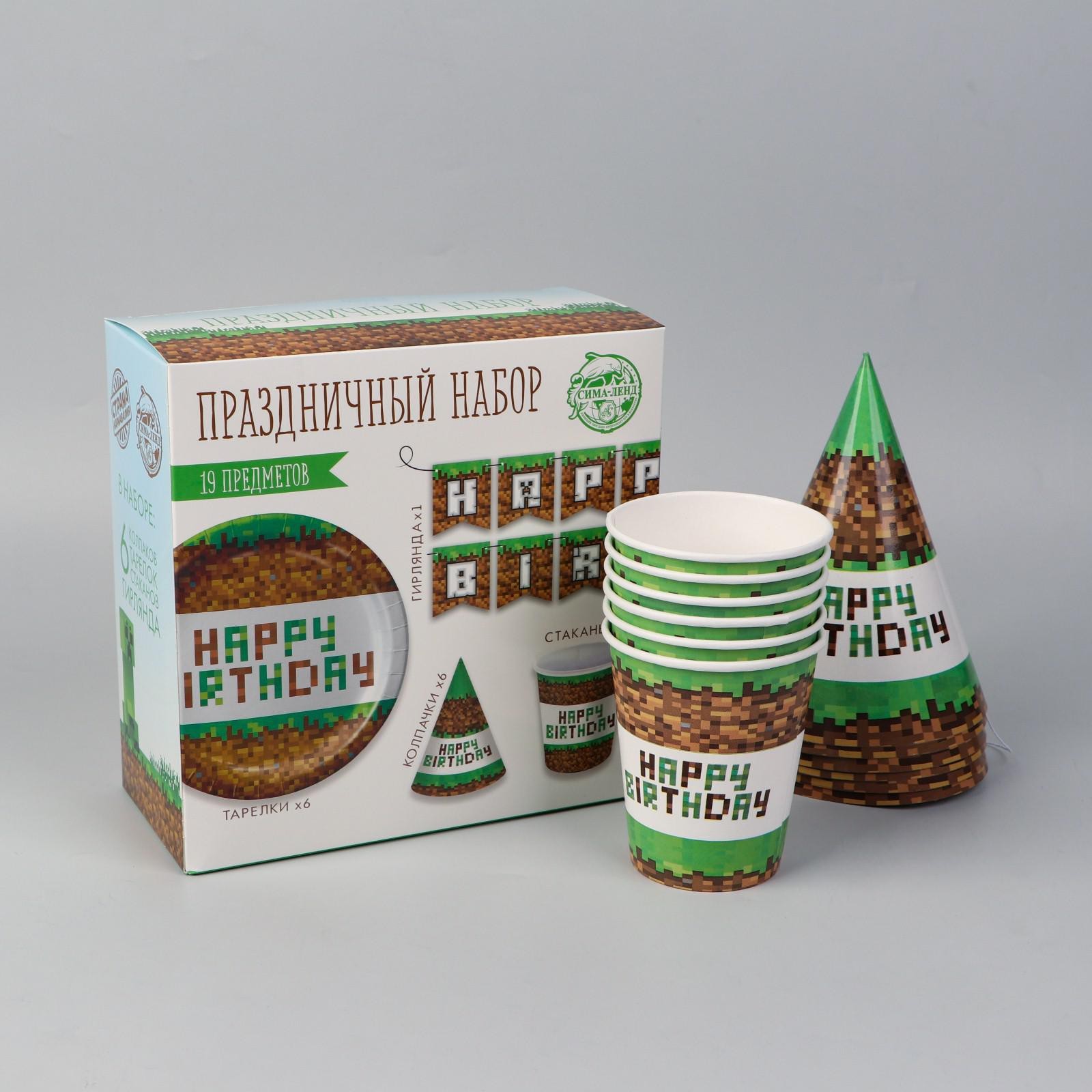 Набор бумажной посуды одноразовый с днём рождения», 6 тарелок, 6 стаканов, 6 колпаков, 1 гирлянда