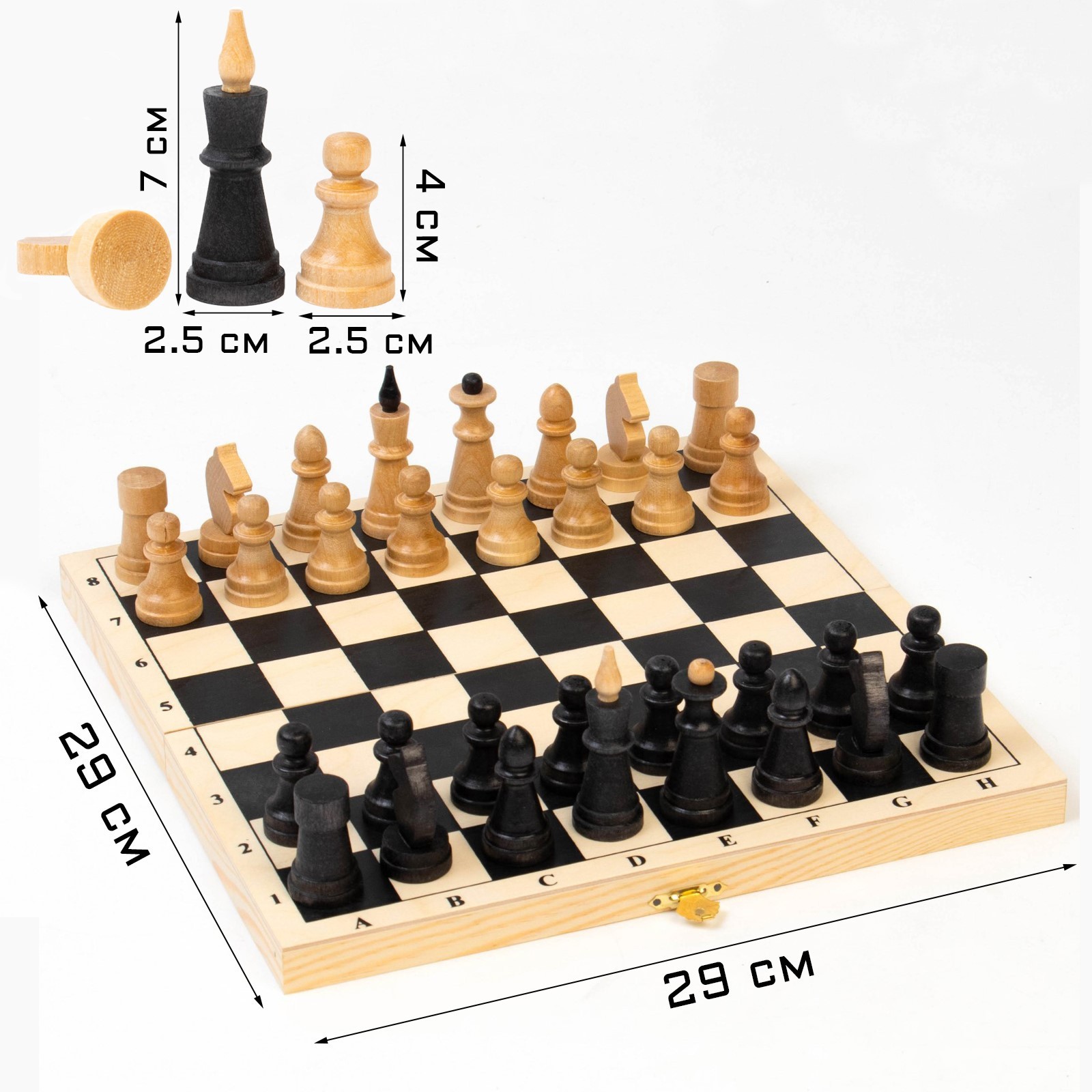 Шахматы деревянные, настольные, король h-7 см, пешка h-4 см, доска 29 х 29 х 4 см.   Шахматы - классическая настольная игра, которая способствует развитию фантазии и концентрации внимания, воспитанию характера и воли, терпения, а также приучает мыслить логически. Играть в шахматы можно где угодно: в школе, в компании, с друзьями, колегами, родителями, детьми.  Размер доски: 29 х 29 х 4 см.  Настольная игра для взрослых и детей развивает логическое мышление, тактику и стратегию. Шахматы подходят в качестве подарка на любой праздник, такой как день рождения, новый год, 8 марта и 23 февраля, и подходят для всех - мужчин, женщин, детей и взрослых.  Размер, см: 29 х 29 Возраст: От 5 лет Материал: Дерево Вид: Шахматы (доска + фигуры) Особенности: Без особенностей Составляющие: Шахматы Температурное ограничение: Нет Материал шашек, шахмат: Дерево Материал игральной доски: Дерево  развернуть описание ▼