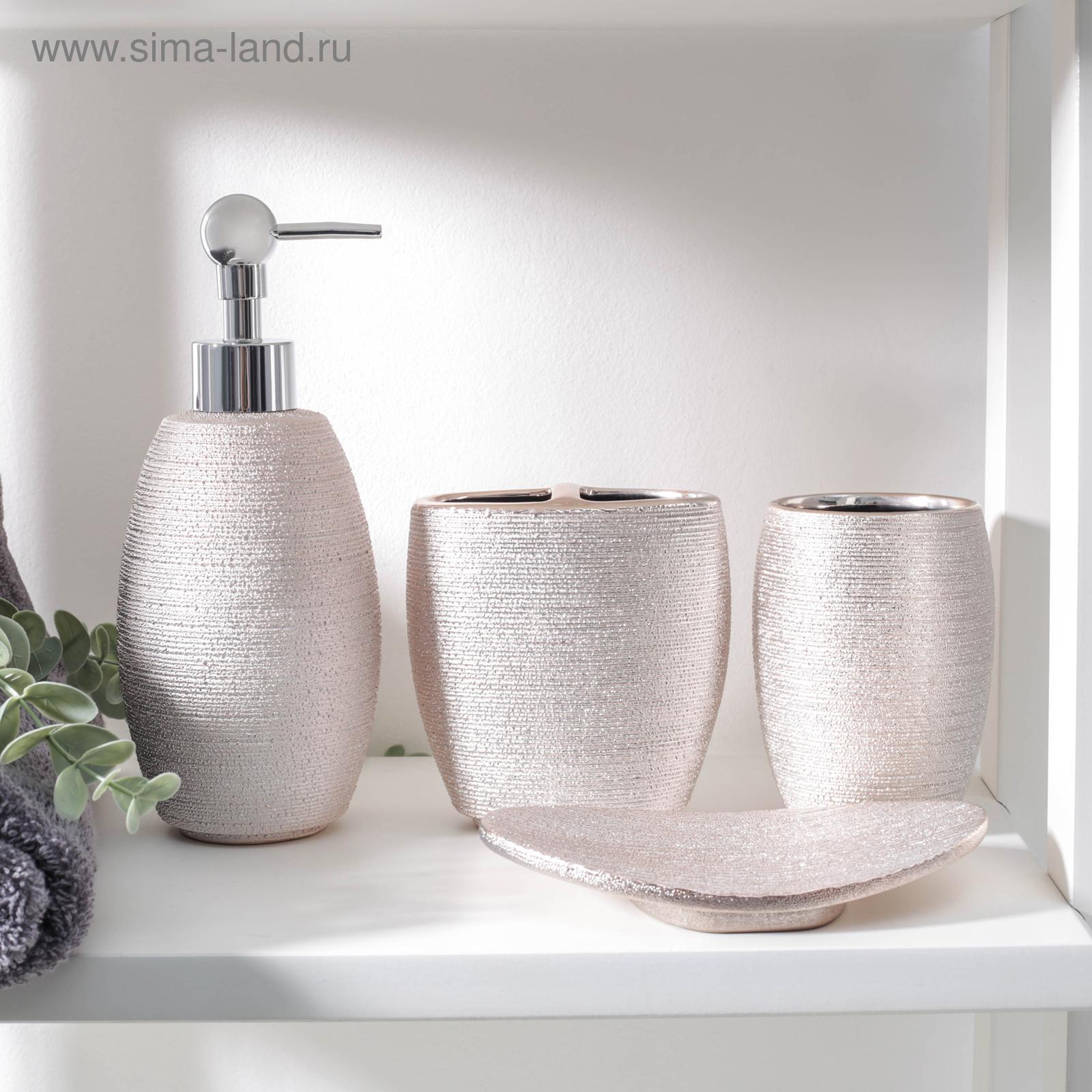 Набор аксессуаров для ванной комнаты «камилла», 4 предмета (мыльница, дозатор для мыла 480 мл, 2 стакана), цвет розовый