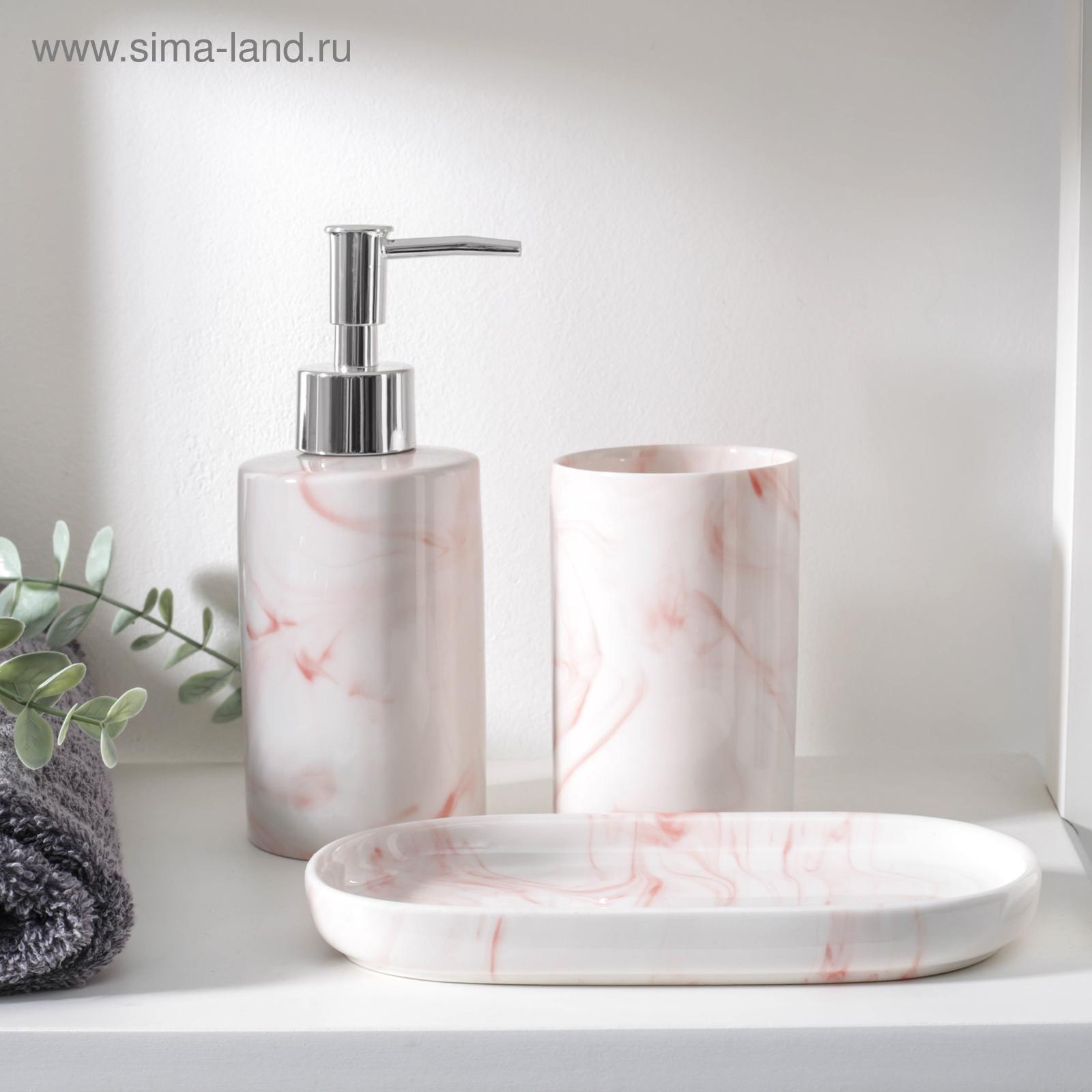 Набор аксессуаров для ванной комнаты «сила», 3 предмета (мыльница, дозатор для мыла 350 мл, стакан), цвет персиковый