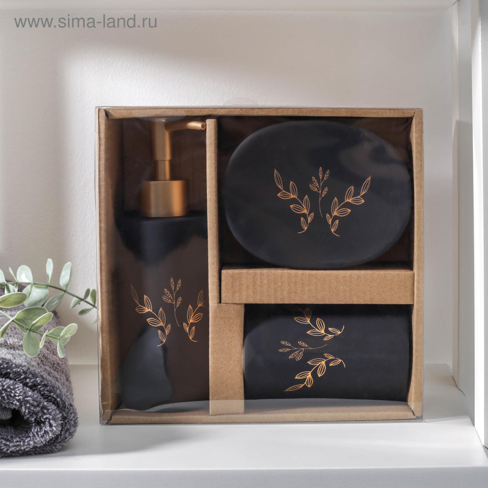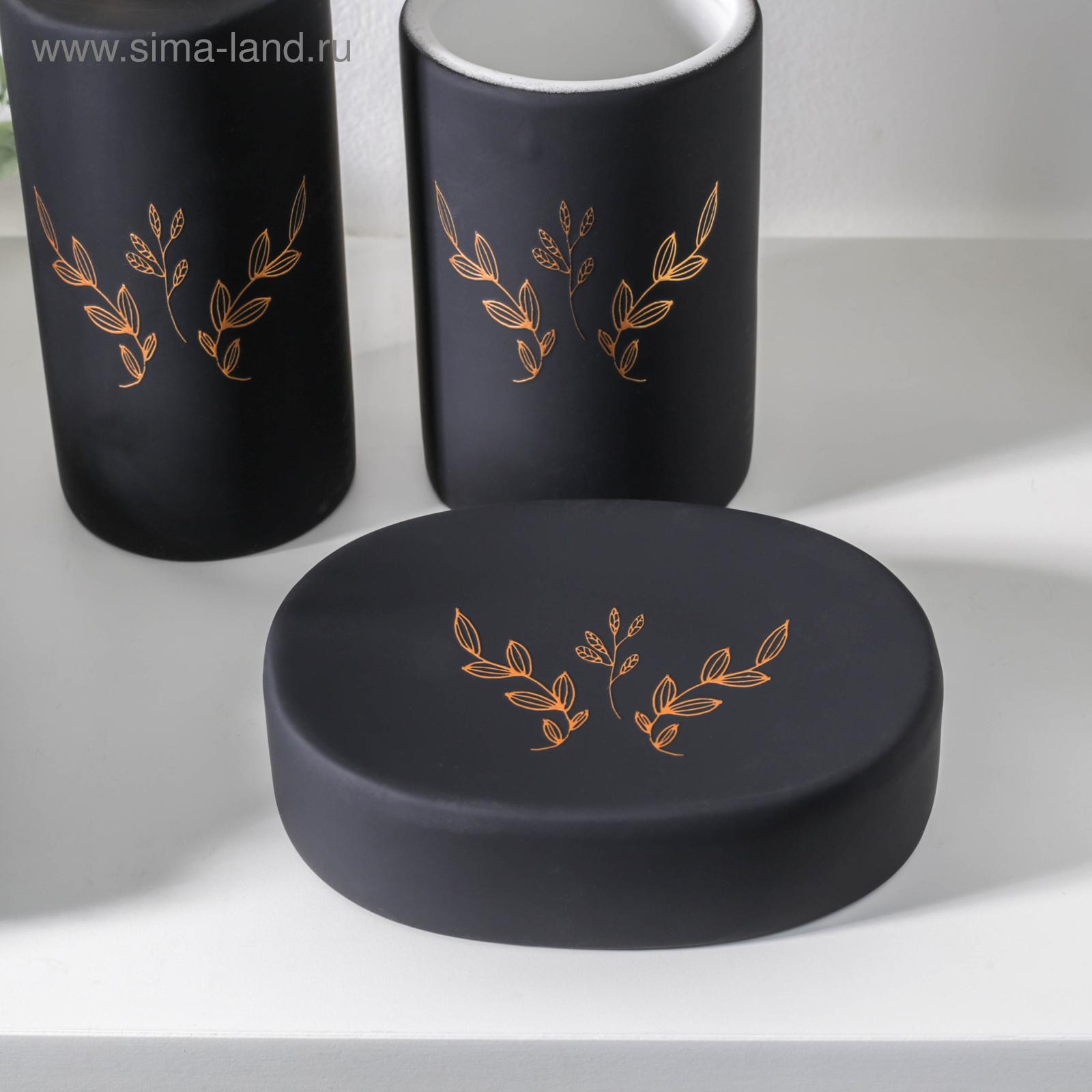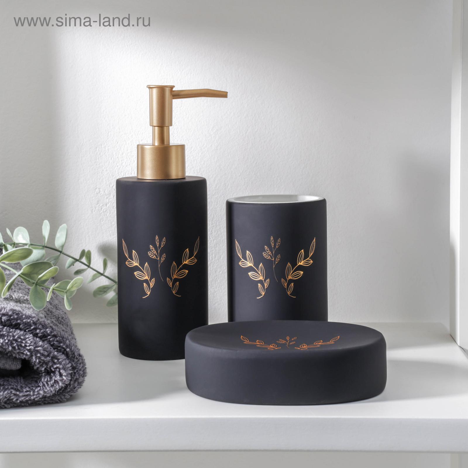 Набор аксессуаров для ванной комнаты «венец», 3 предмета (мыльница, дозатор для мыла 300 мл, стакан), цвет чёрный