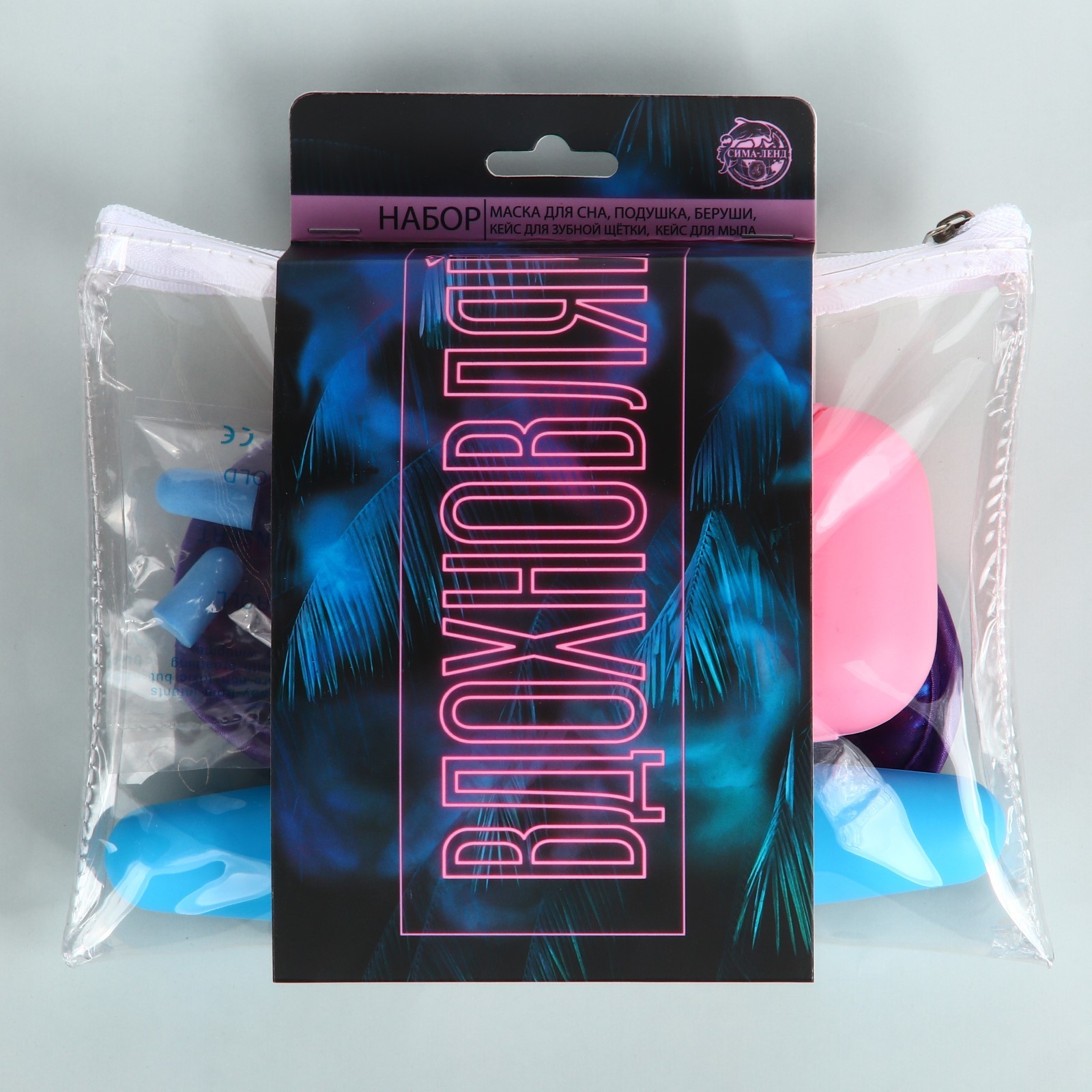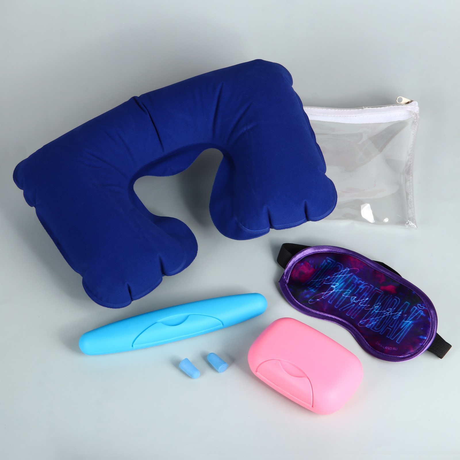 Дорожный набор "вдохновляй", подушка, беруши, маска, кейс для мыла и щетки
