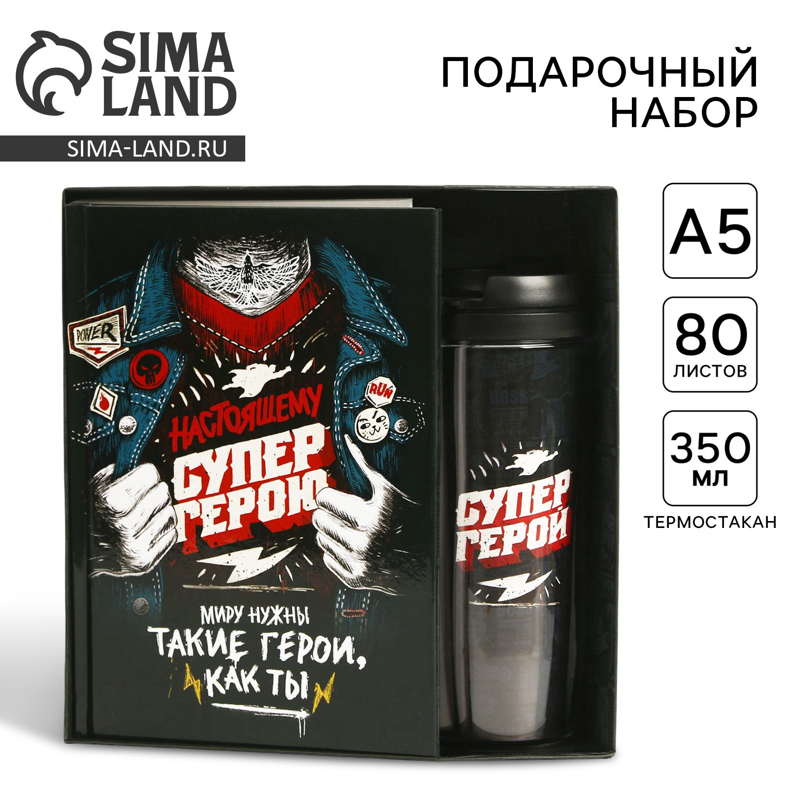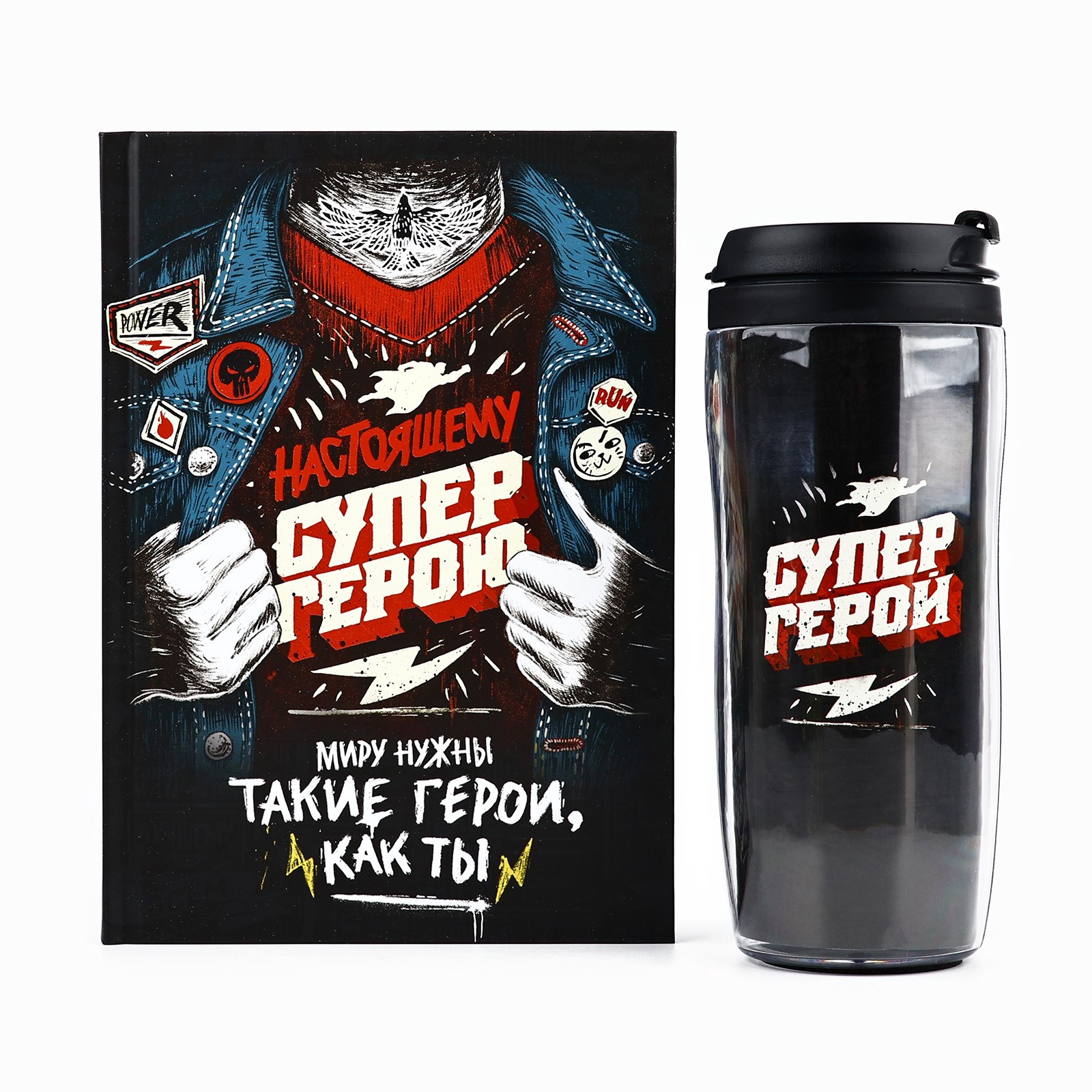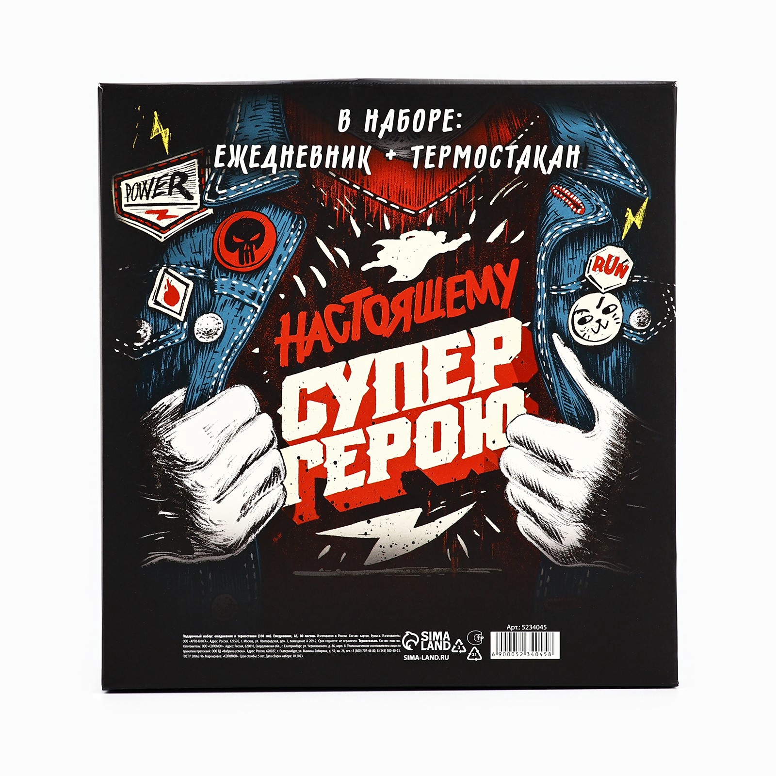 Подарочный набор, ежедневник в твердой обложке а5, 80 л., термостакан 350 мл «супер герою»