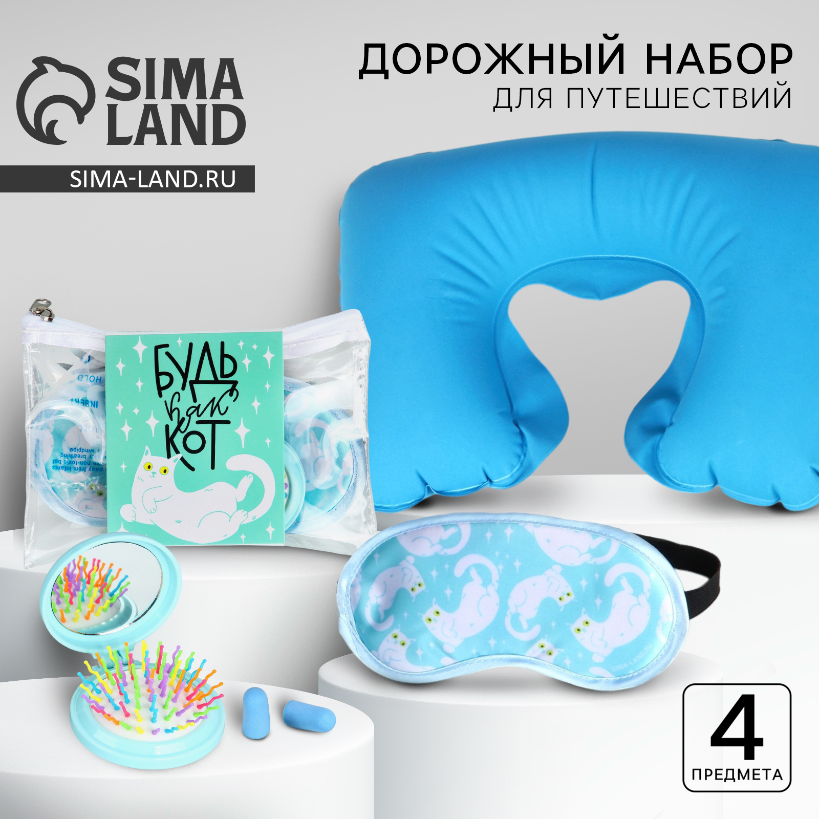 Дорожный набор "будь как кот", подушка, маска, беруши, зеркальце-расческа
