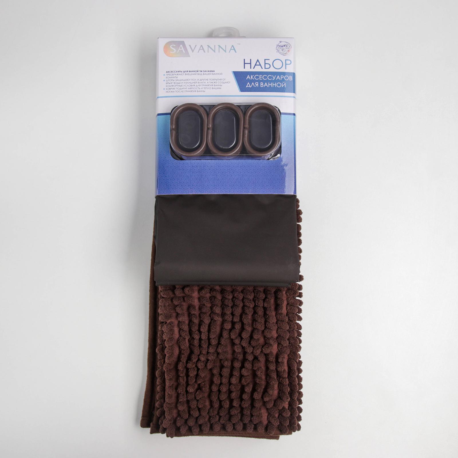 Набор для ванной «комфорт»: штора 180x180 см, ковёр 40x60 см, цвет коричневый