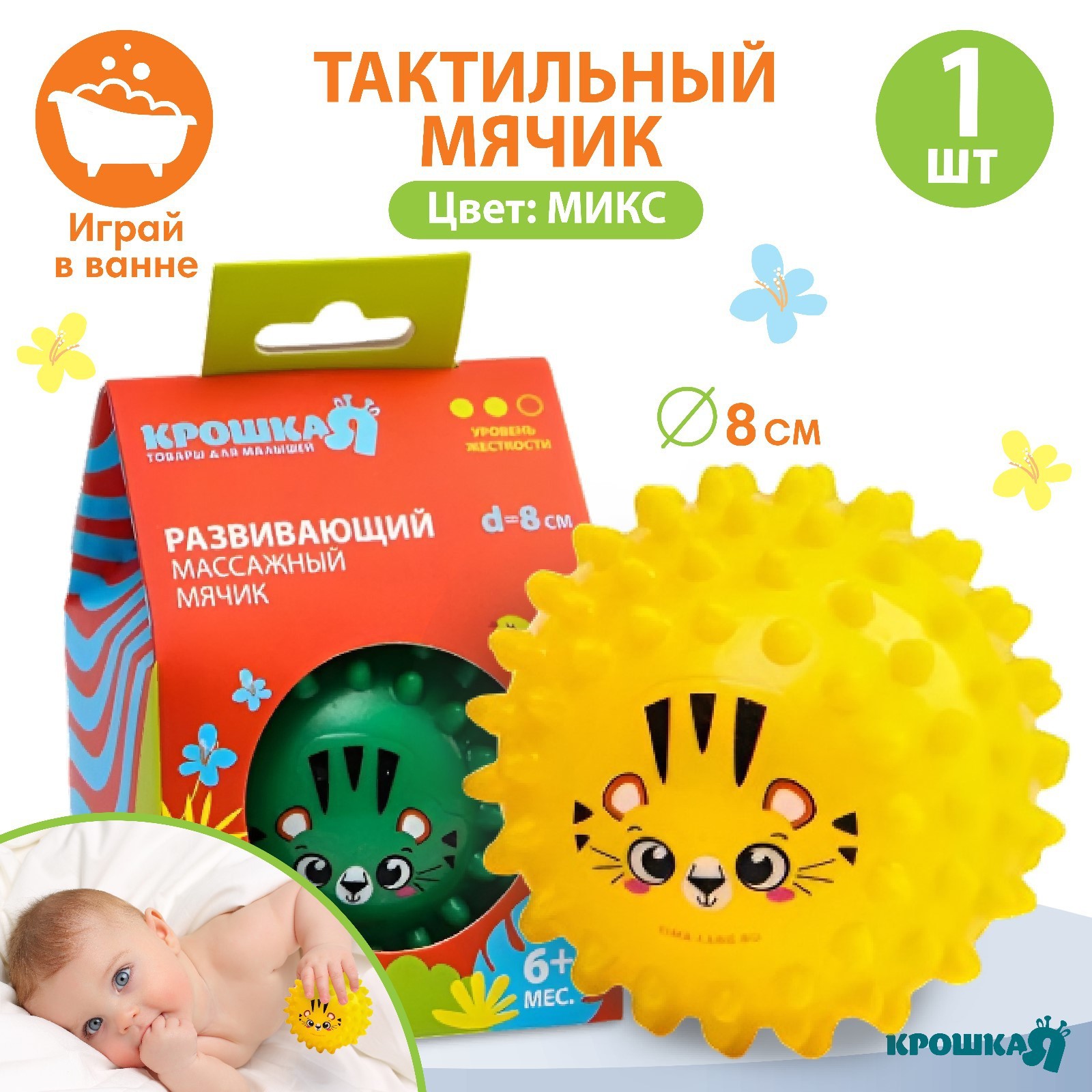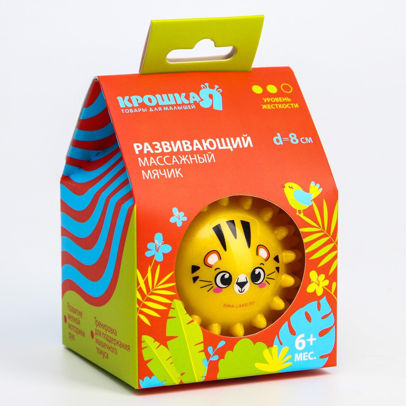 Развивающий тактильный мячик «зверята», диаметр 8 см, цвет микс, крошка я