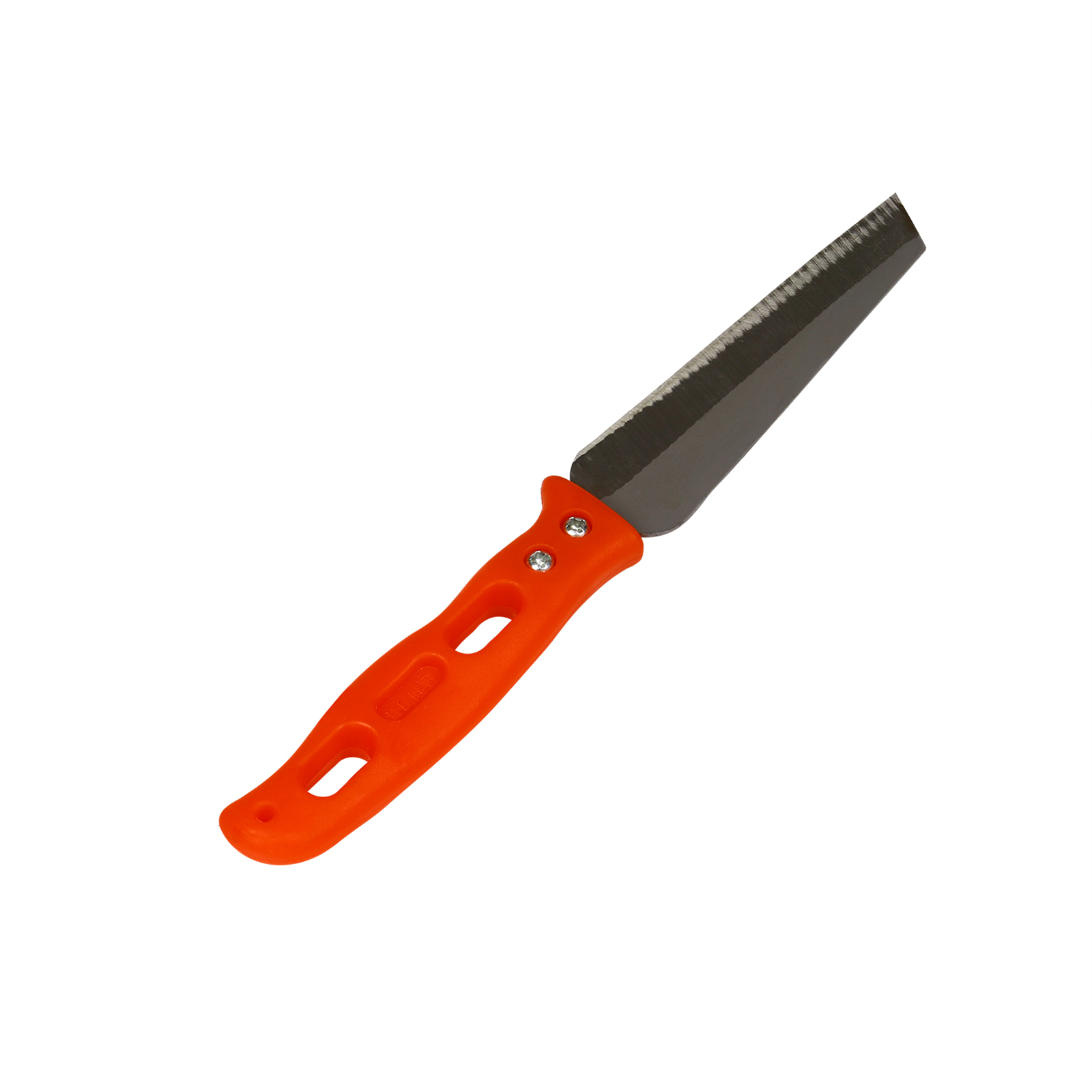 Нож садовый, 23 см, с пластиковой ручкой. Этот компактный садовый нож создан для работы с деревом и позволяет легко справляться с обрезкой мелких веток, срезкой цветов, а также проведением прививок. Прививка — это перенесение части одного растения на другое. Они срастаются, и получается новый цельный организм. Такая процедура поможет получить понравившийся сорт на своём участке. Обычный кухонный нож не подойдёт для такой тонкой работы: его лезвие недостаточно острое. Малейший изгиб испортит качество среза. Тут нужен специальный инструмент, такой как садовый нож. Особая форма лезвия и специальная заточка сделают ровный срез. Ключевые особенности и преимущества Удобная пластиковая ручка надежно фиксируется в руке, снижая усталость при длительной работе.Острое металлическое лезвие обеспечивает точные и аккуратные разрезы.Идеален для проведения прививок садовых деревьев.Яркие цвета не позволят инструменту затеряться в траве.Таким инструментом вы сможете: обрезать живые или повреждённые участки древесины;удалить ненужные молодые побеги;срезать тонкие ветки декоративных кустов и деревьев, ботву;зачистить раны, которые остались после отпиливания толстых сучьев;вырезать шип;подготовить черенок к прививанию;срезать цветы или овощи.Использование и уход По завершении работы протрите лезвия мягкой сухой тканью и смажьте специальным маслом. Это поможет продлить срок службы изделия. Следите за остротой лезвий и своевременно их затачивайте. Острые хорошо наточенные лезвия дают чистый ровный срез. Это очень сильно влияет на эффективность и продолжительность работы. Тупые лезвия могут травмировать ветки, которые потом будут долго заживать. Важно Храните инструмент в местах недоступных для детей, чтобы они случайно не поранились сами и не поранили других. Цвет:Красный|Цвет:Серый|Длина, см:23|Материал ручки:Пластик|Тип ножа:Садовый|Применение:Дерево|Материал лезвия:Металл|Страна:Китай  развернуть описание ▼