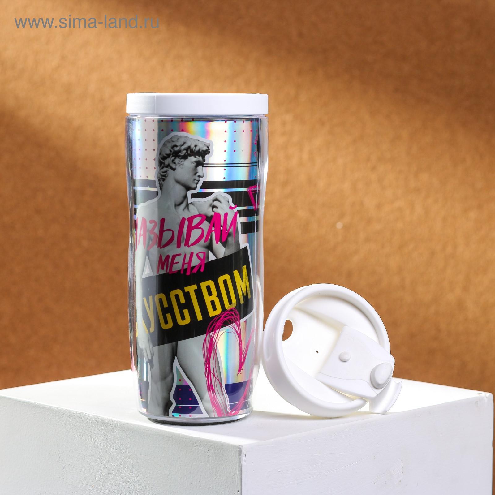 Термостакан с голографической вставкой "называй меня искусством", 350 мл, сохраняет тепло 2 ч