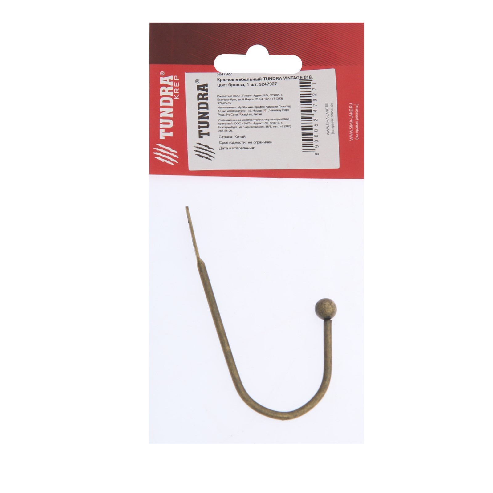 Крючок мебельный тундра Tko003, однорожковый, бронза