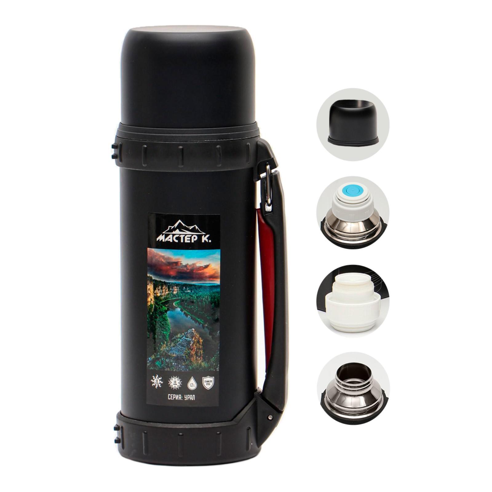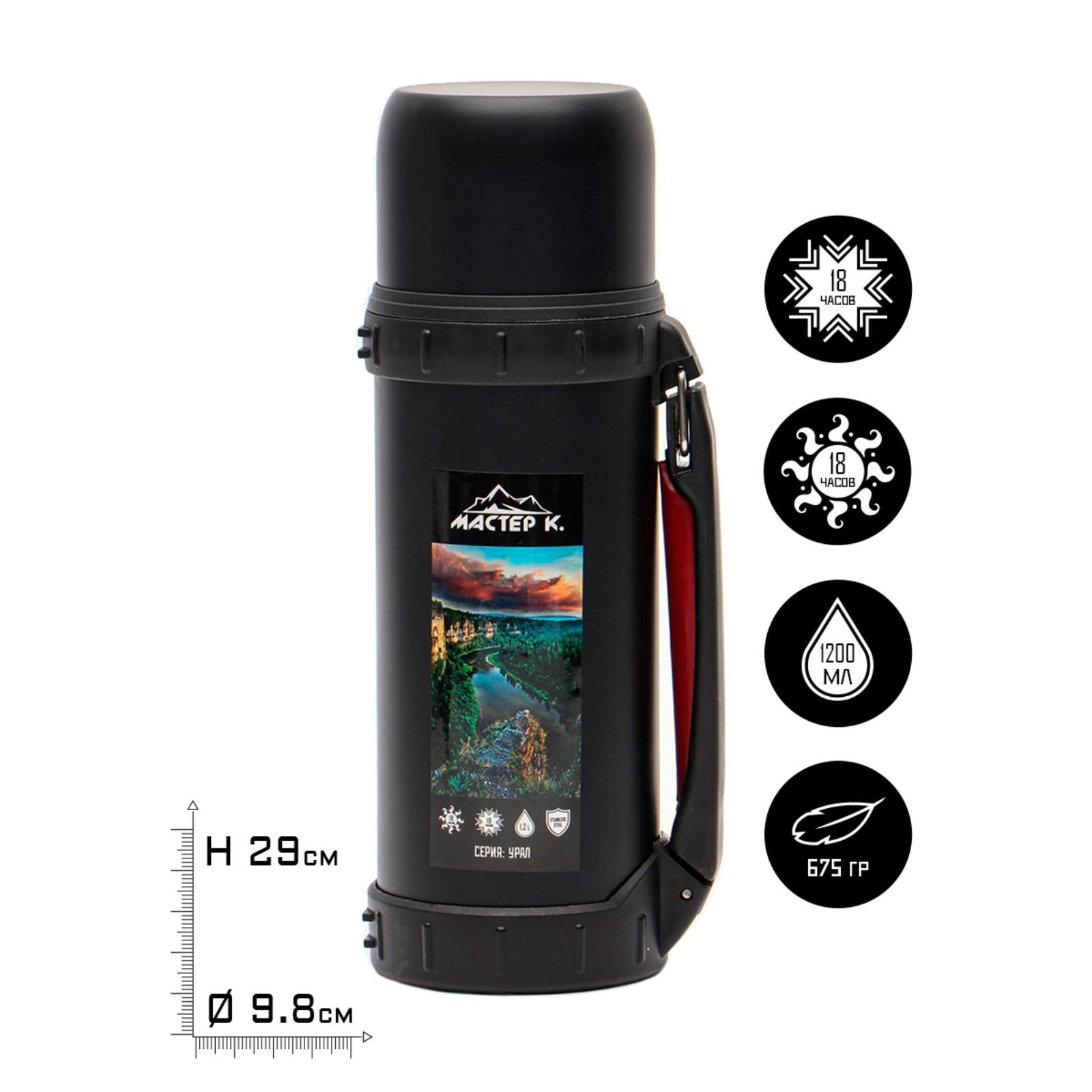 Термос, 1.2 л, движение, "мастер к. урал", с кружкой, сохраняет тепло 18 ч, 9.8 х 29 см, чёрный 5248