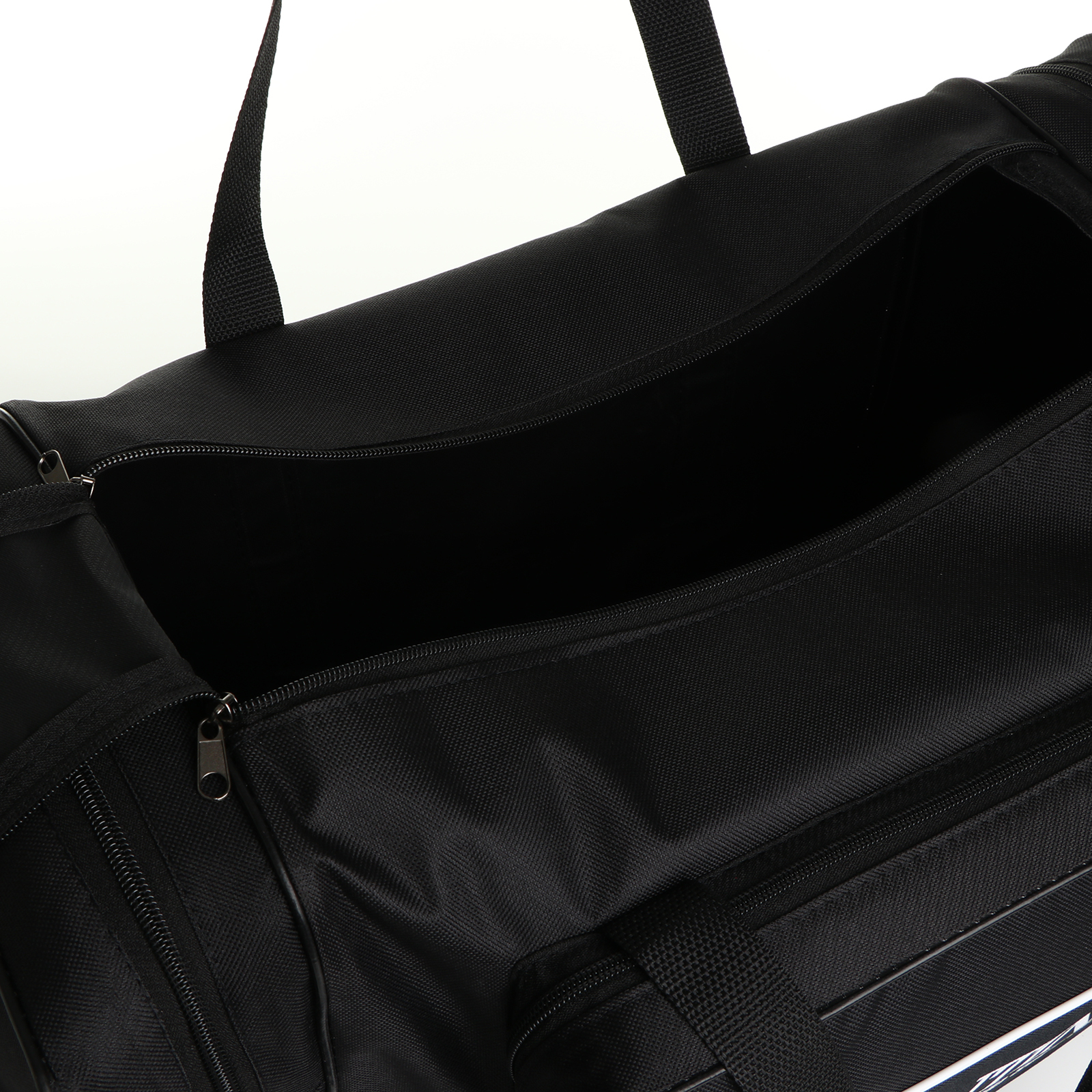 Сумка спортивная мужская на молнии, 3 наружных кармана, длинный ремень, большой размер, цвет чёрный